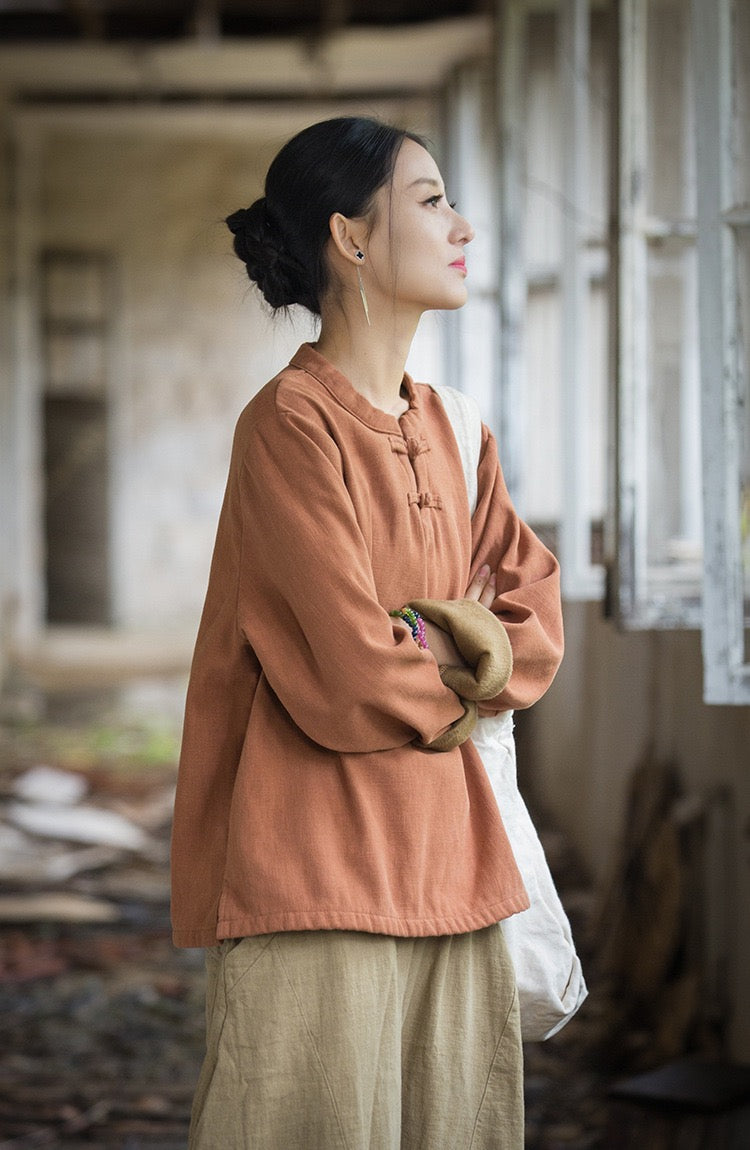 Tao One Tech™ • Red Floral Cardigan Jacket • Butterfly Wing Sleeves • 5 Buttons • Tech Pockets • Linen Cotton