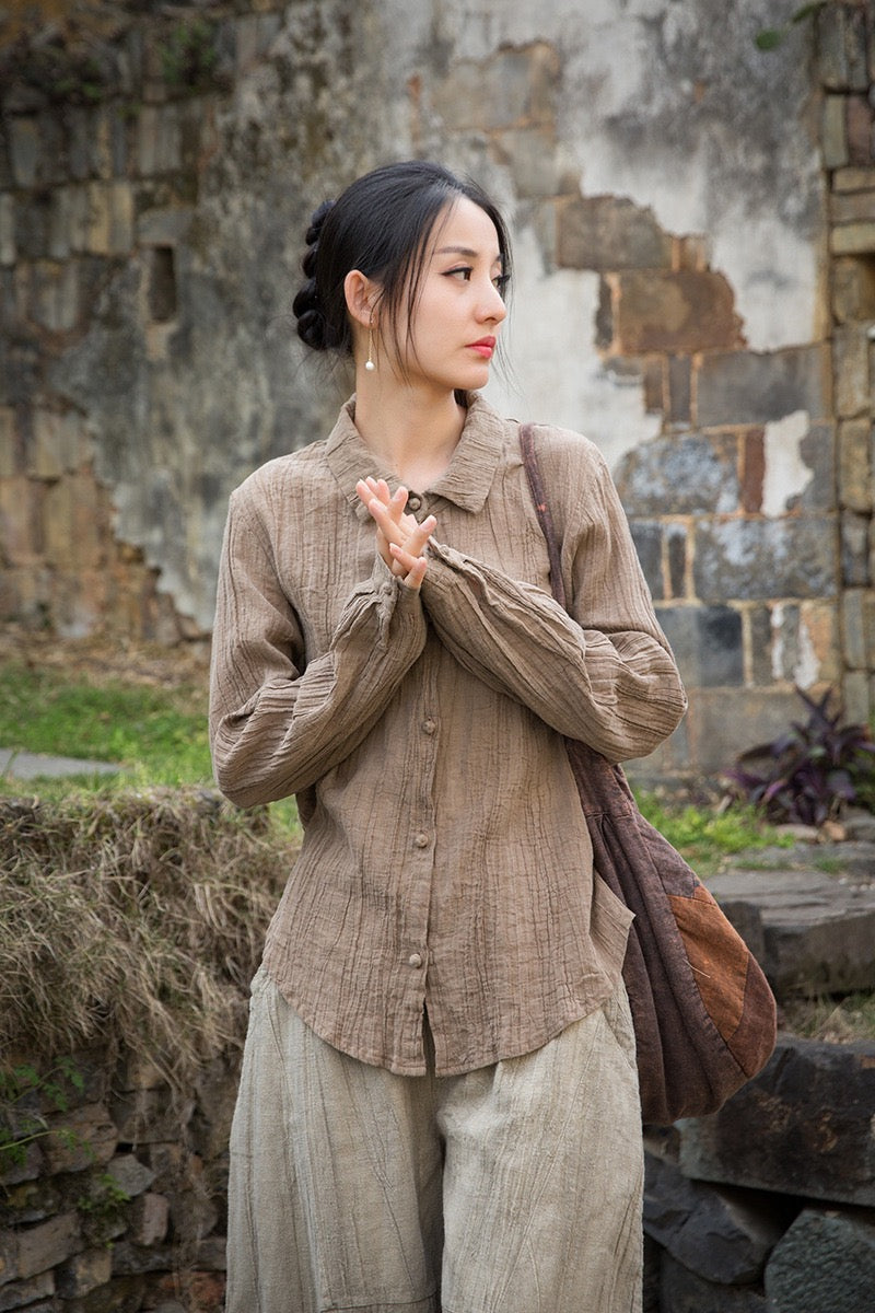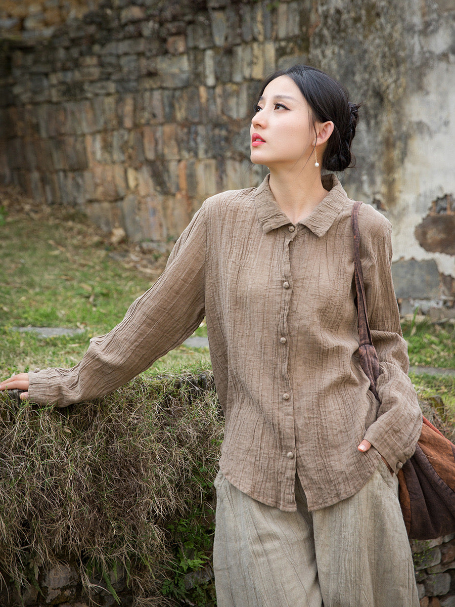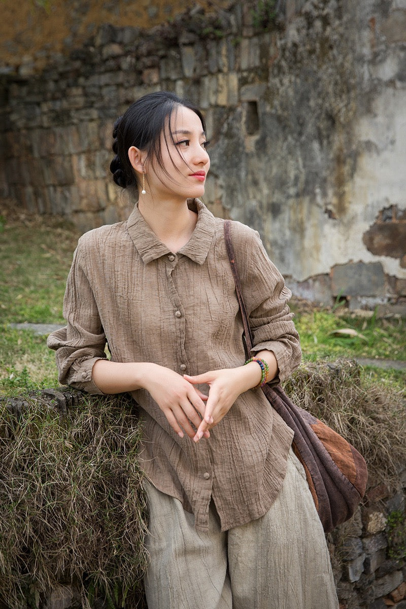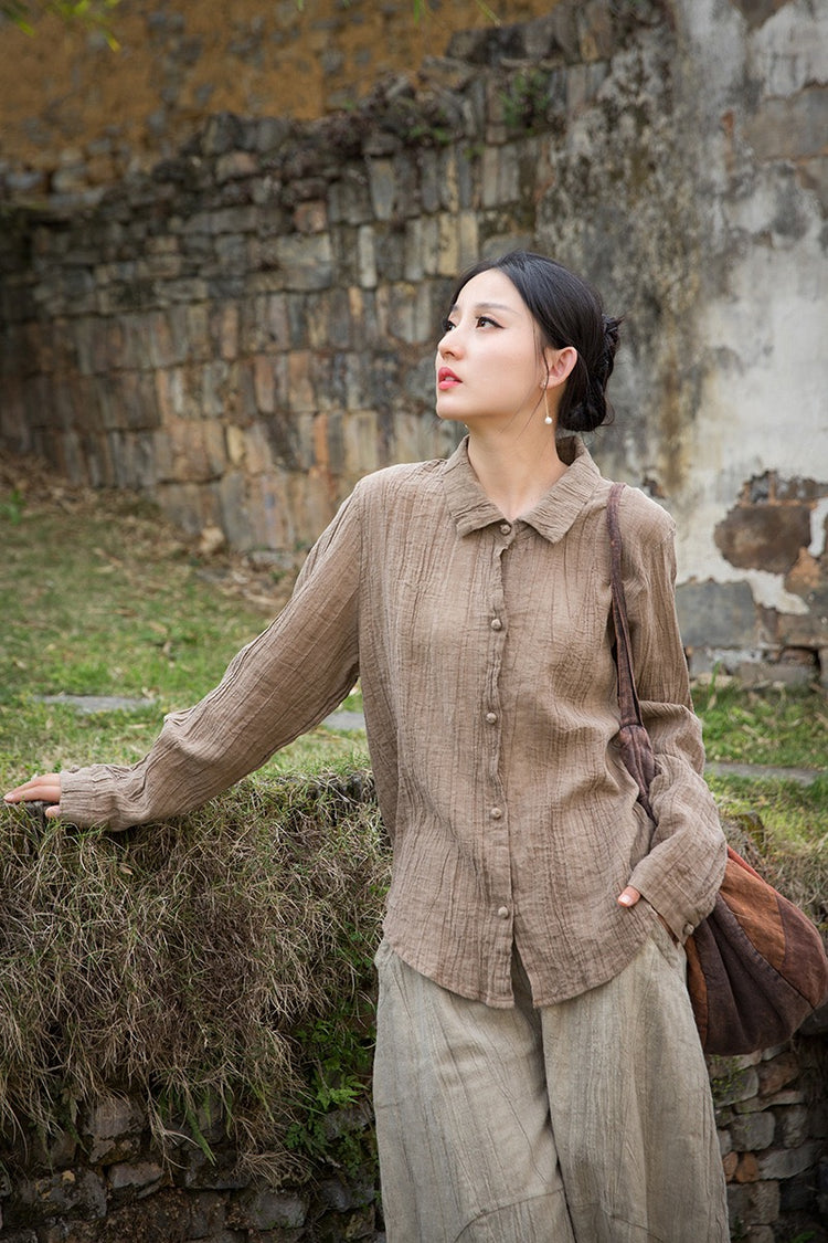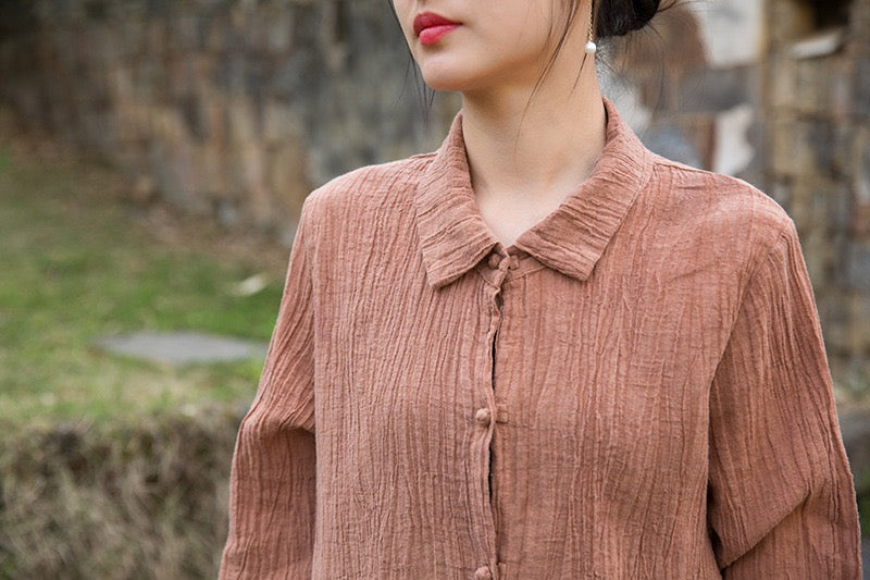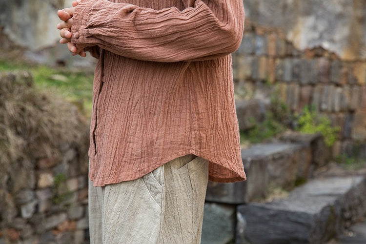 🍂 Tao One Tech™ • Zen Tea Cardigan Shirt • Tie Dye Folds • Linen Cotton ☁️☀️