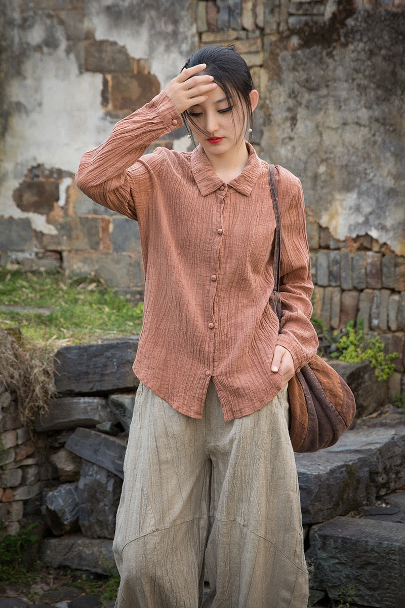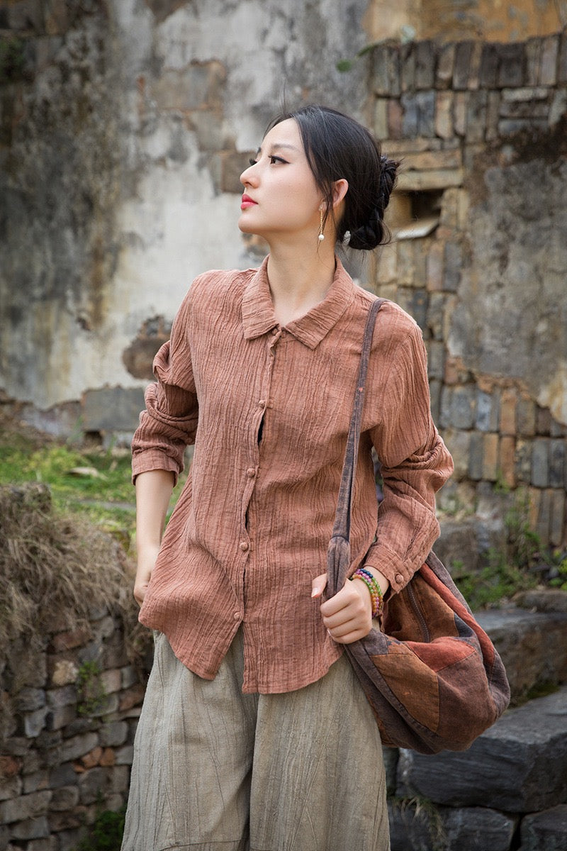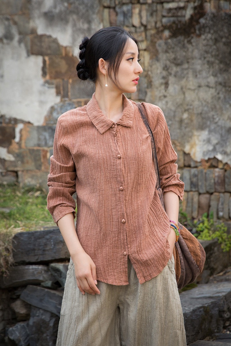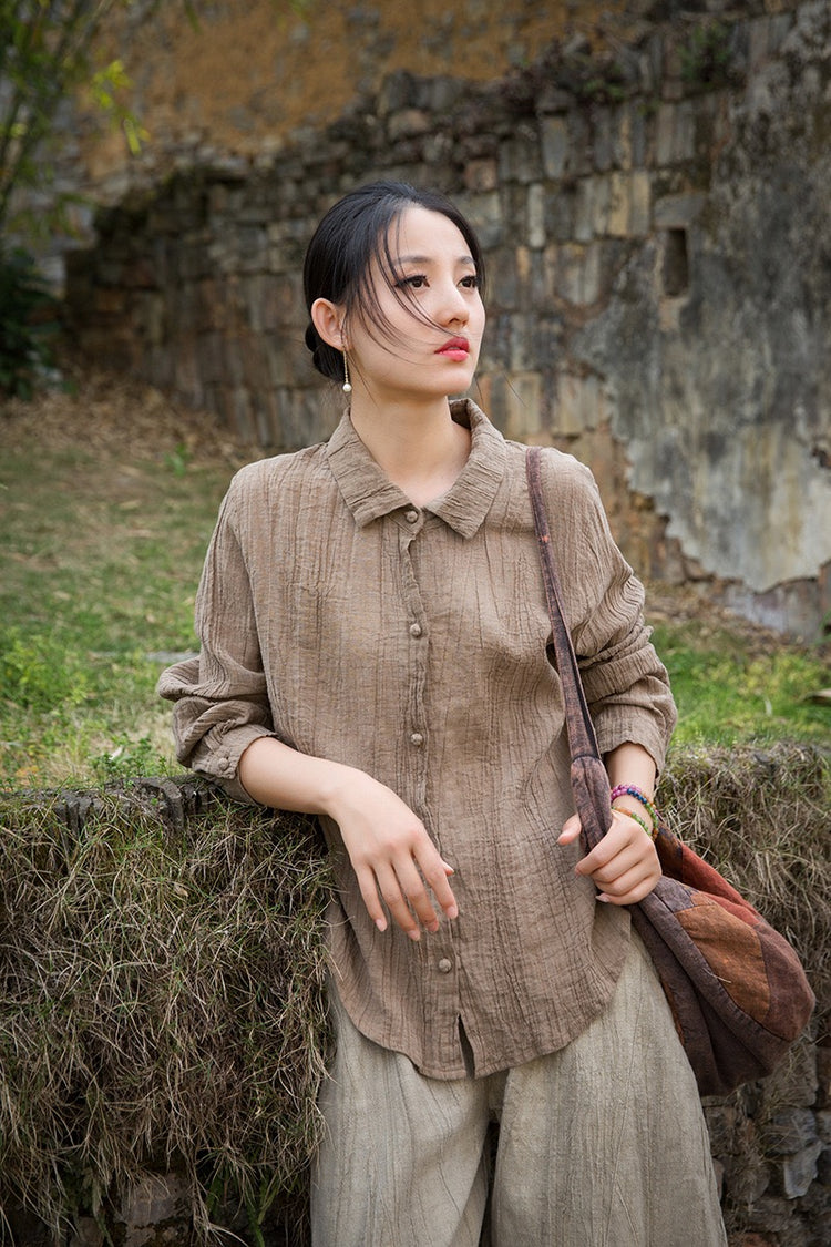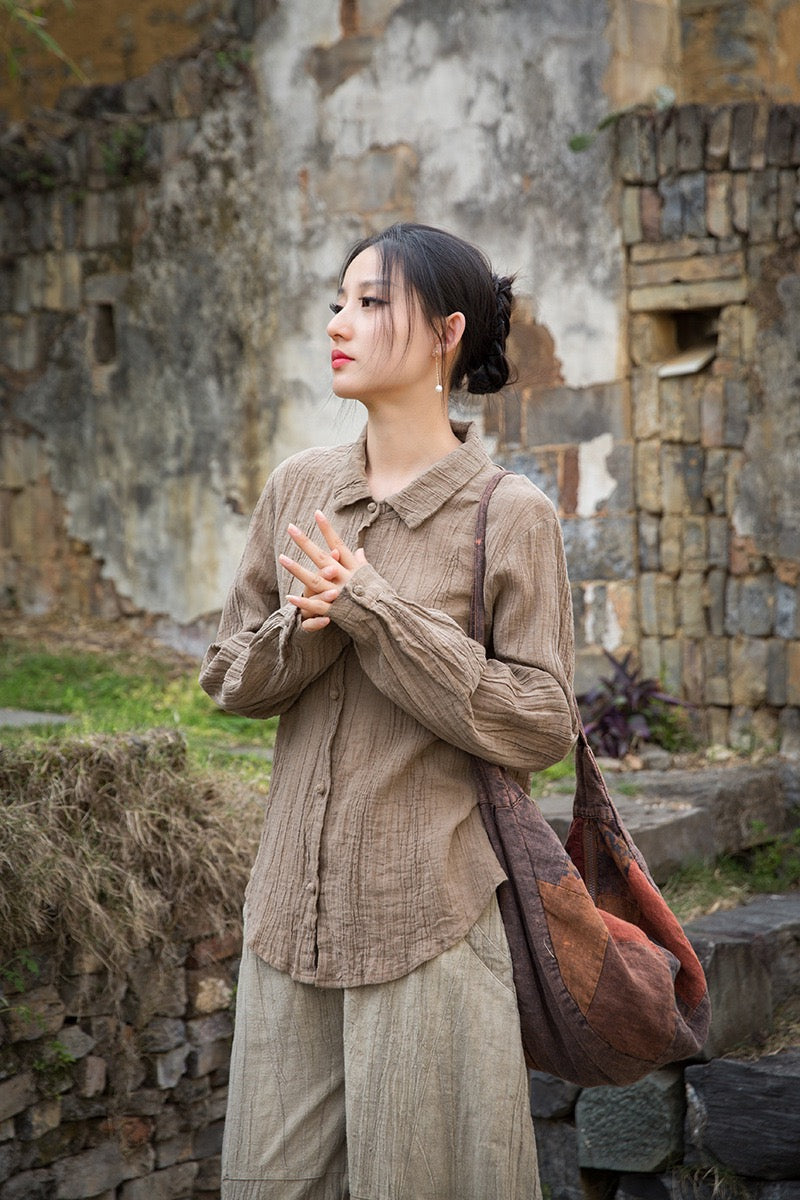 🍂 Tao One Tech™ • Zen Tea Cardigan Shirt • Tie Dye Folds • Linen Cotton ☁️☀️