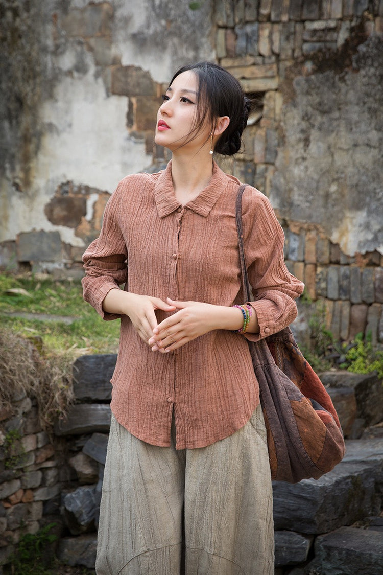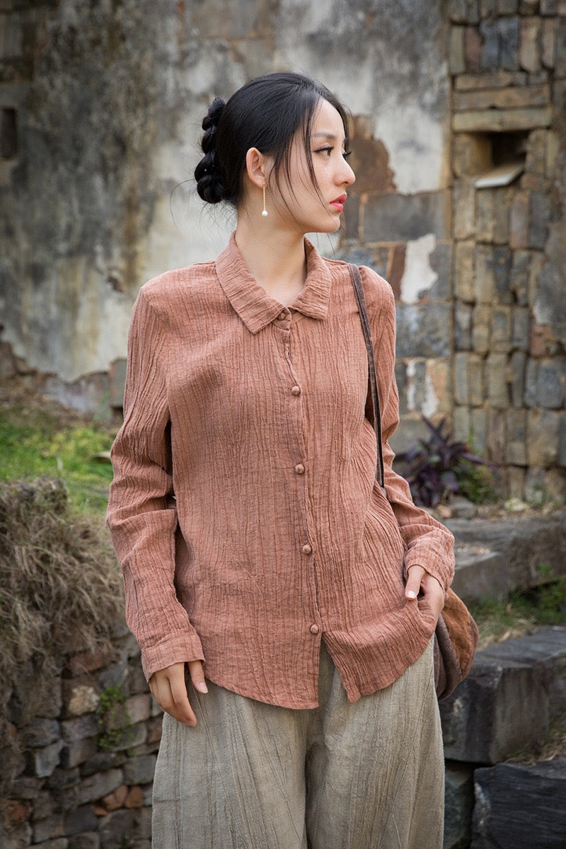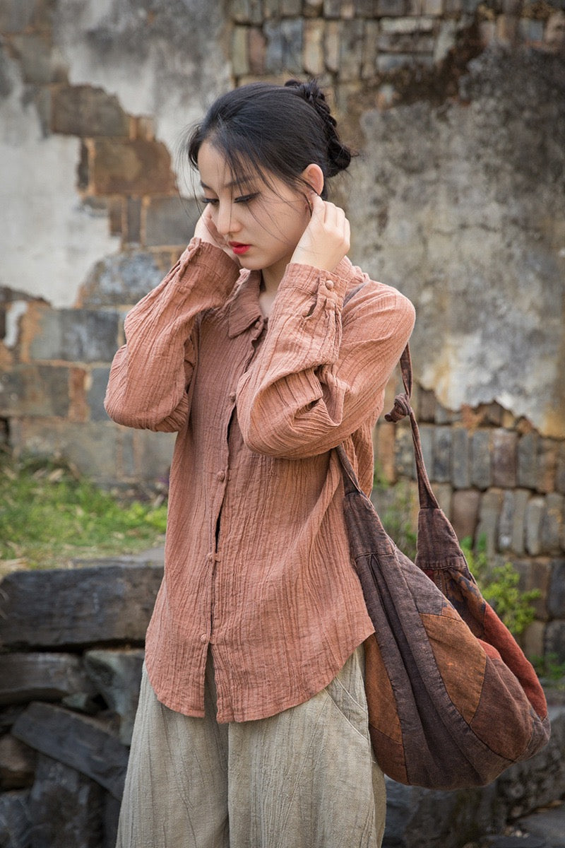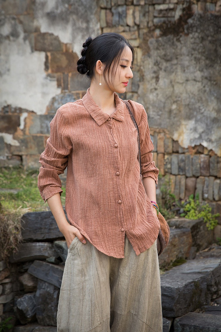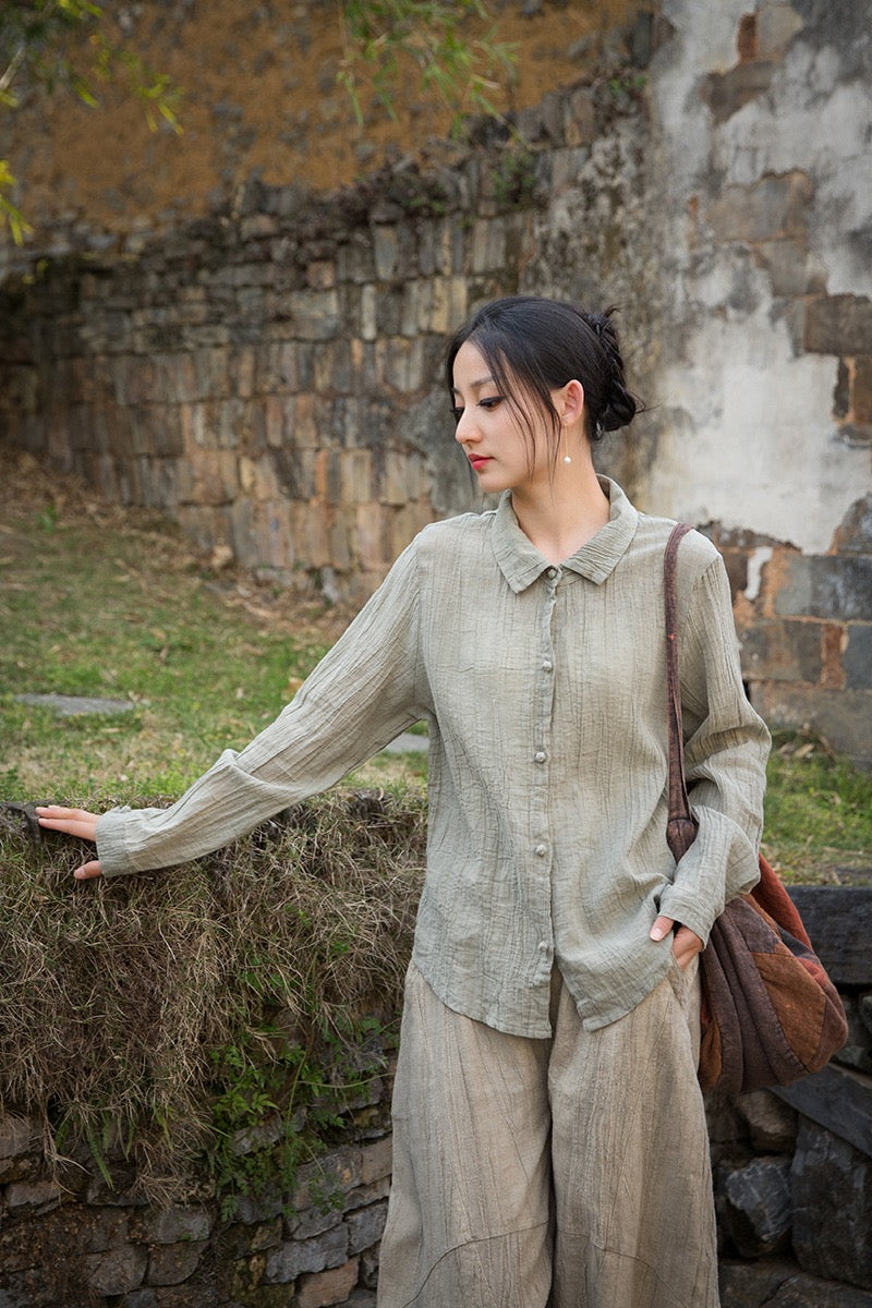 🍂 Tao One Tech™ • Zen Tea Cardigan Shirt • Tie Dye Folds • Linen Cotton ☁️☀️