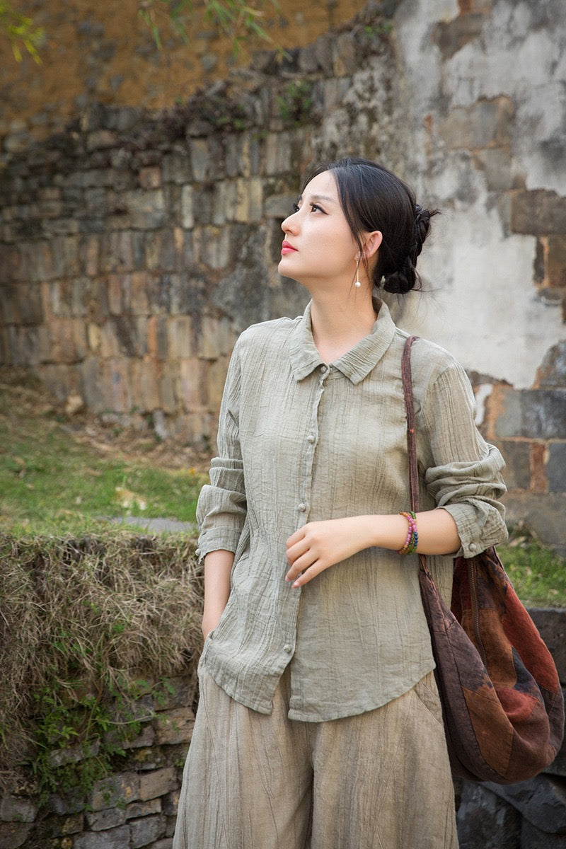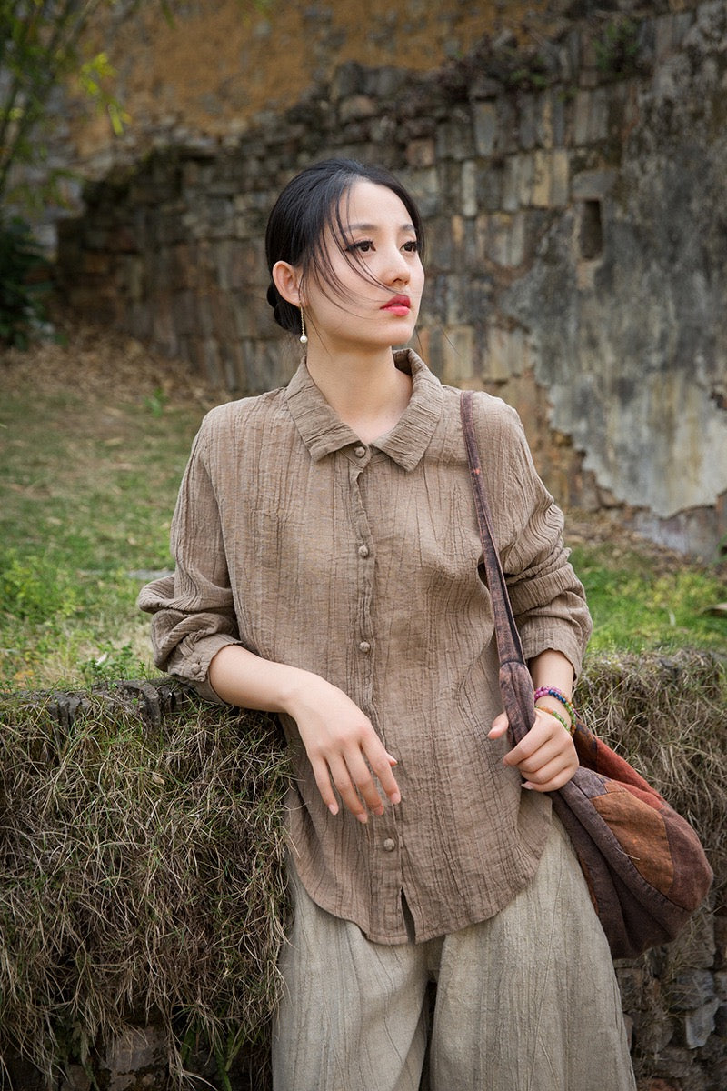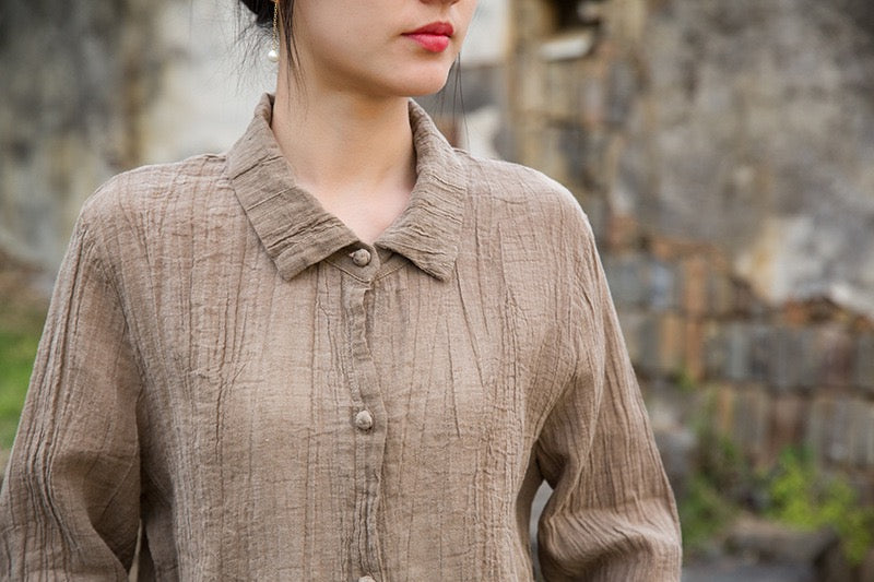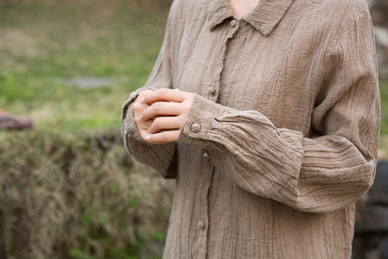 Tao One Tech™ • Zen Tea Cardigan Shirt • Tie Dye Folds • Linen Cotton