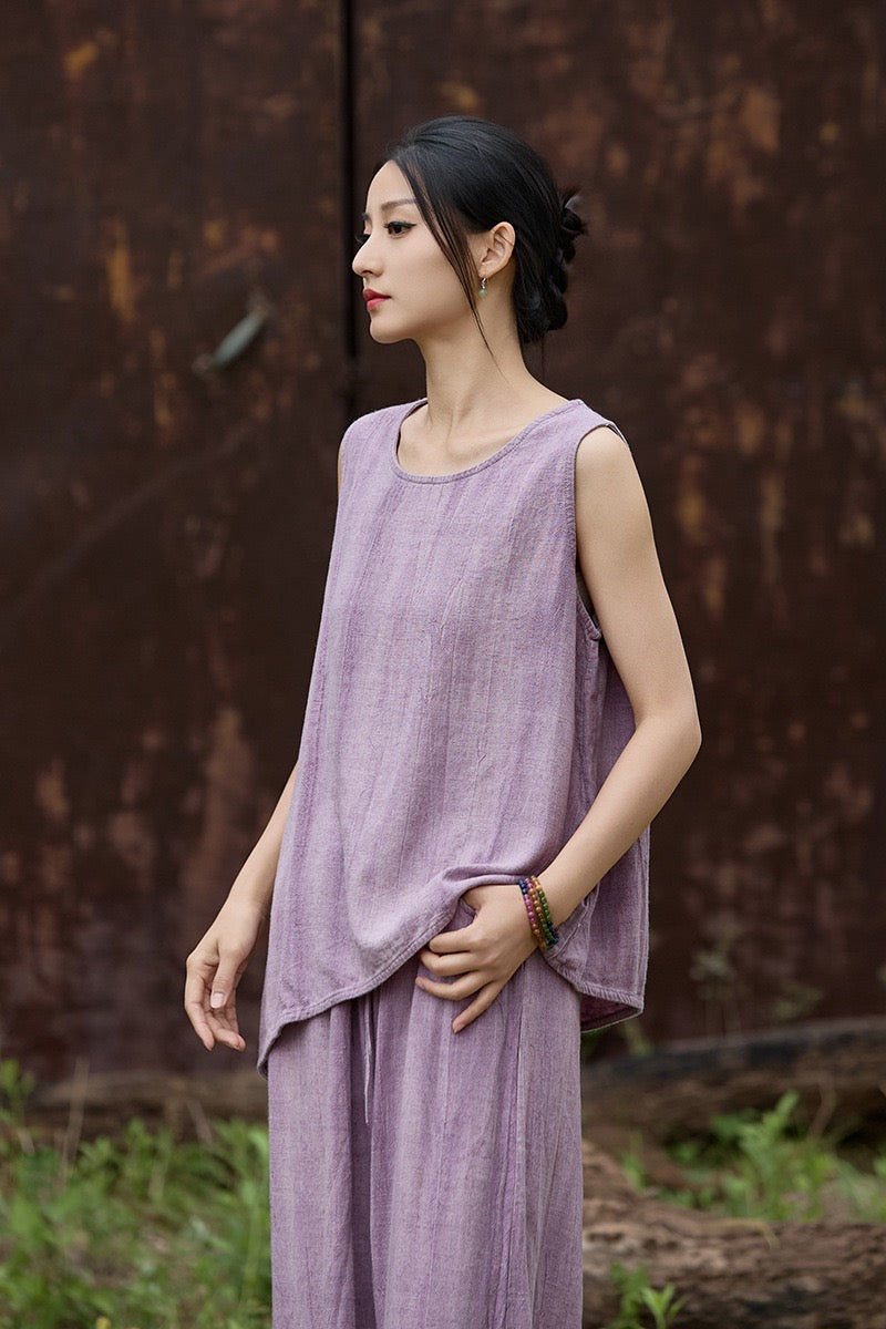 Tao One Tech™ • Heaven and Earth Qigong Tank Top • Tie-Dye • Asymmetrical Design • Gender Neutral • Linen Viscose