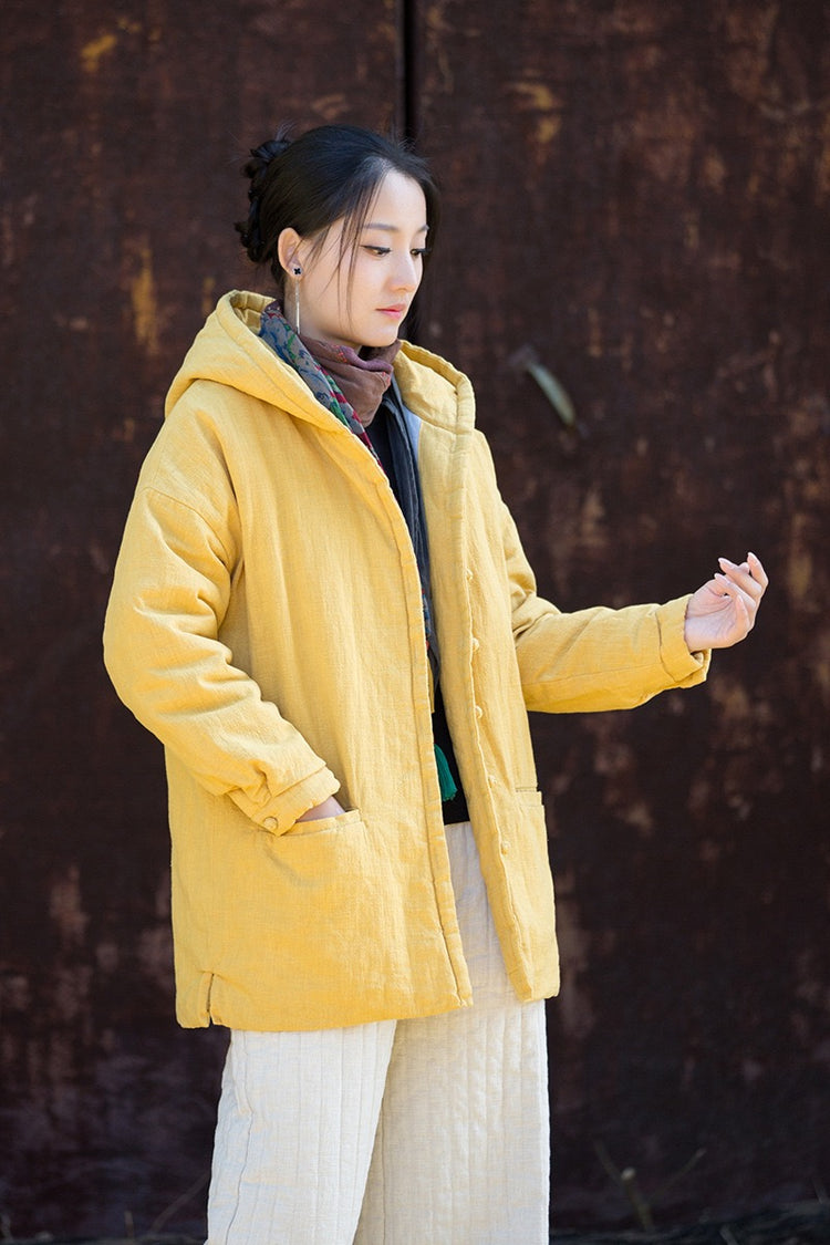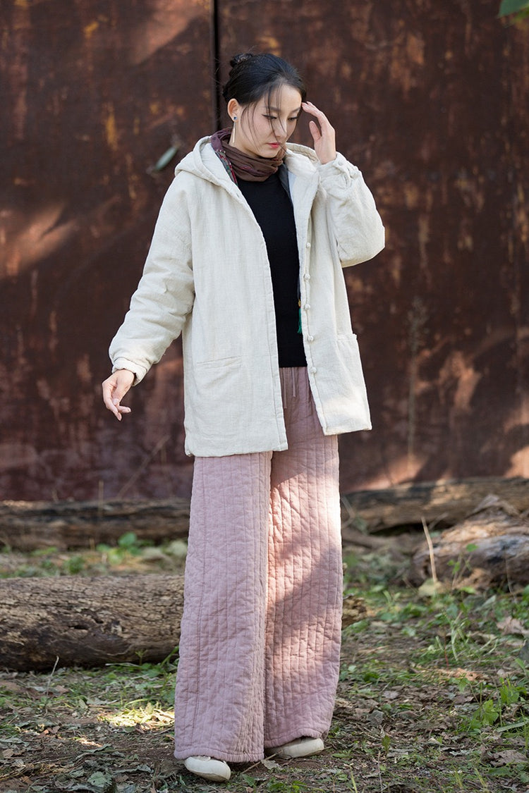 Triple-layer quilting of ramie linen, cotton lining, and silk cotton padding creates a cocoon of high-vibrational warmth — soft, breathable, and light — without down, polyester, or static.