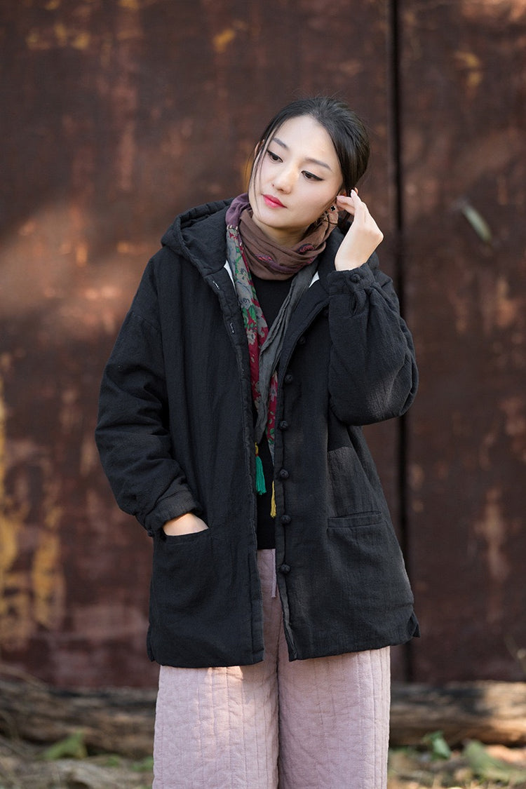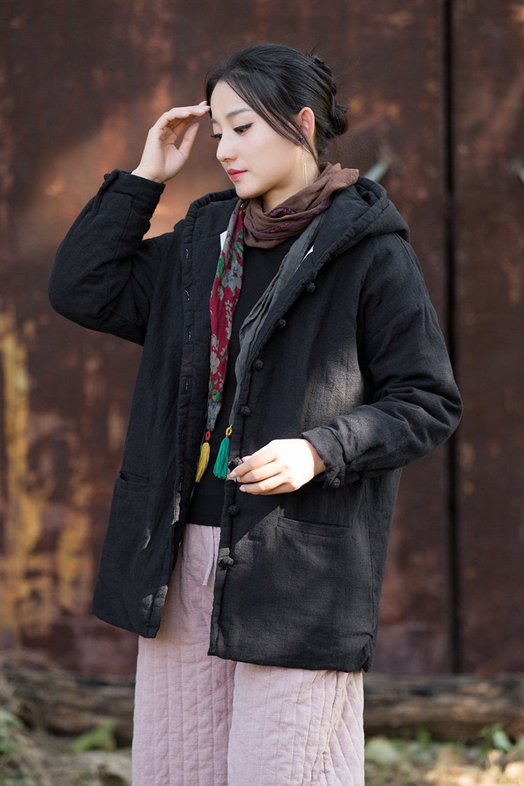 The hood gently seals the Wind Qi, preserving inner warmth while letting your breath flow in harmony with winter air — a quiet armor of softness and stillness.