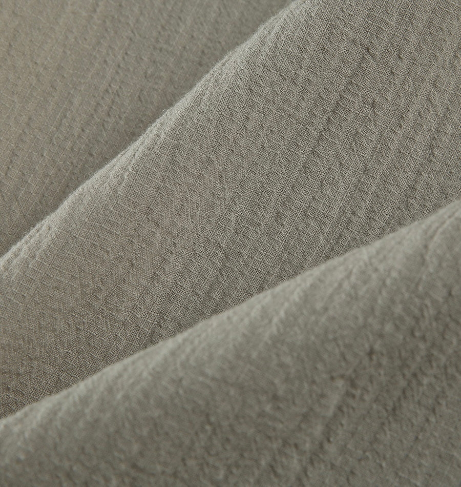 A single oneness button rests at the heart—simple yet meaningful—a reminder of unity, of less being more. The pleated cuffs and loose fit allow for both stillness and movement, for flowing gestures and calm pauses.