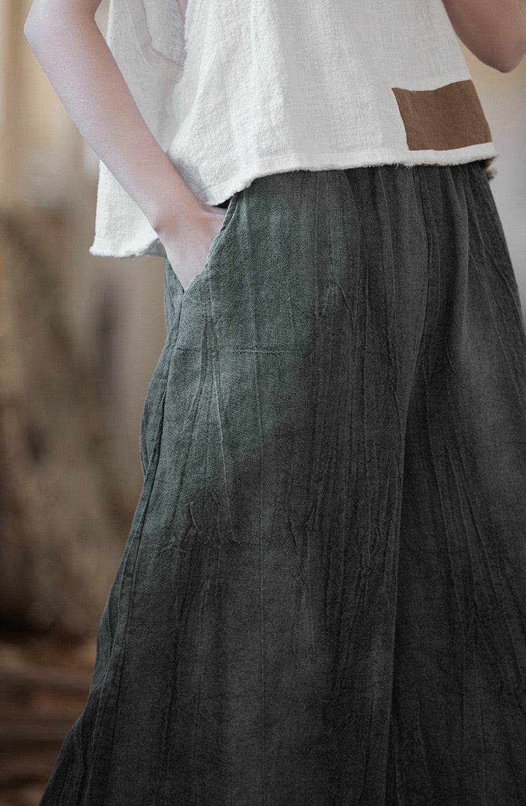 Tao One Tech™ • Flowy Cropped Pants • Tie Dye Folds • Ramie Cotton