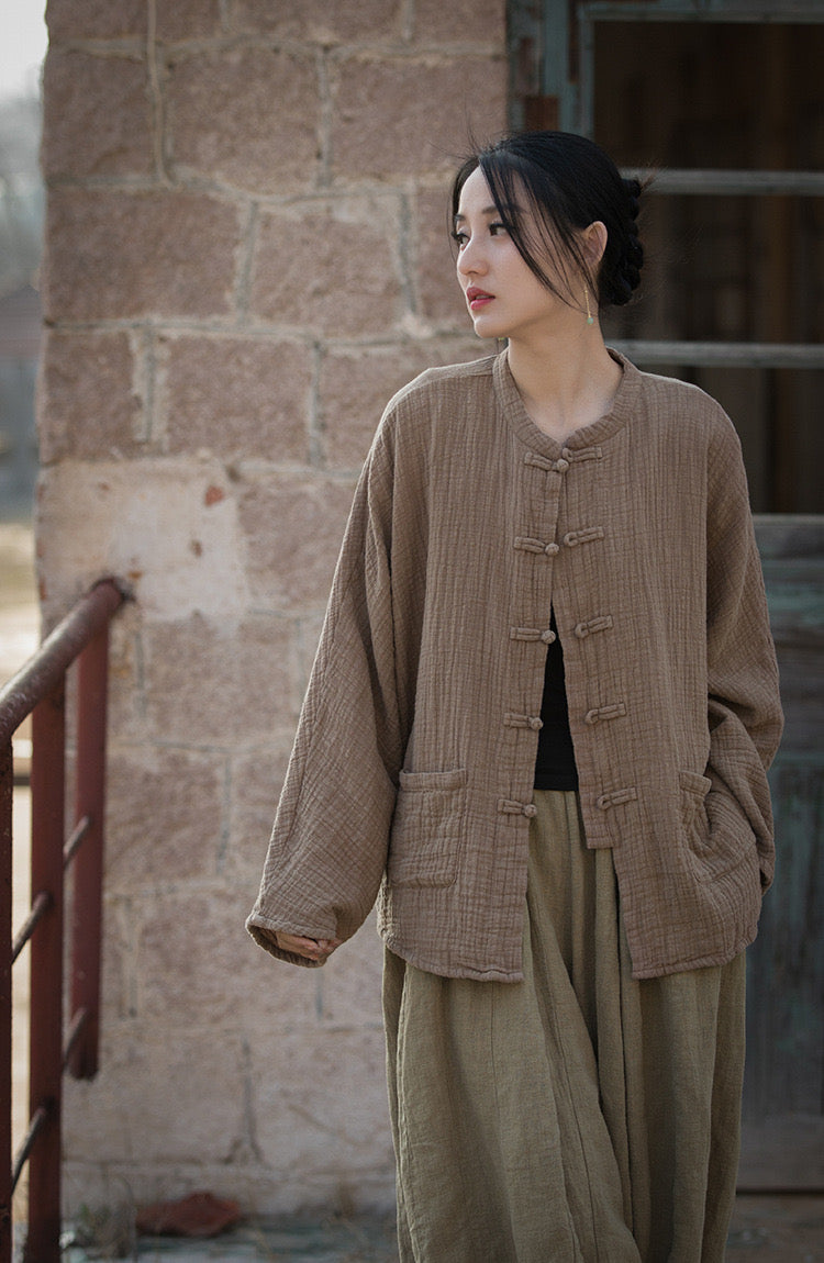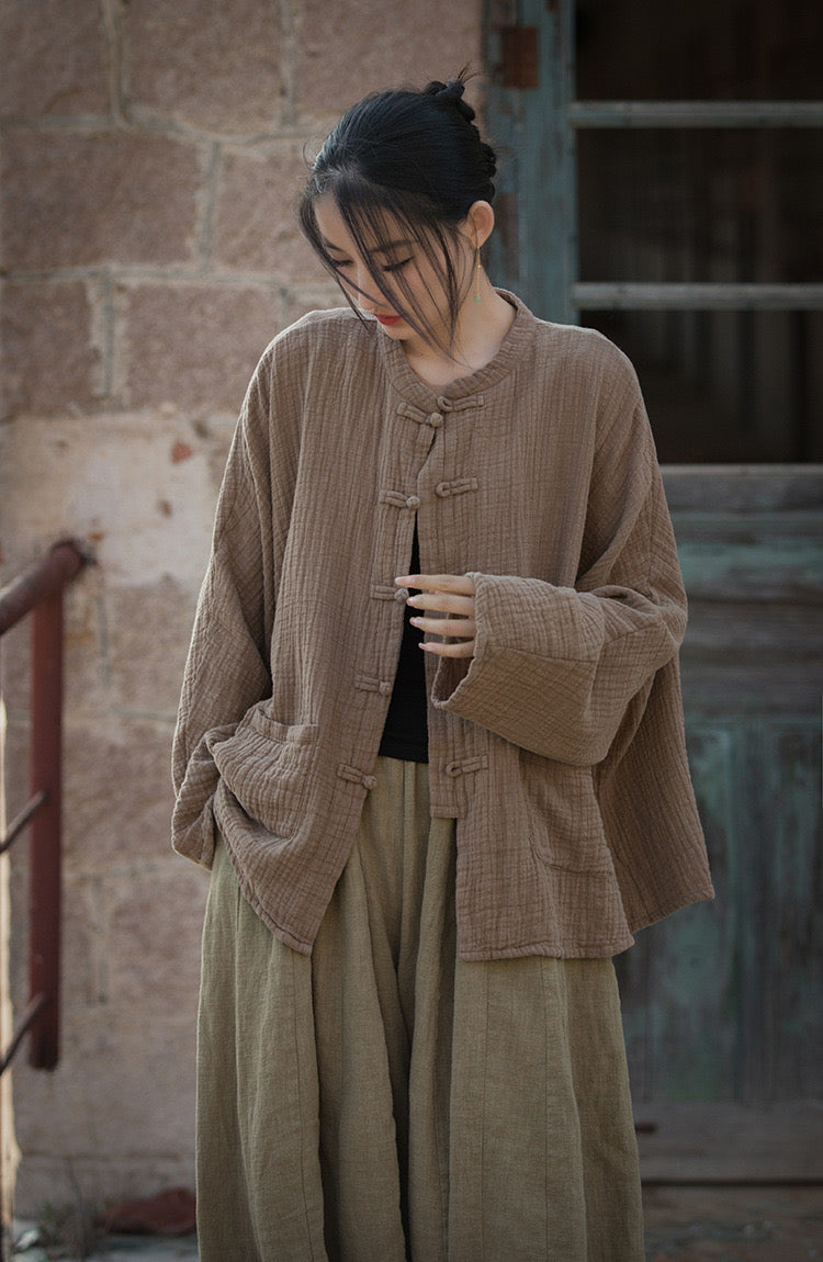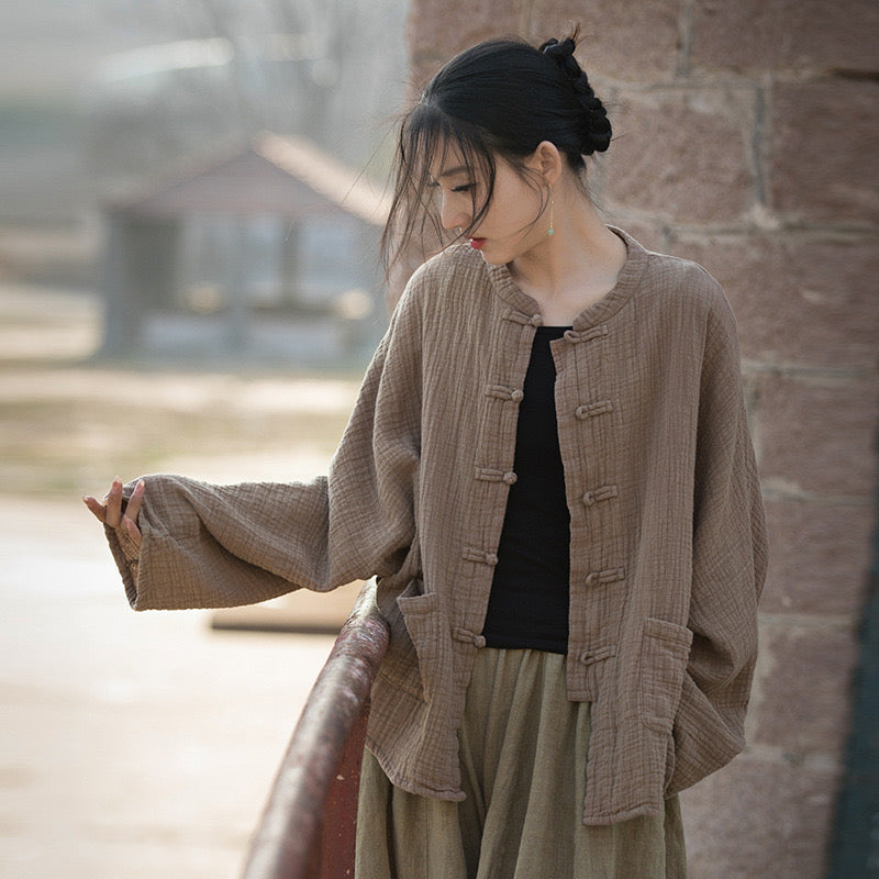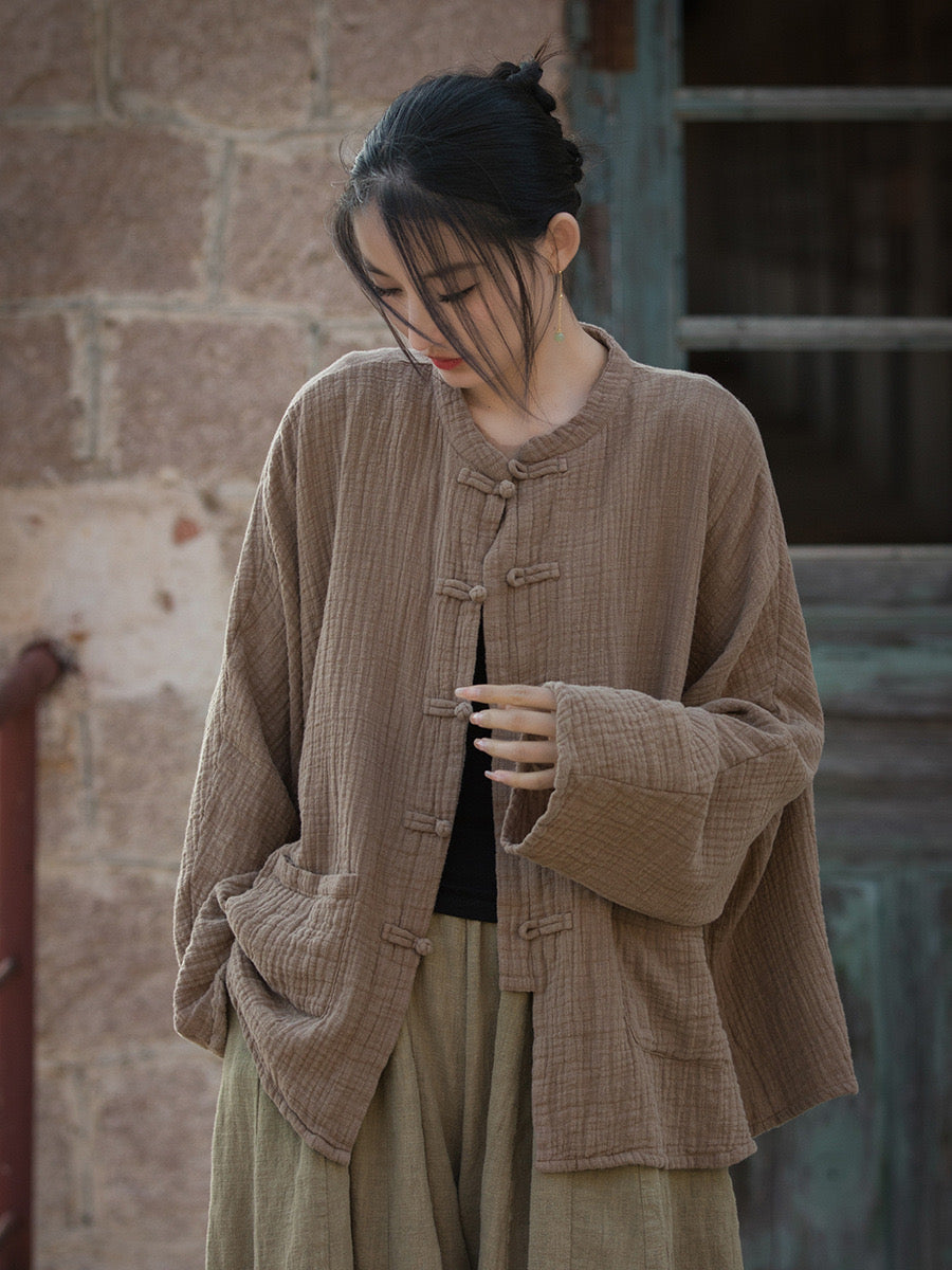 Tao One Tech™ • Zen Thermal Cardigan Jacket • Butterfly Bat Wings • 5 Buttons • Tech Pockets • Double-Layer Bamboo Texture • Cotton