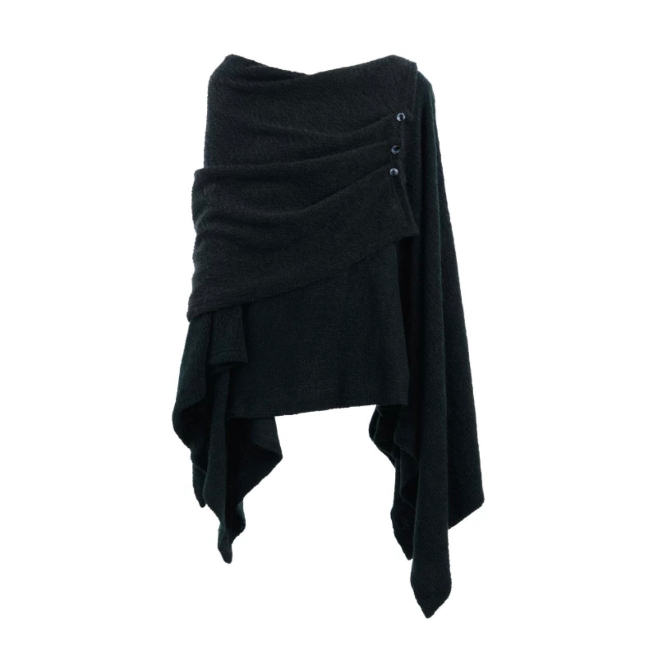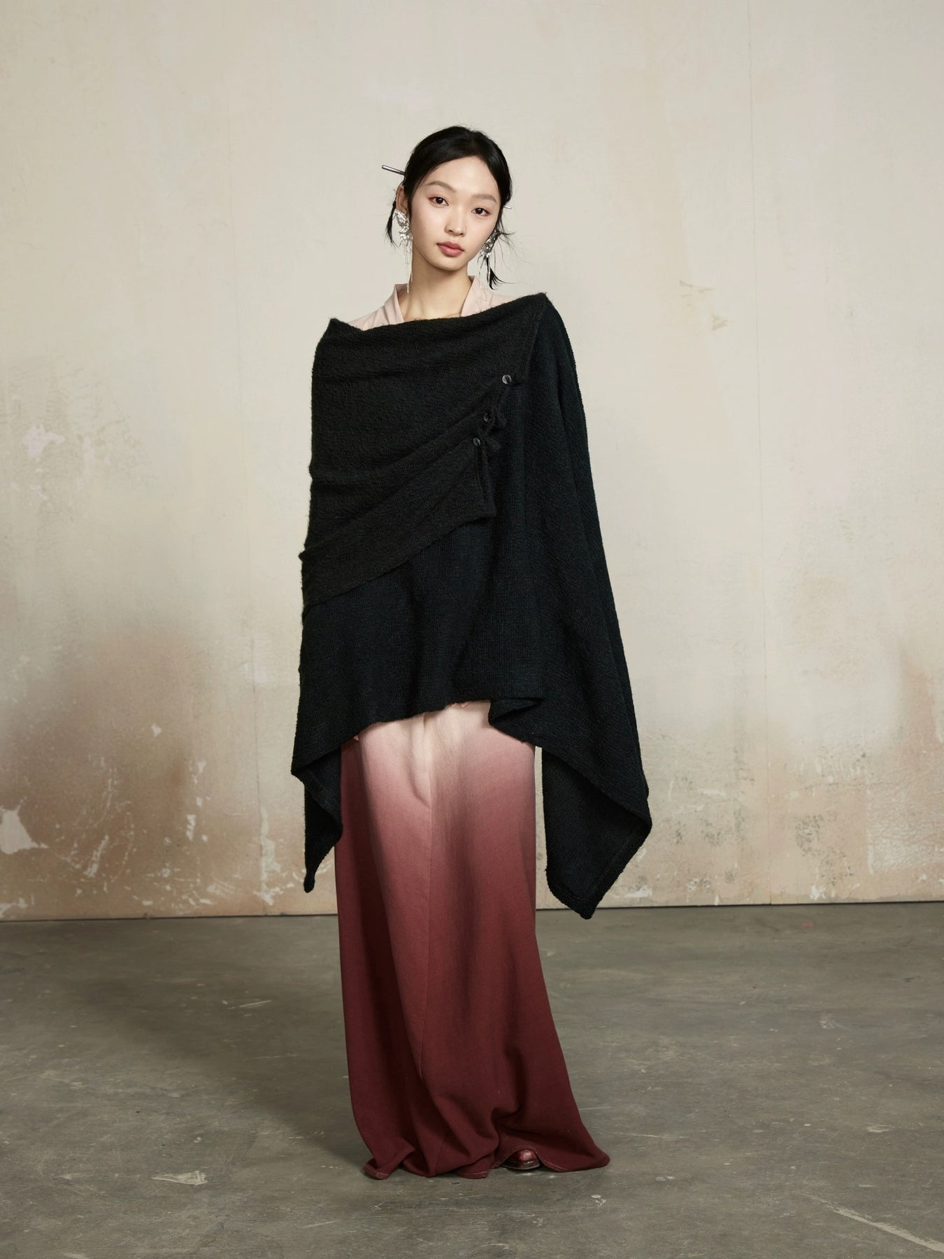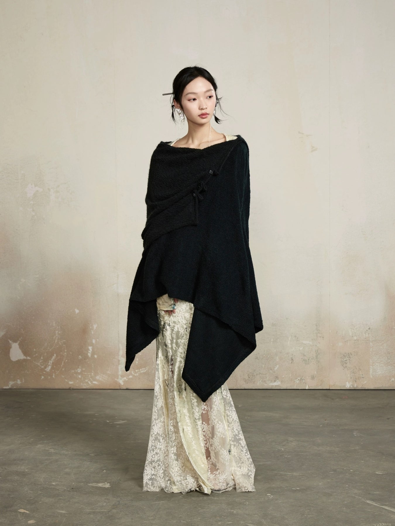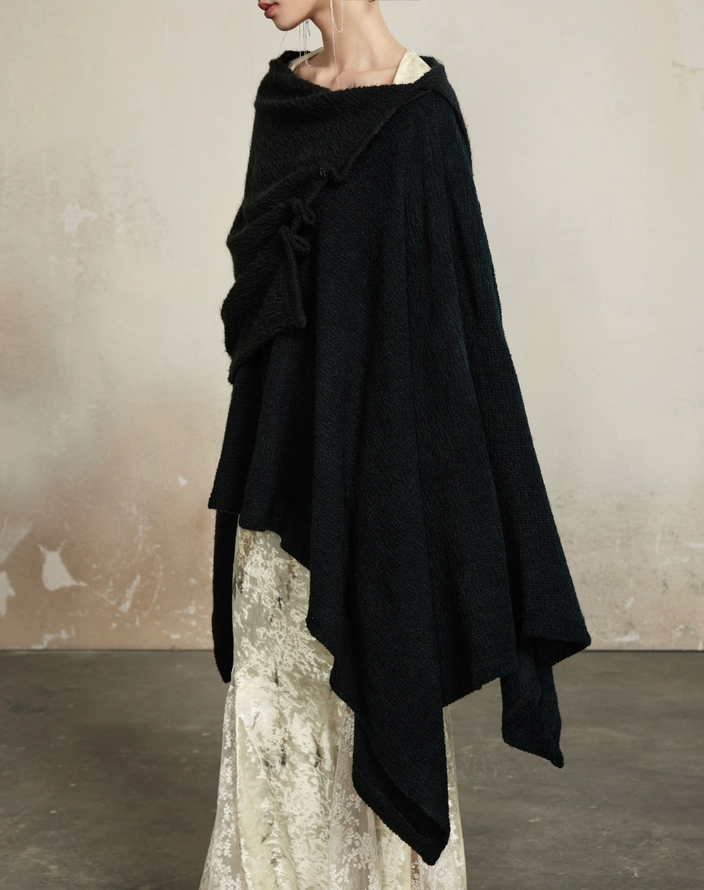 Introducing our soothing Tao Thermal Tech™, featuring the Tao Moon Shawl, a Cozy Knit Sweater crafted with a premium Vegan Wool Texture in acrylic knit blend. Experience the utmost comfort and style with this exquisite piece.