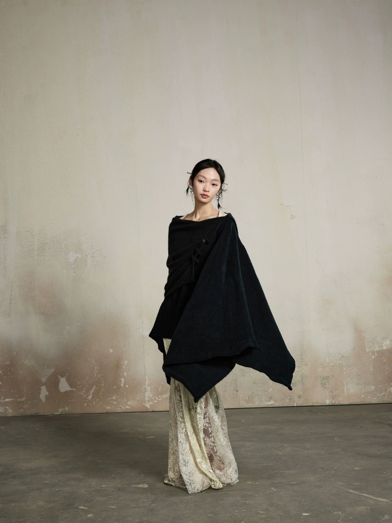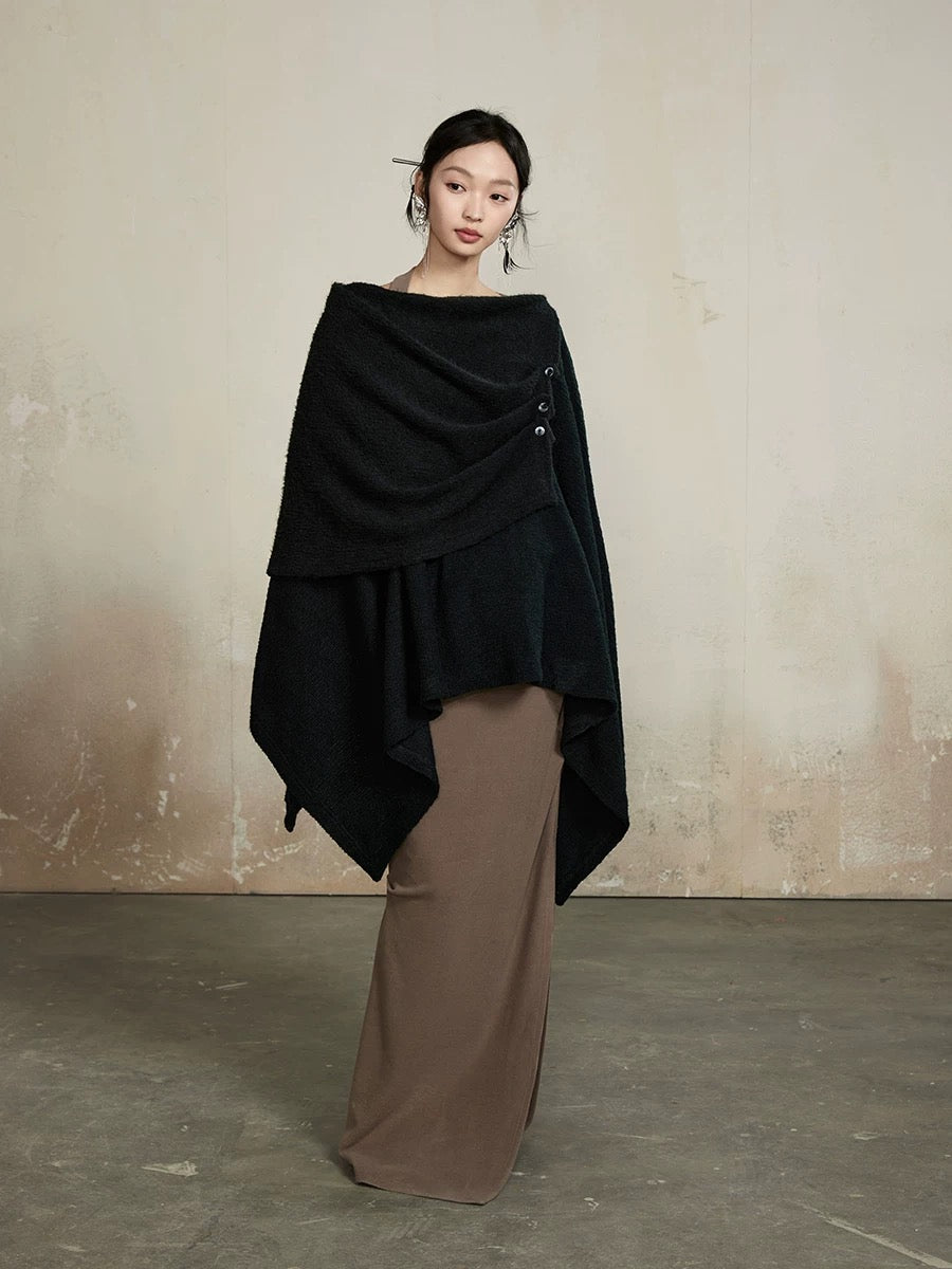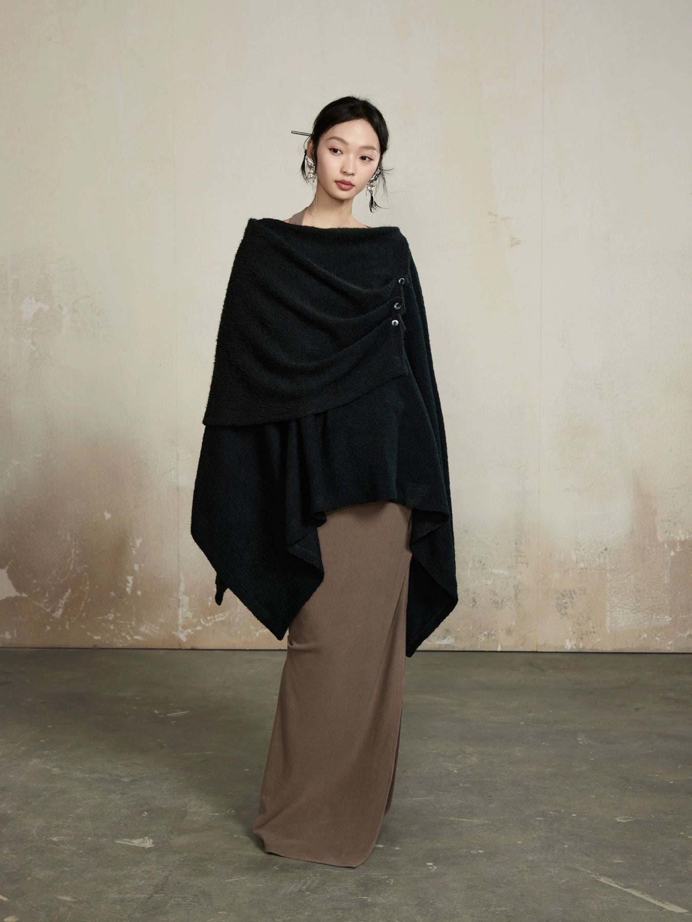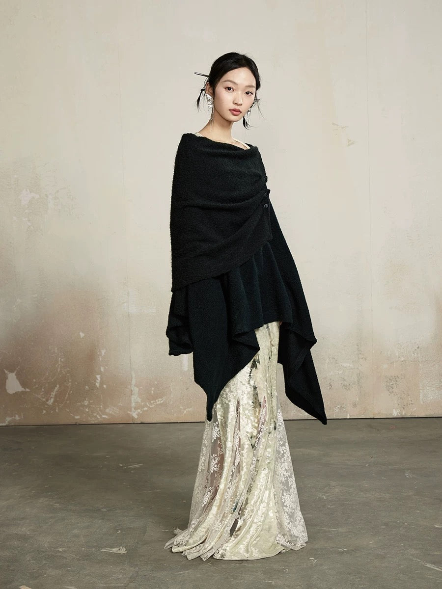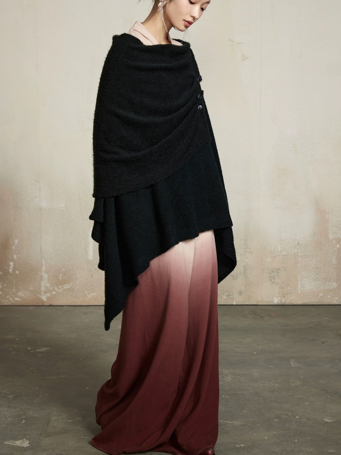 Introducing our soothing Tao Thermal Tech™, featuring the Tao Moon Shawl, a Cozy Knit Sweater crafted with a premium Vegan Wool Texture in acrylic knit blend. Experience the utmost comfort and style with this exquisite piece.