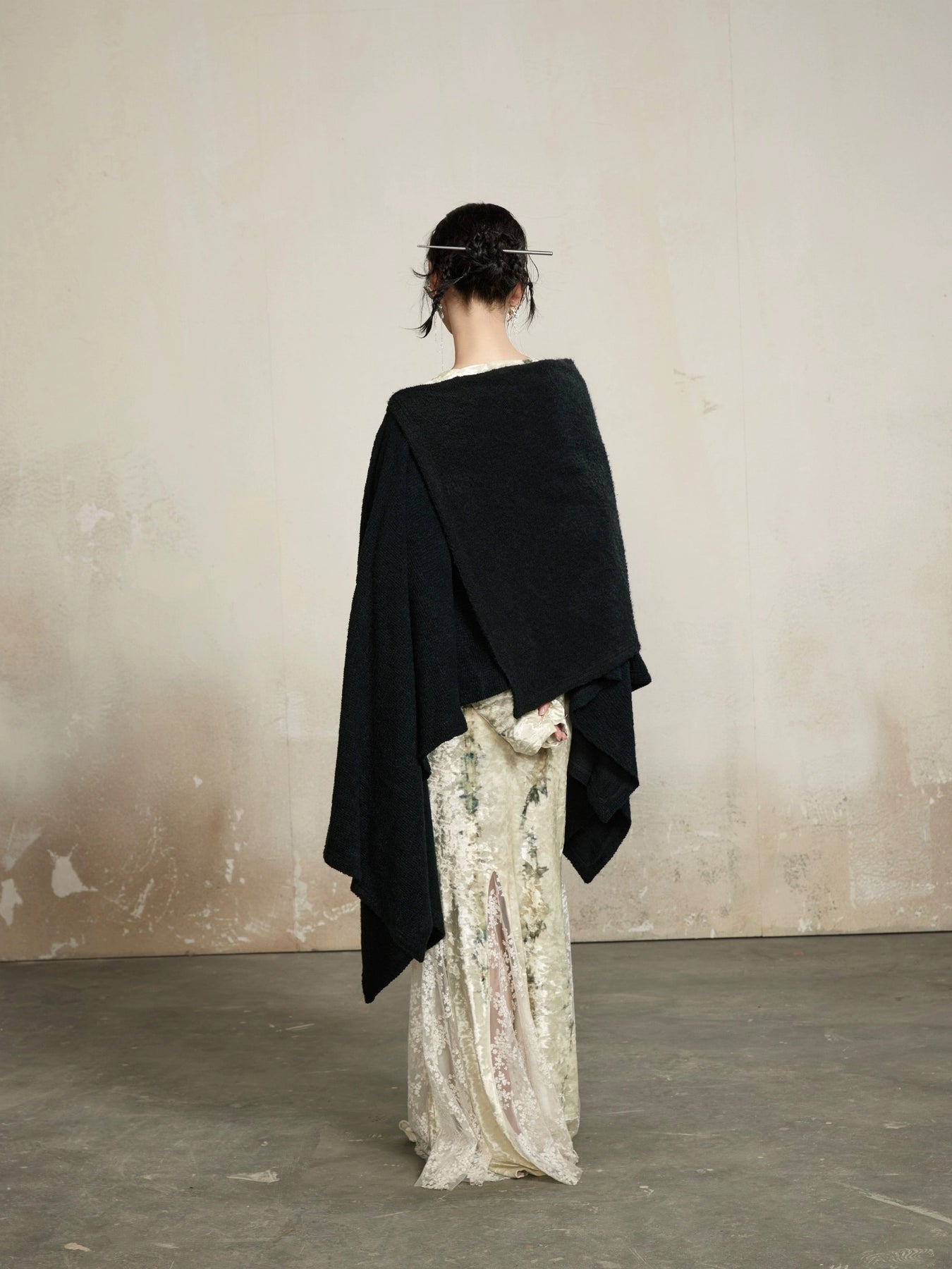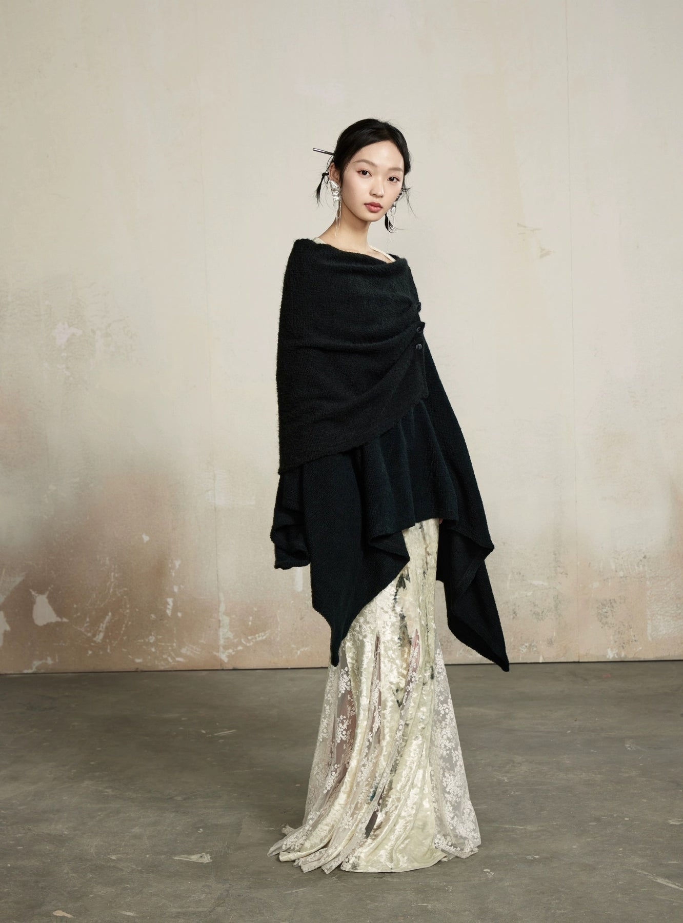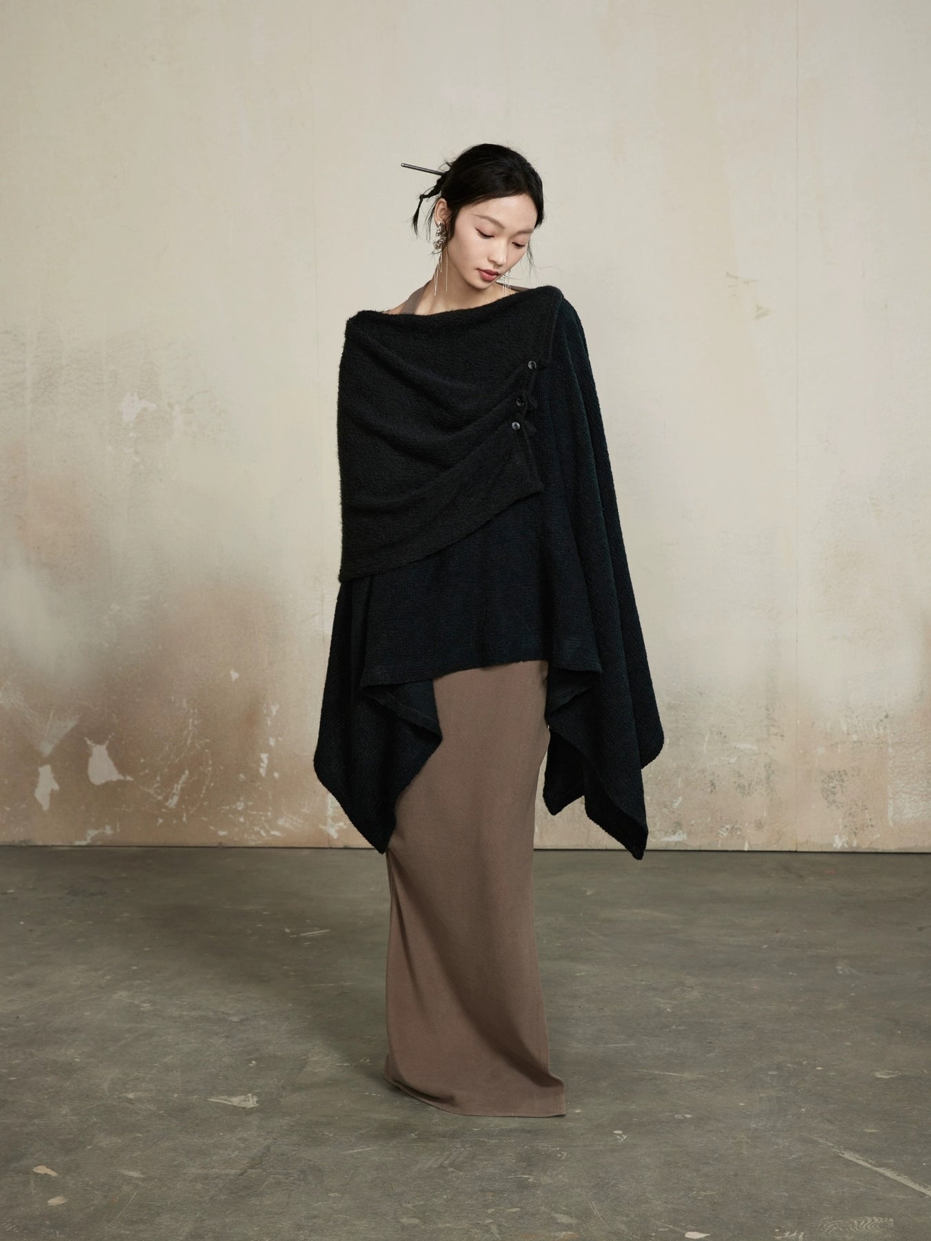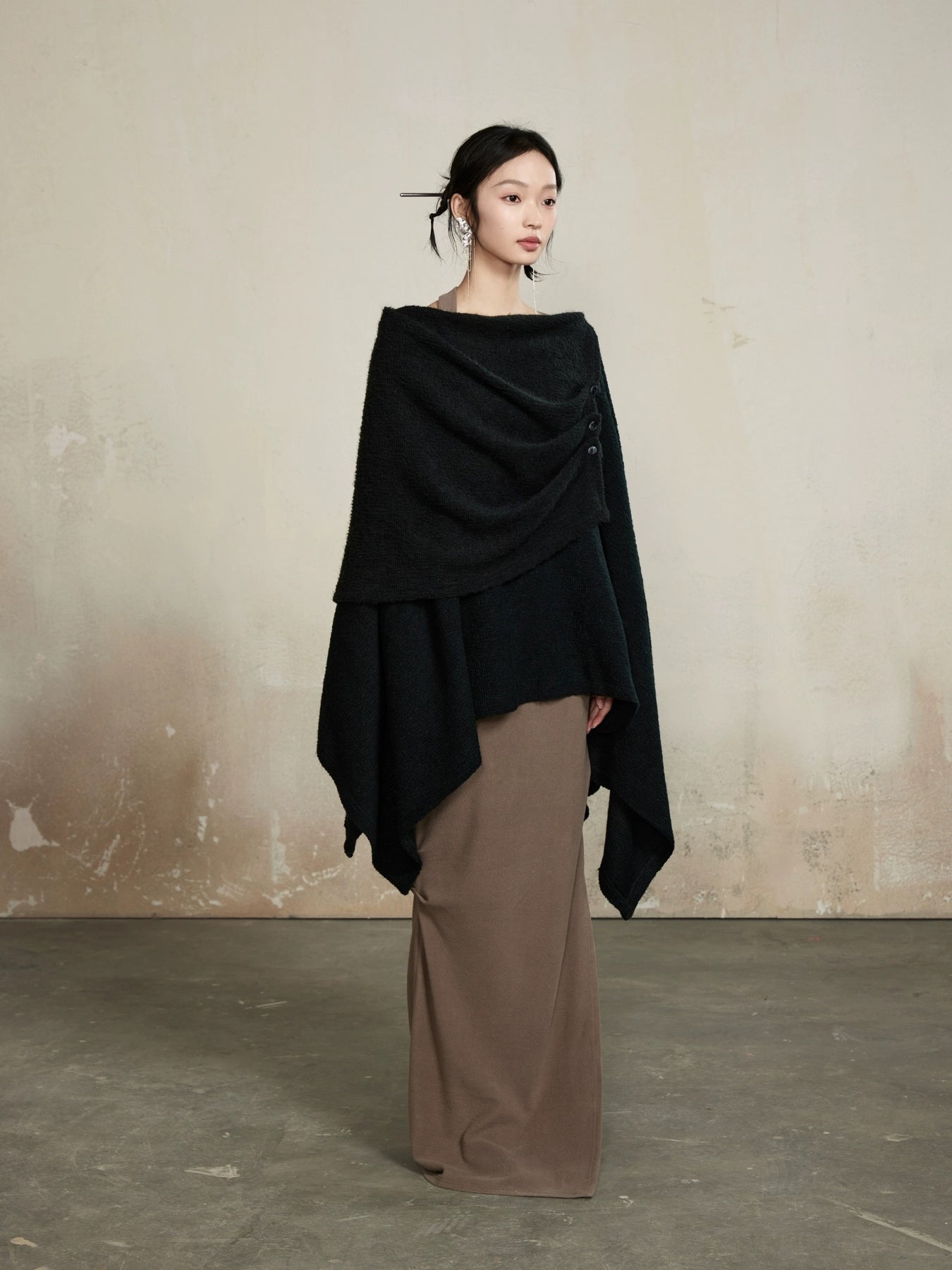 Introducing our soothing Tao Thermal Tech™, featuring the Tao Moon Shawl, a Cozy Knit Sweater crafted with a premium Vegan Wool Texture in acrylic knit blend. Experience the utmost comfort and style with this exquisite piece.