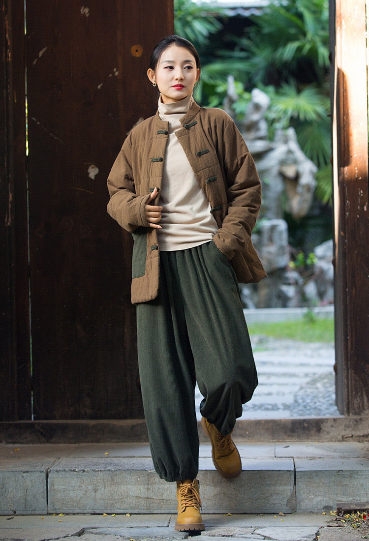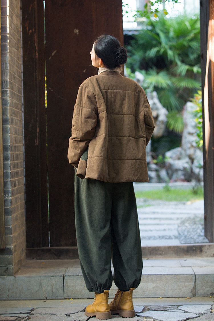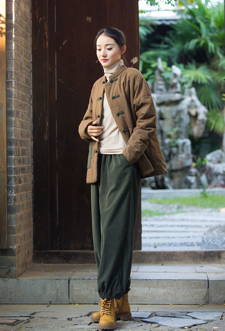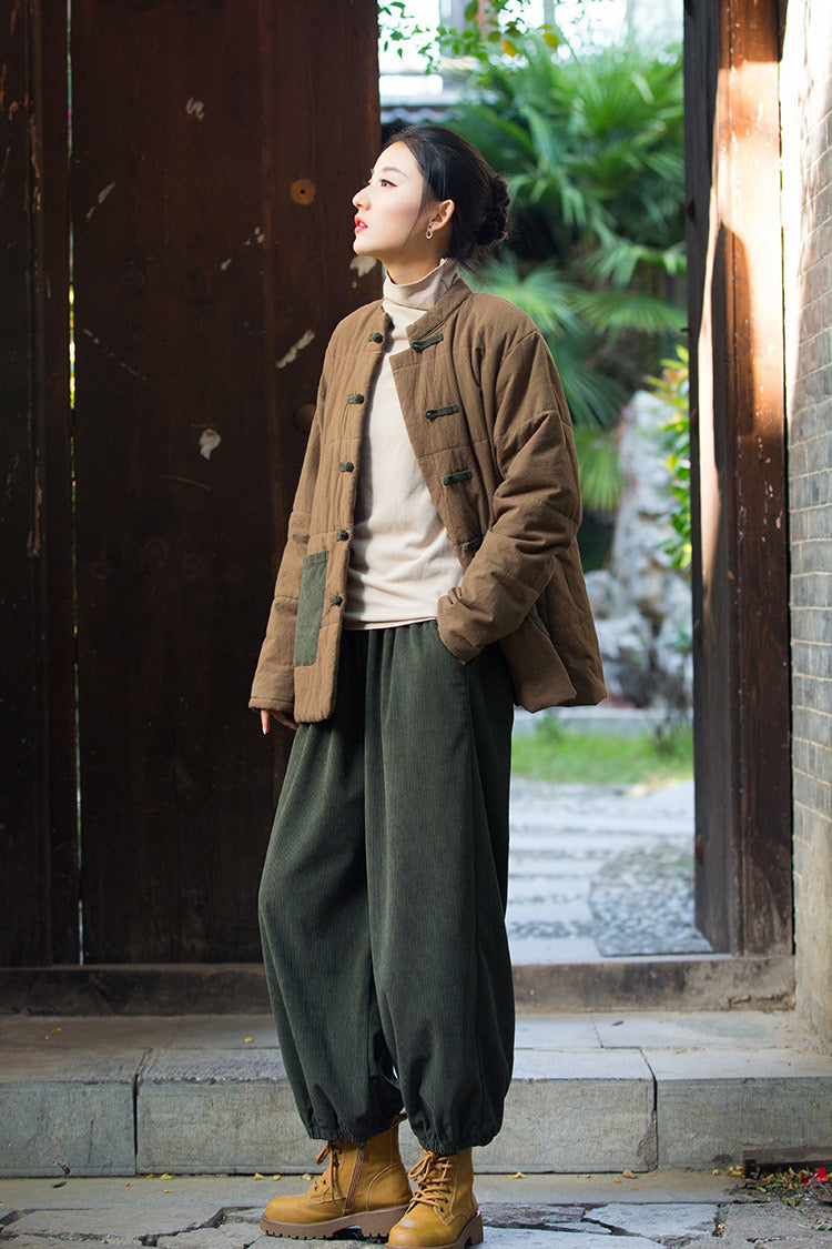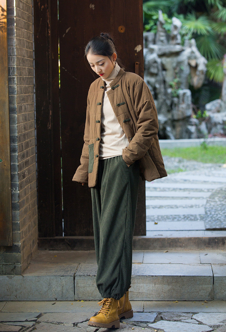 Le Đạo 道 de l'embellissement Veste matelassée en velours côtelé • À base de plantes • Intégration de matelassage à trois couches • Flux de Qi thermique • Genre neutre