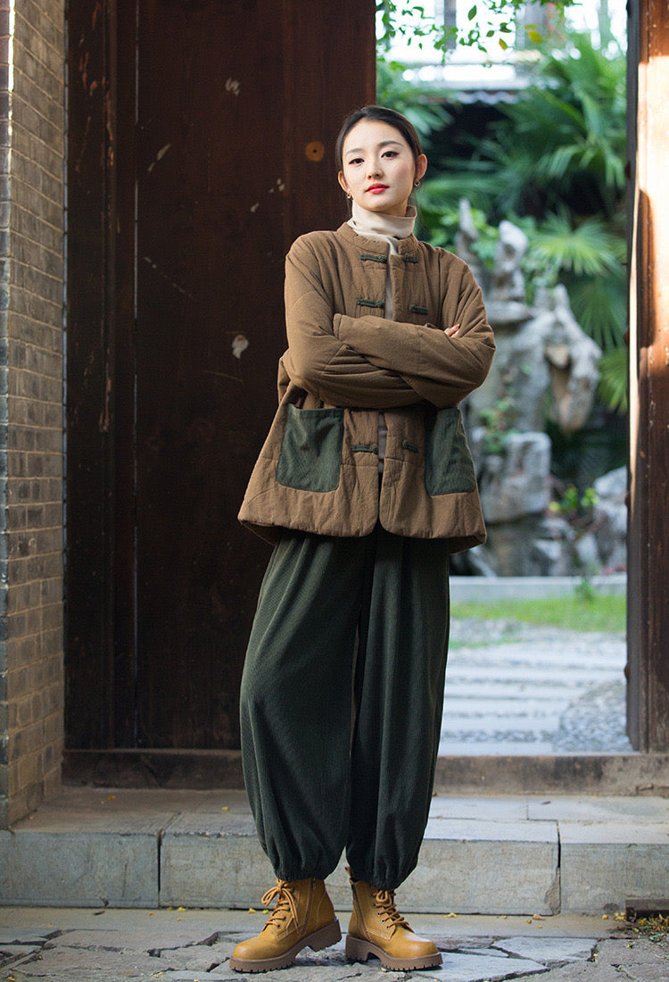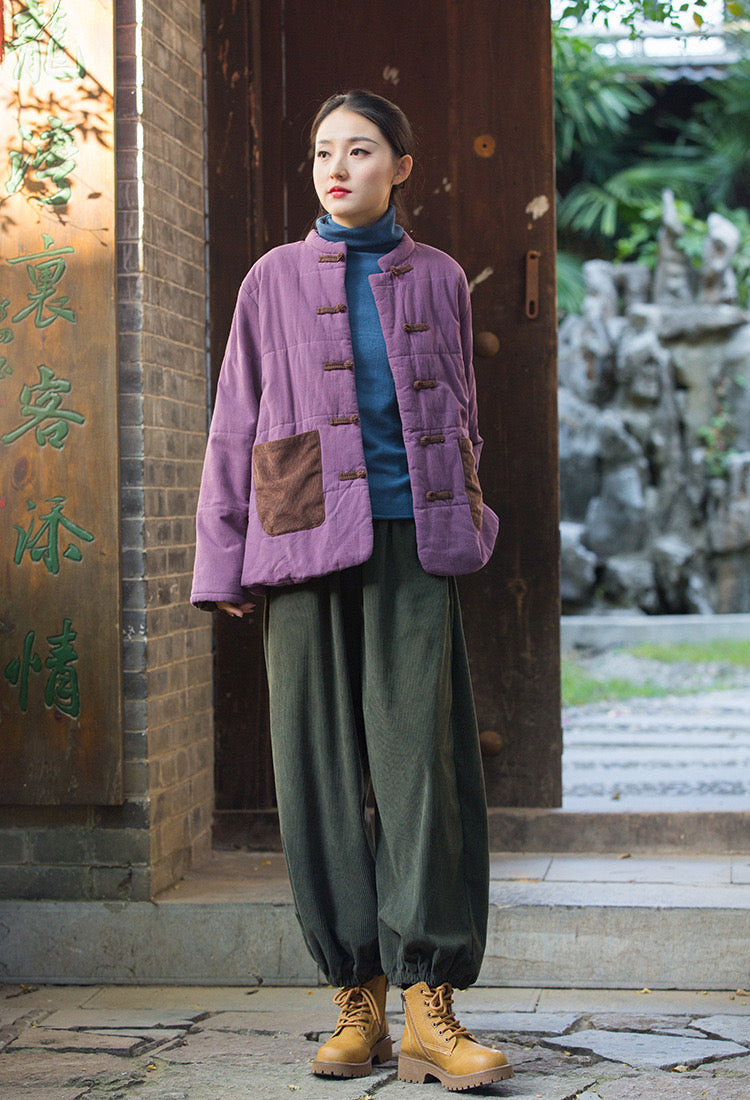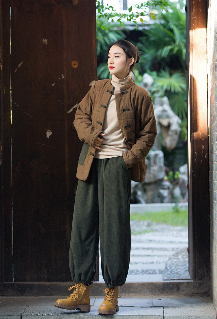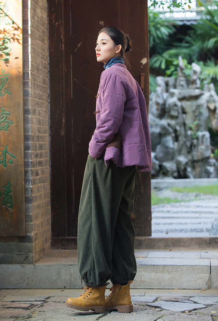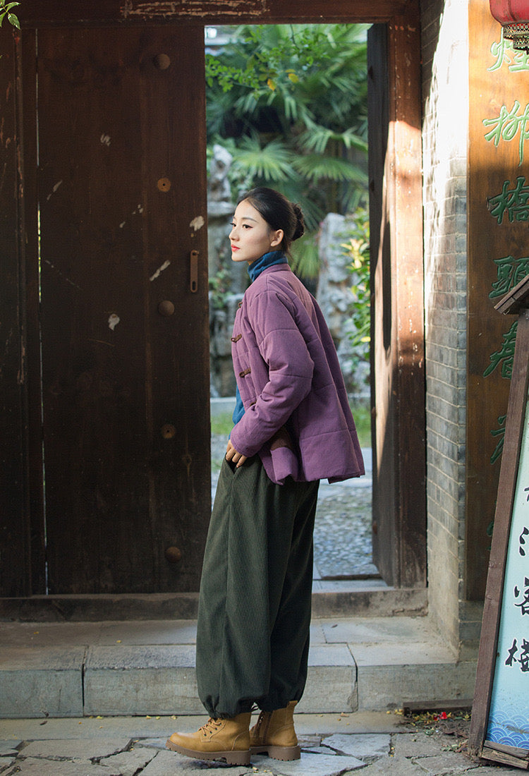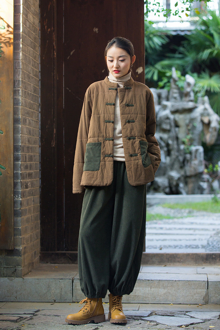 Le Đạo 道 de l'embellissement Veste matelassée en velours côtelé • À base de plantes • Intégration de matelassage à trois couches • Flux de Qi thermique • Genre neutre