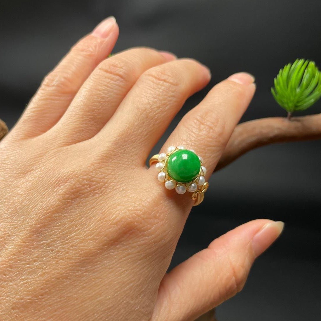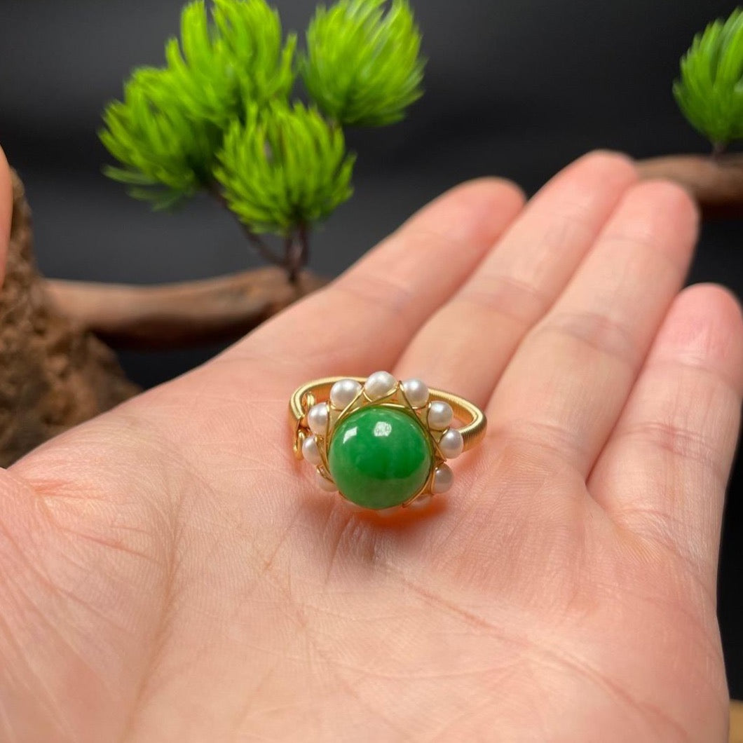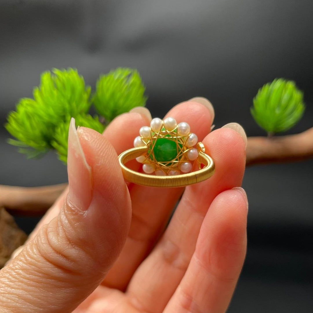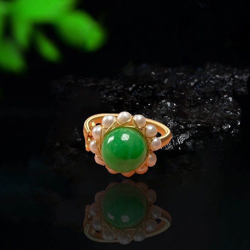 Bague Trinity Jade Pearl • Ajustable • Cuivre à haute vibration
