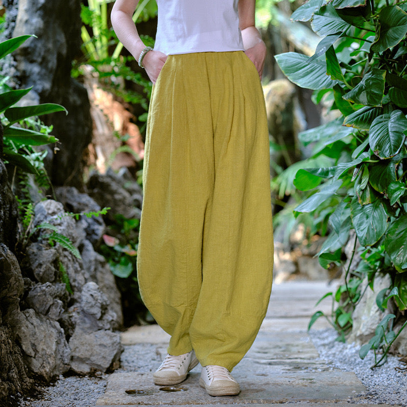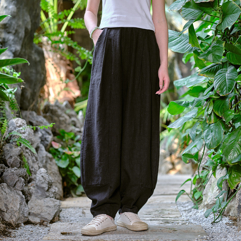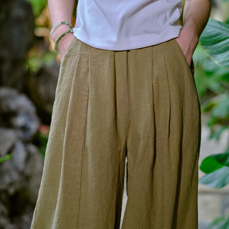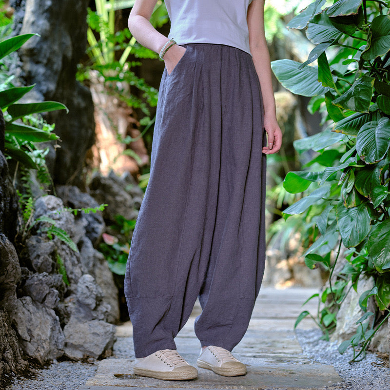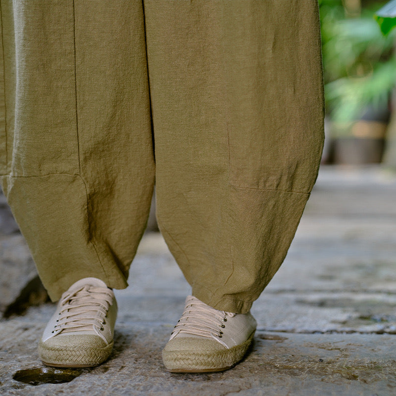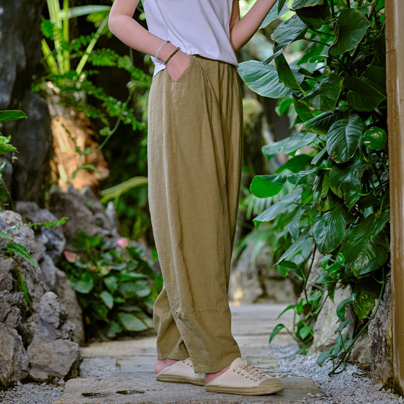 Débarrassez-vous de votre pantalon en plastique polyester. Bienvenue à vos pantalons à base de plantes à haute fréquence. Ce pantalon est composé d'un mélange yin-yang de coton et de lin ramie à base de plantes naturelles, qui combine la douceur yin du coton avec la respirabilité et les propriétés rafraîchissantes du lin, le polissage avec l'épaisseur yang et la durabilité des plantes de coton ramie.