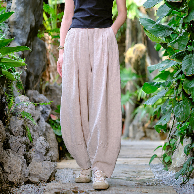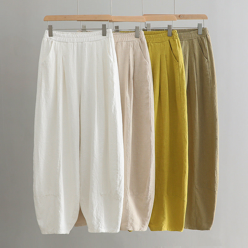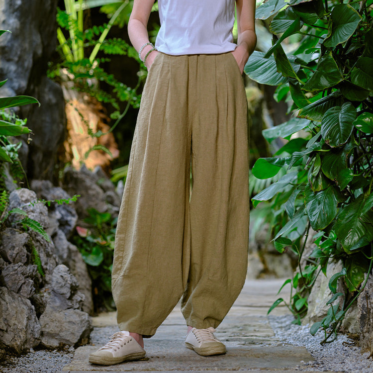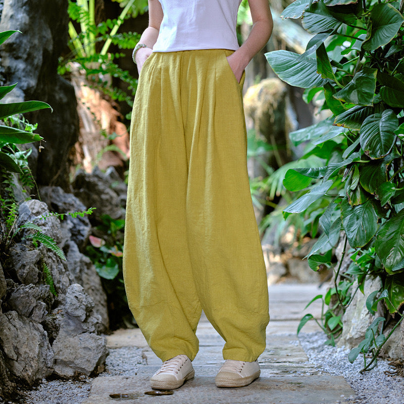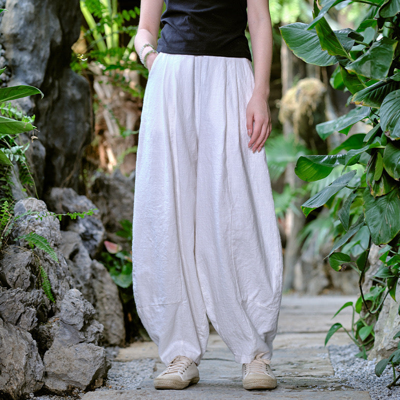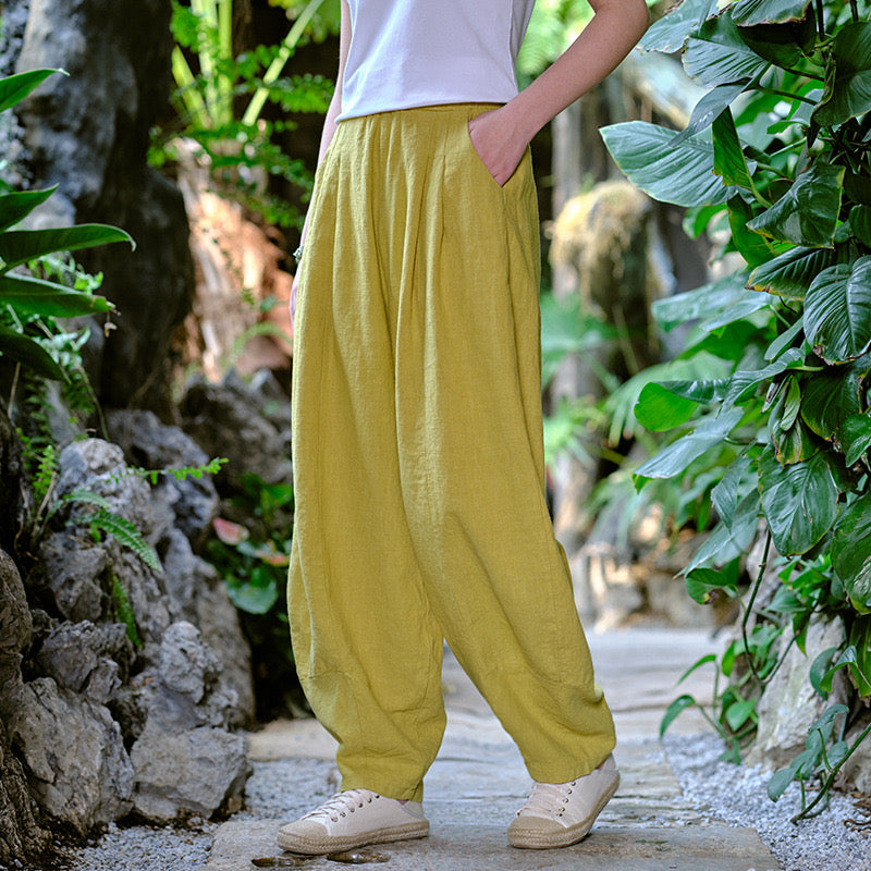 Débarrassez-vous de votre pantalon en plastique polyester. Bienvenue à vos pantalons à base de plantes à haute fréquence. Ce pantalon est composé d'un mélange yin-yang de coton et de lin ramie à base de plantes naturelles, qui combine la douceur yin du coton avec la respirabilité et les propriétés rafraîchissantes du lin, le polissage avec l'épaisseur yang et la durabilité des plantes de coton ramie.