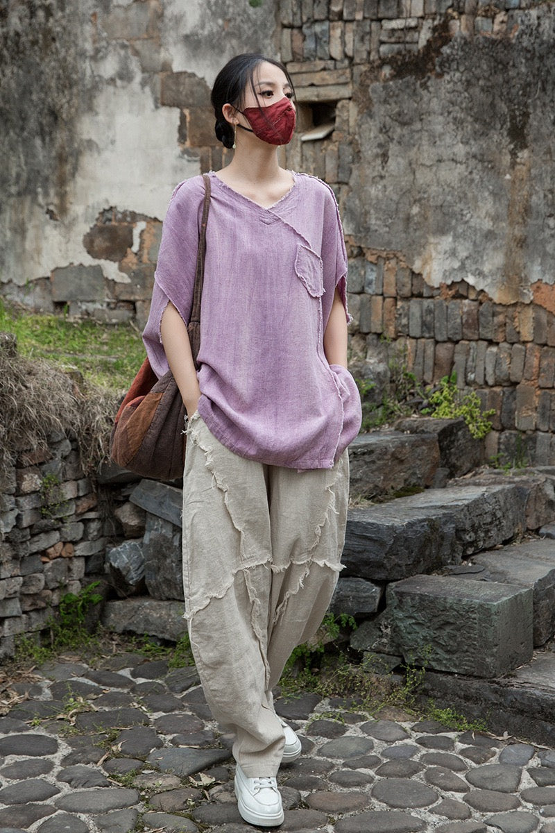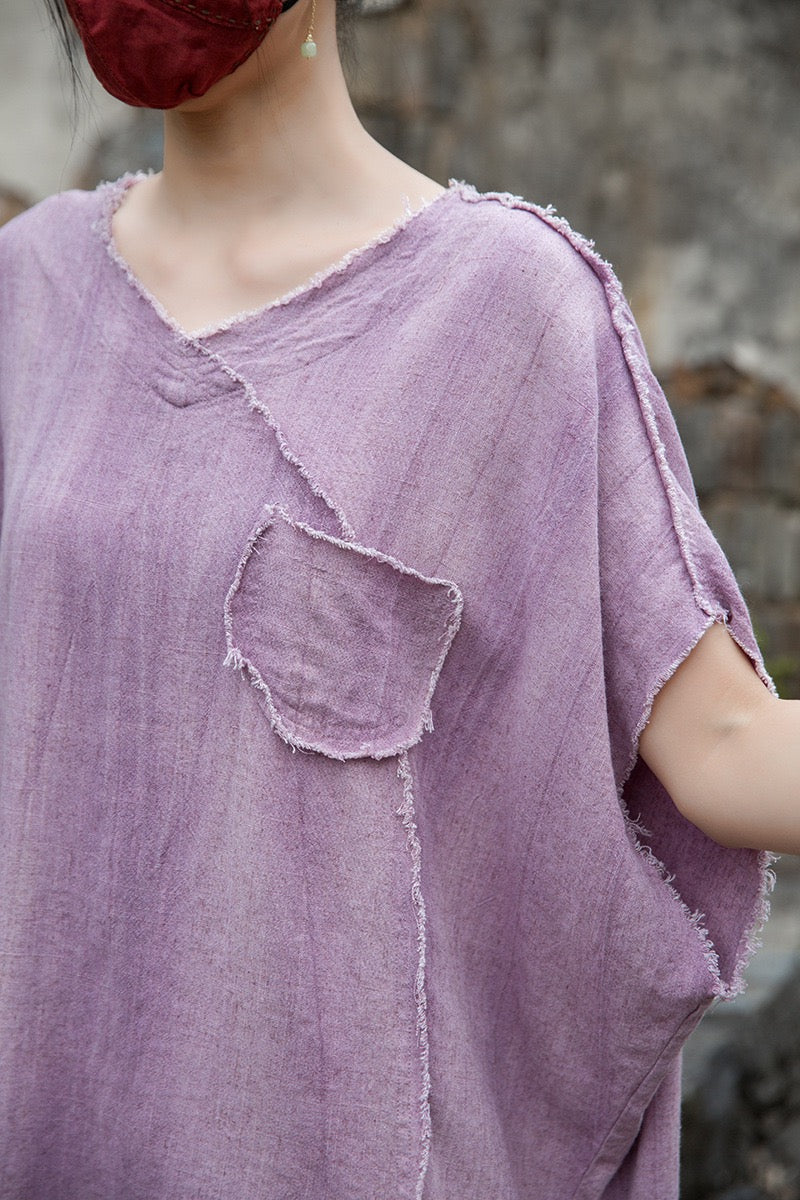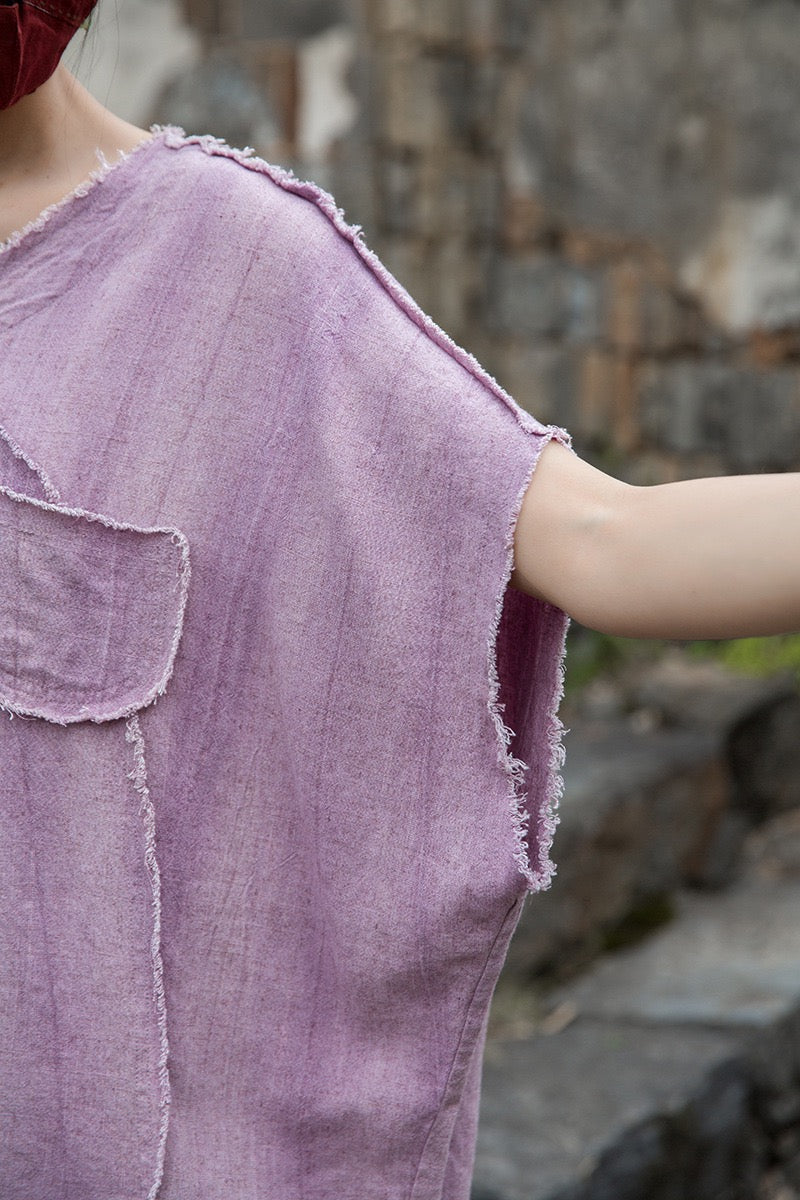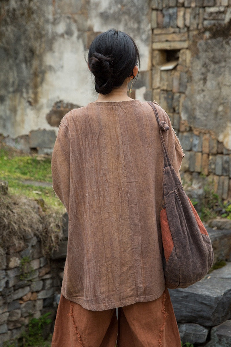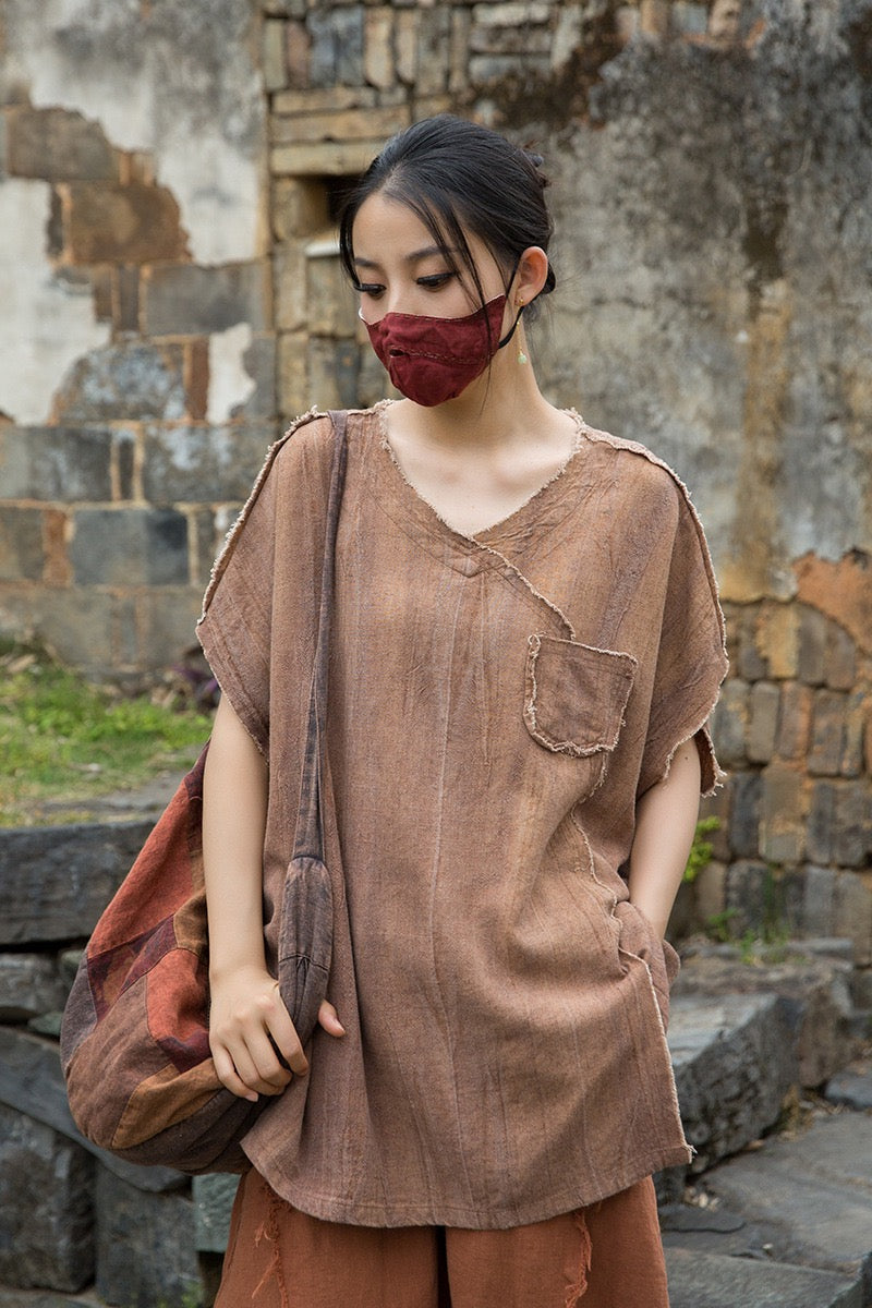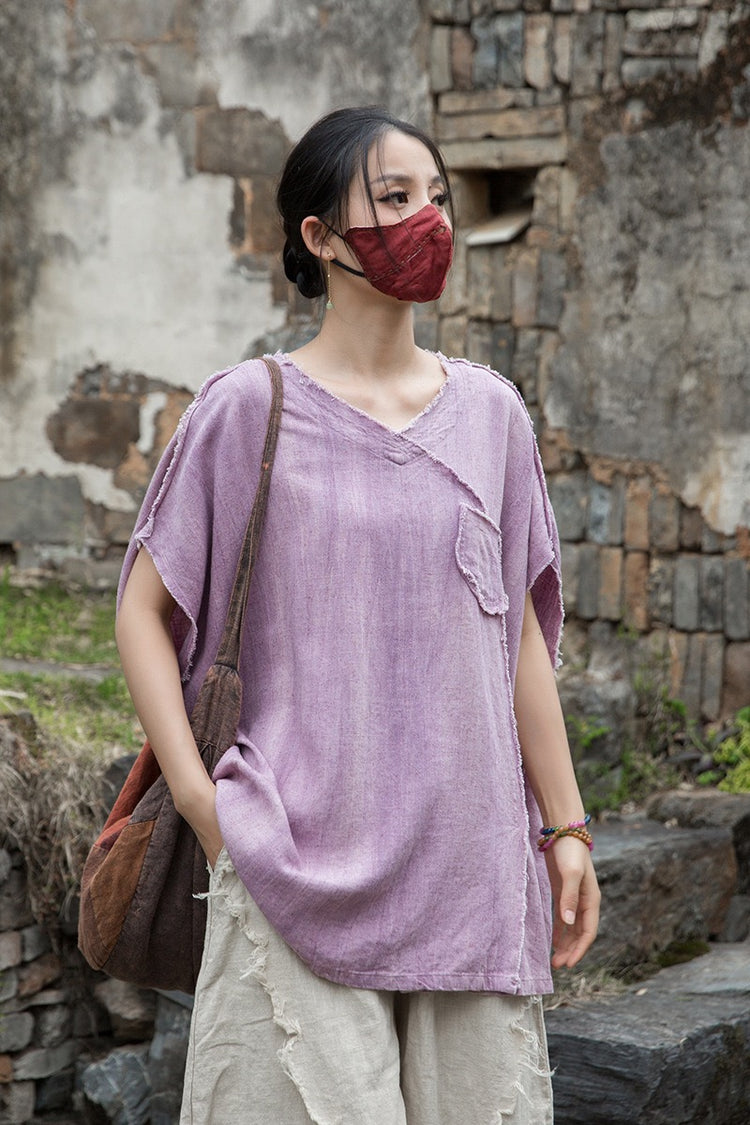 A sacred garment for the woman who walks between worlds — this asymmetrical Butterfly Zen tea shirt wraps you in balance and grace. The butterfly sleeves open like petals under the morning sun; as twilight arrives, their bat-winged drape mirrors the quiet mystery of nightfall.