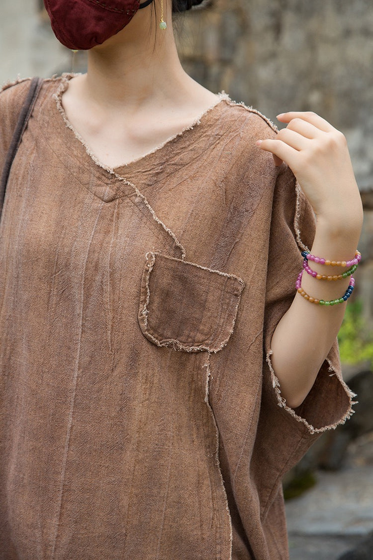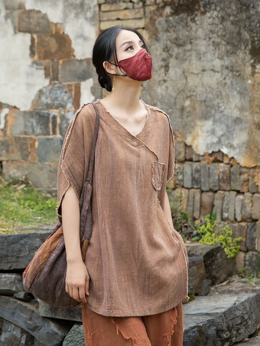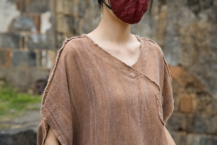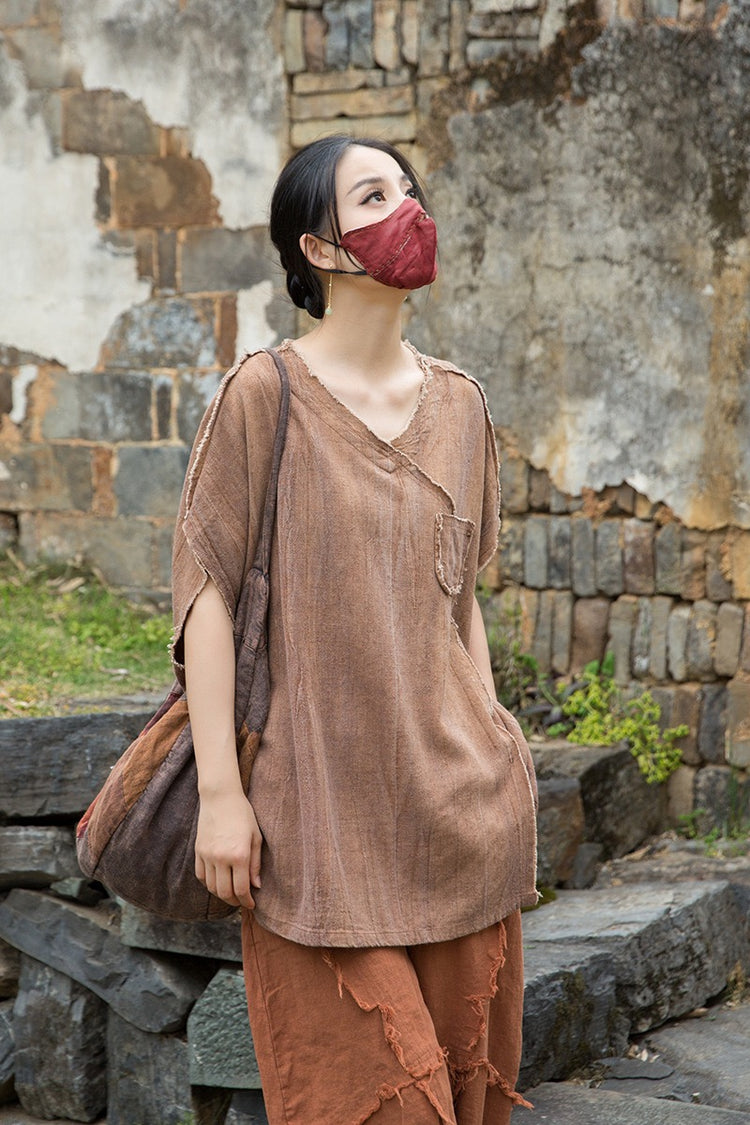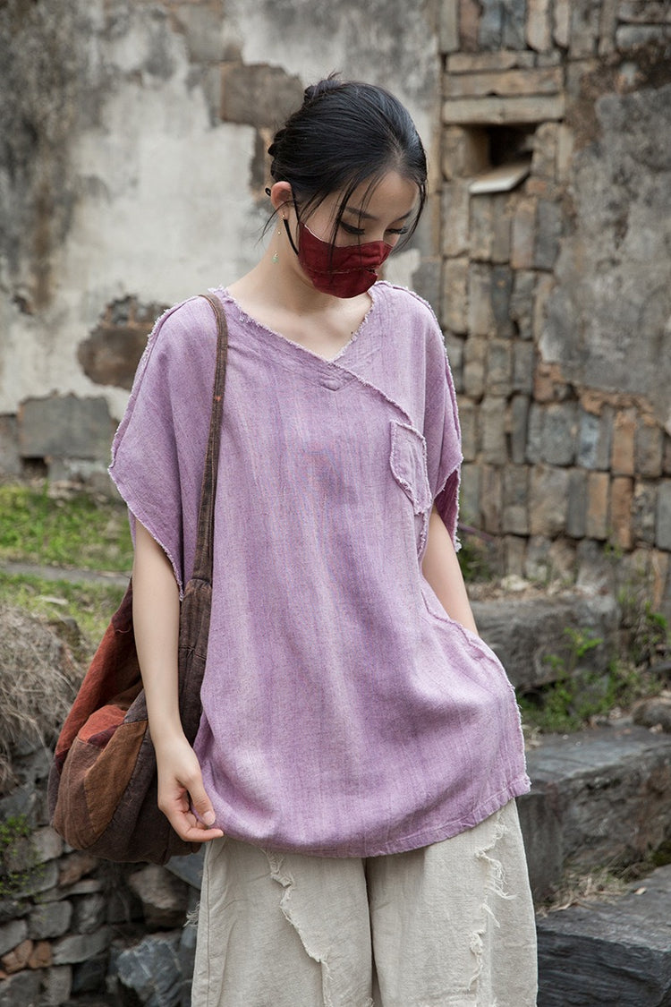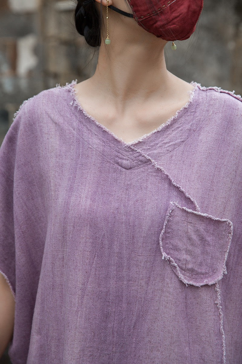 A sacred garment for the woman who walks between worlds — this asymmetrical Butterfly Zen tea shirt wraps you in balance and grace. The butterfly sleeves open like petals under the morning sun; as twilight arrives, their bat-winged drape mirrors the quiet mystery of nightfall.