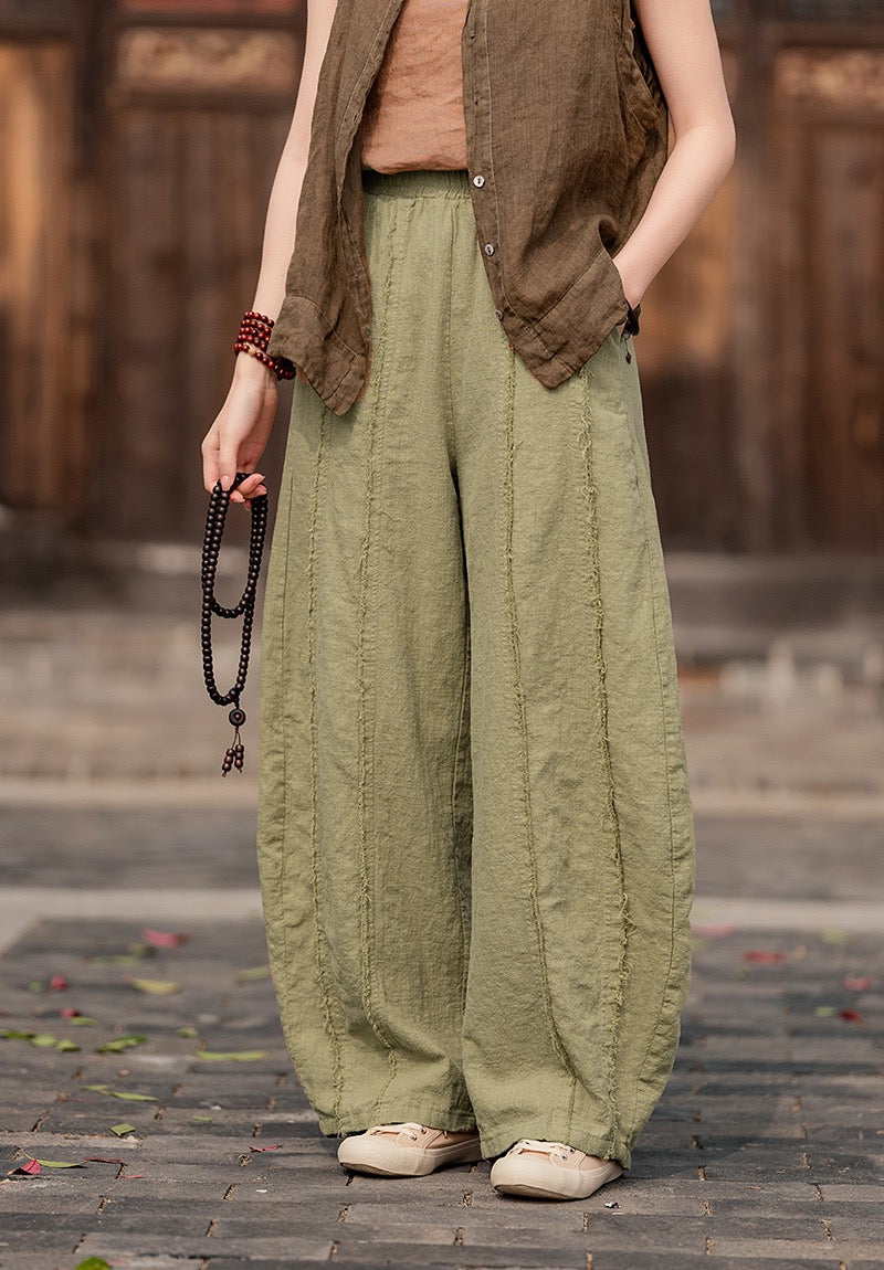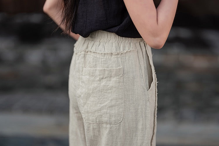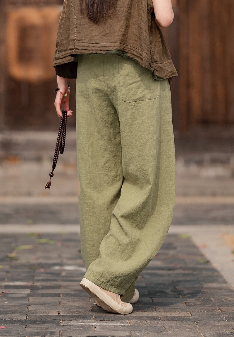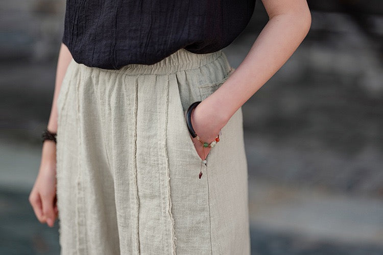 Inspired by the effortless grace of martial artists and the quiet strength of ancient sages, these Scimitar Pants bring the perfect balance of form and function. Crafted from sand-washed Ramie Cotton, they drape effortlessly, allowing free movement for meditation, qigong, Taichi, and the natural rhythm of daily life.