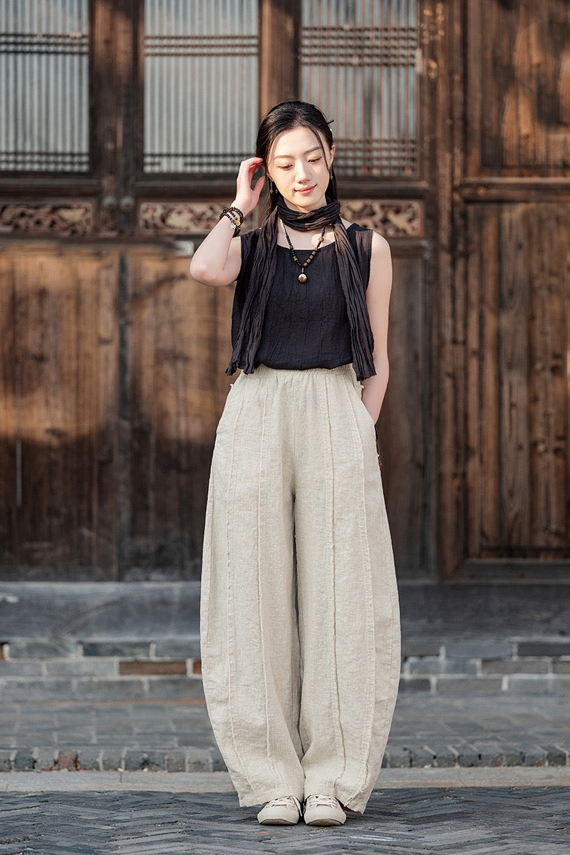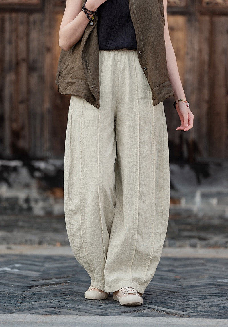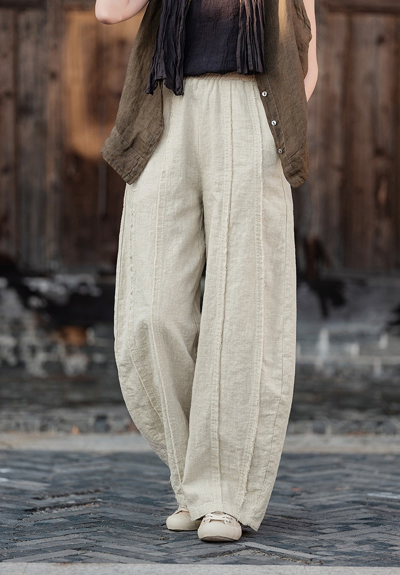 From work to home, tea ceremonies to artistic gatherings, these gender neutral pants flow with you, adapting to your every moment. The pumpkin splicing silhouette gives them a unique, sculpted look—both effortless and bold.