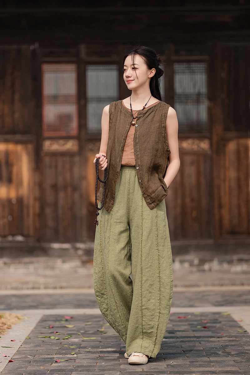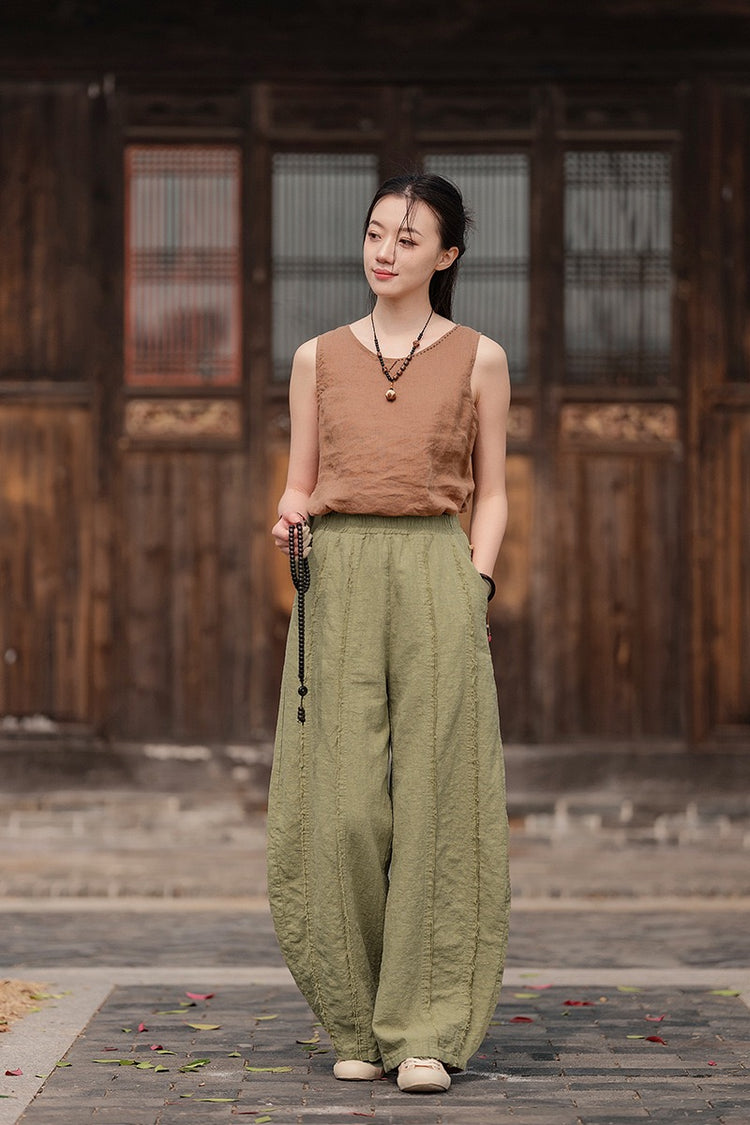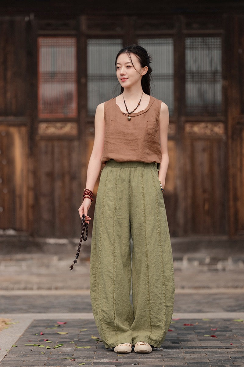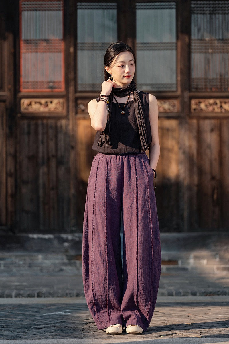 From work to home, tea ceremonies to artistic gatherings, these gender neutral pants flow with you, adapting to your every moment. The pumpkin splicing silhouette gives them a unique, sculpted look—both effortless and bold.