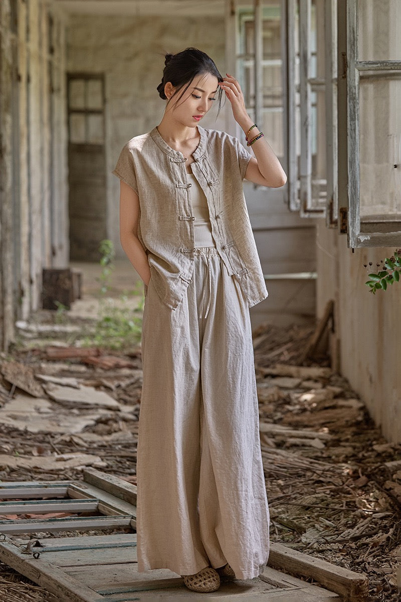 🌬️ Wide-leg floor length that glides like incense smoke over tea floors, or across city stones.