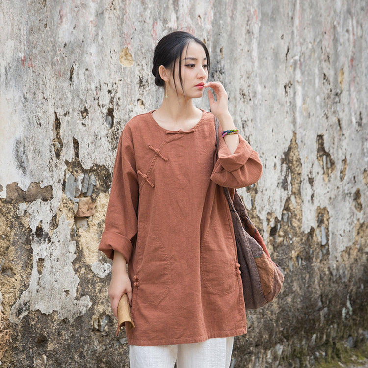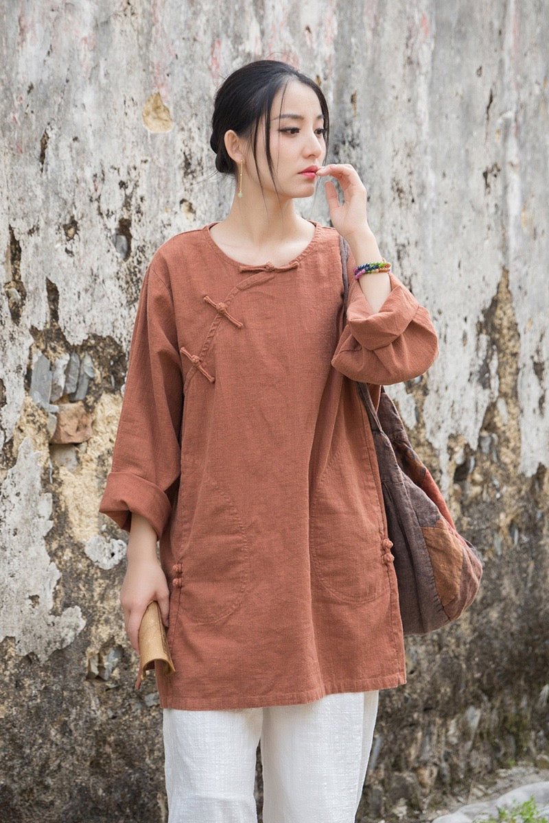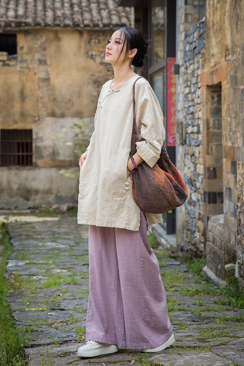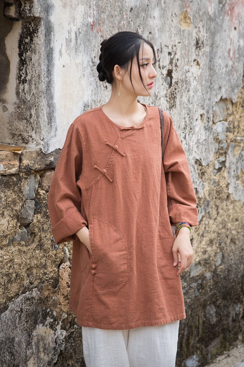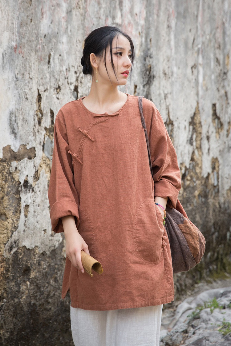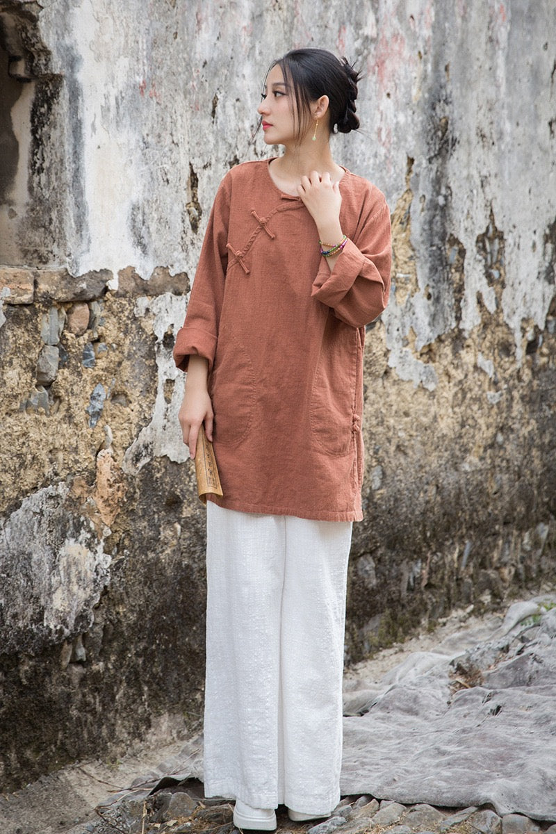 Introducing the Heaven & Earth Qigong Top — sand-washed ramie cotton, softened by time and the Tao. Flow freely in this loose, artistic silhouette with raglan sleeves and 3 buttons representing the cosmic Trinity: Heaven, Earth, and You.