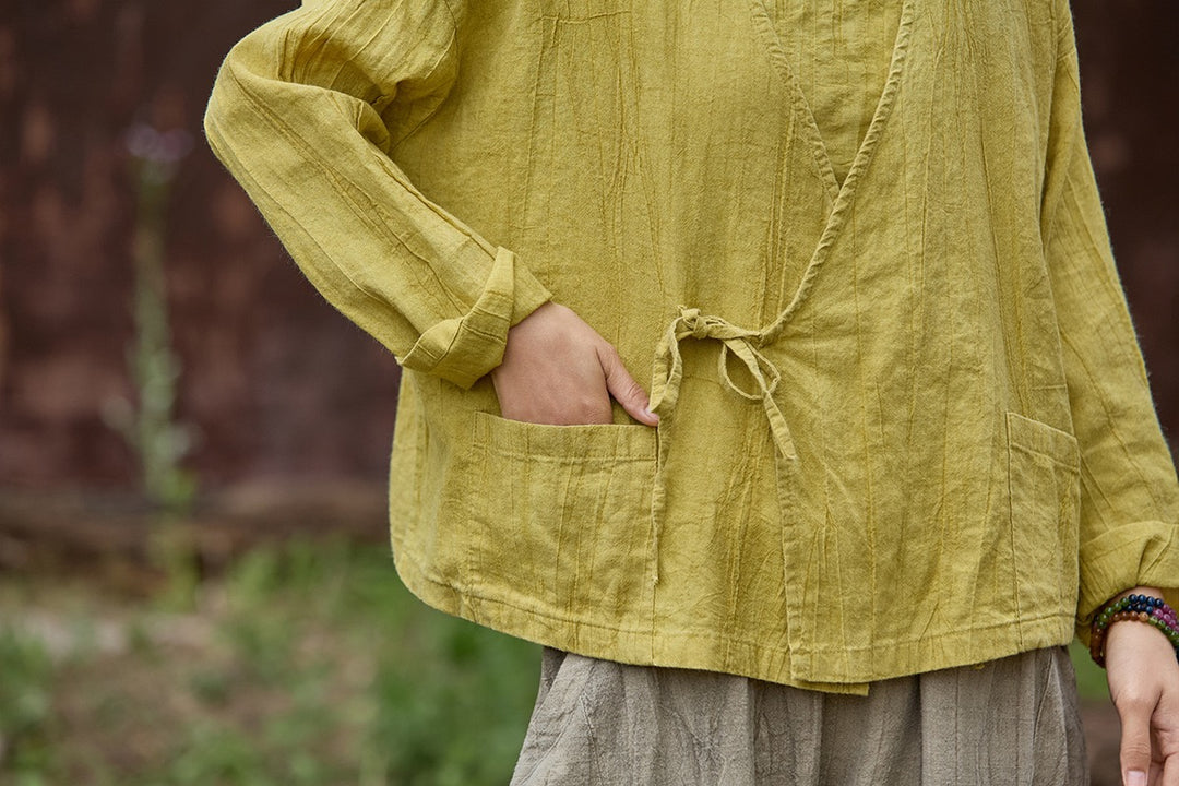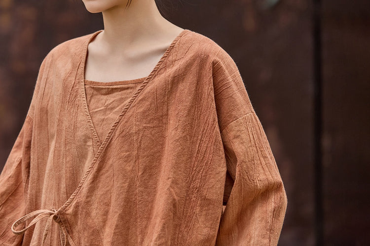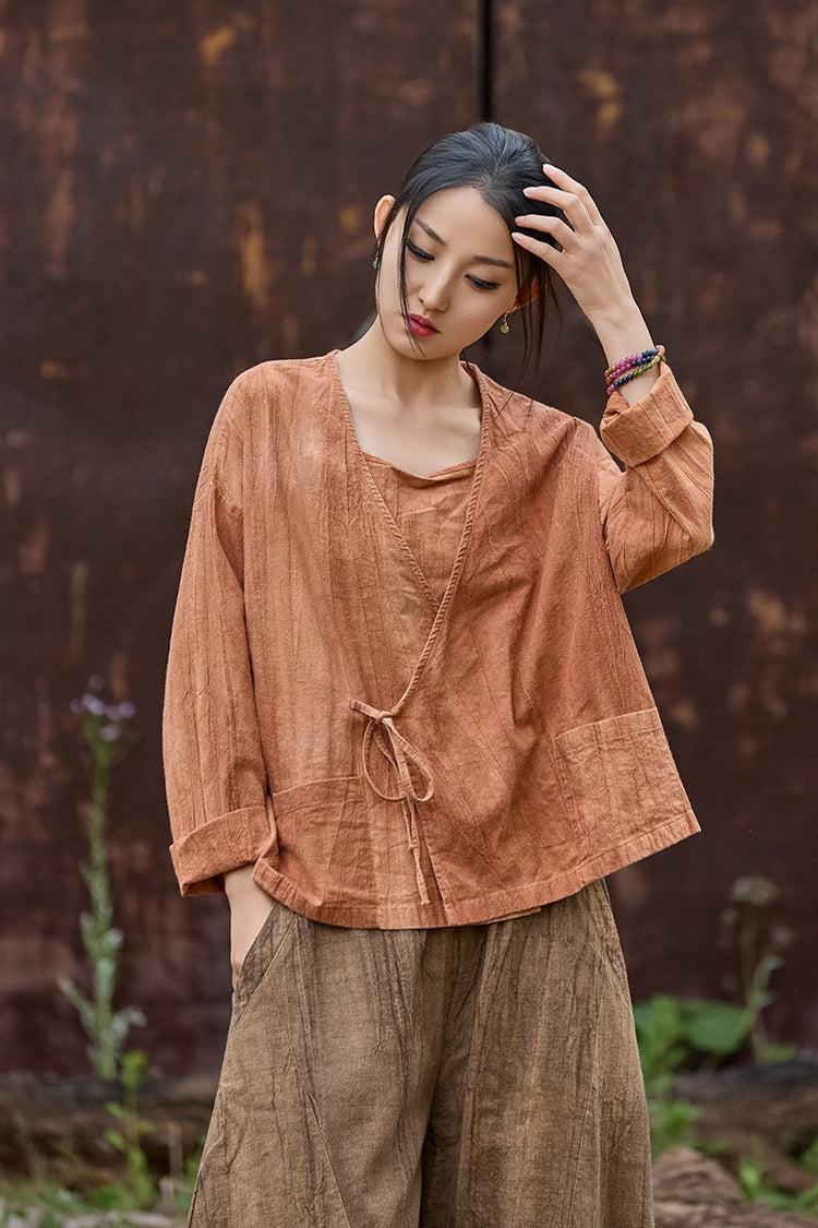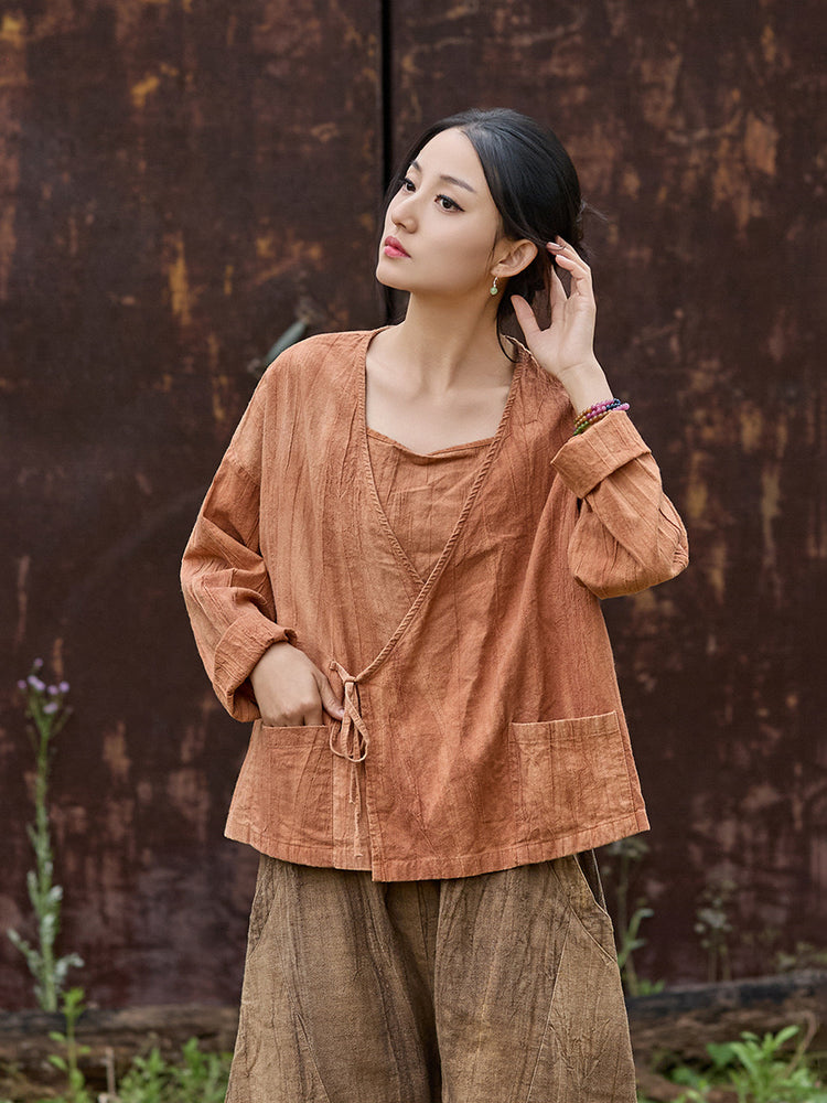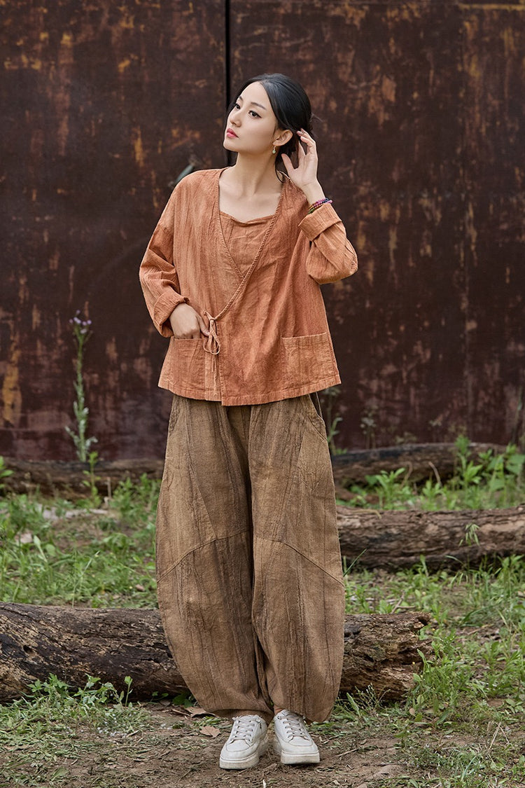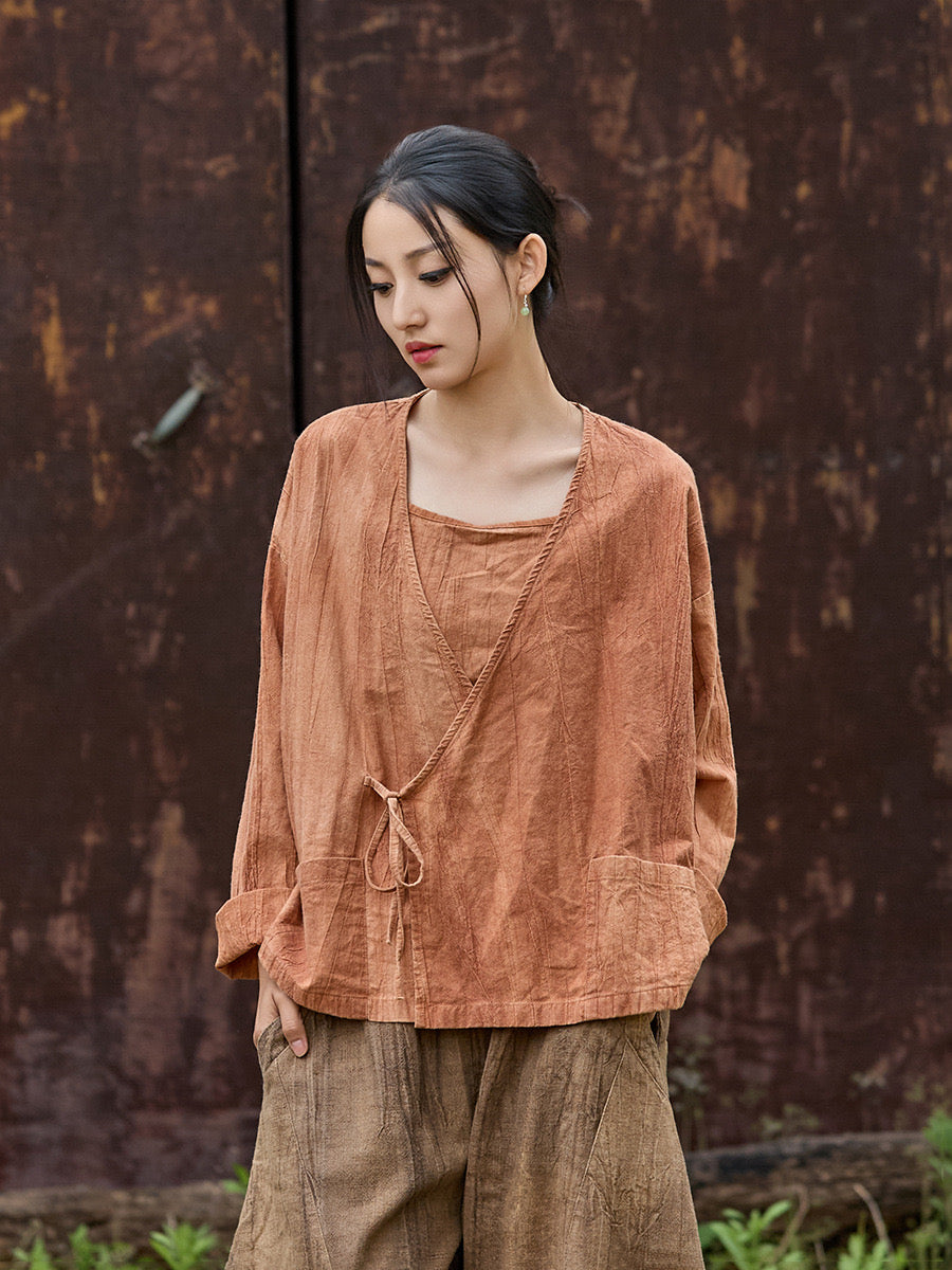 🧵 Made from ramie cotton, sand-washed and tie-dyed by hand, each piece carries the essence of water, earth, and time. The lace-up closure lets you adjust the rhythm — cinch when you seek stillness, loosen when you seek flow.