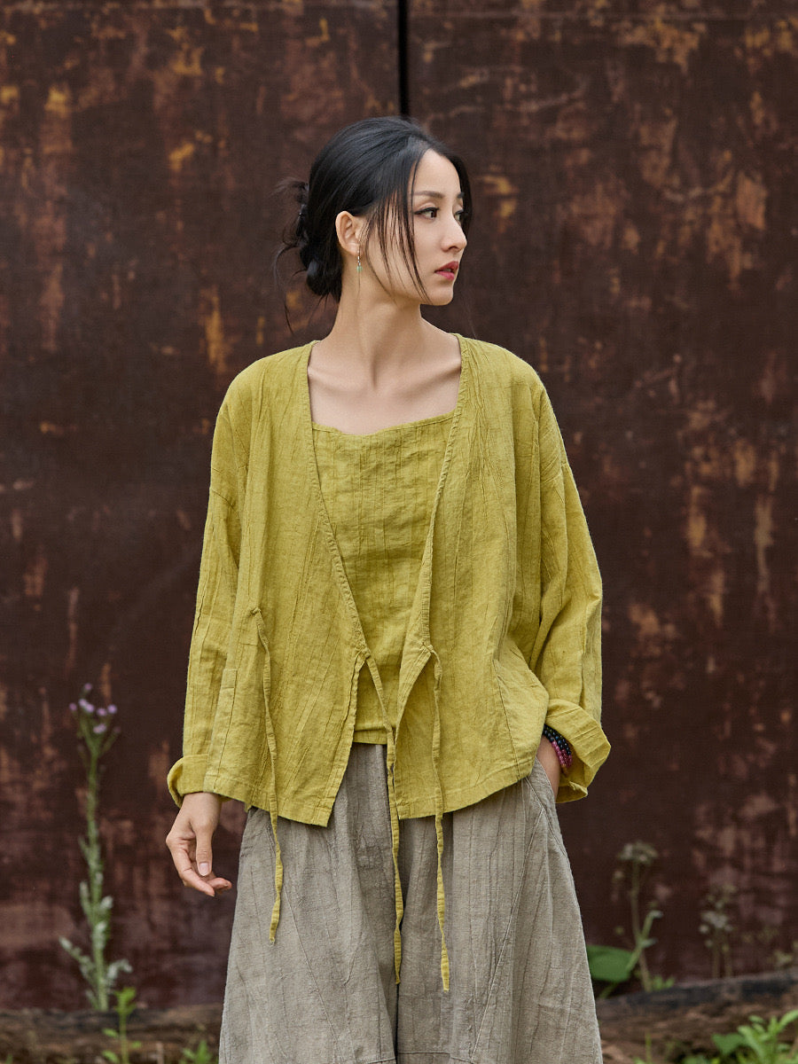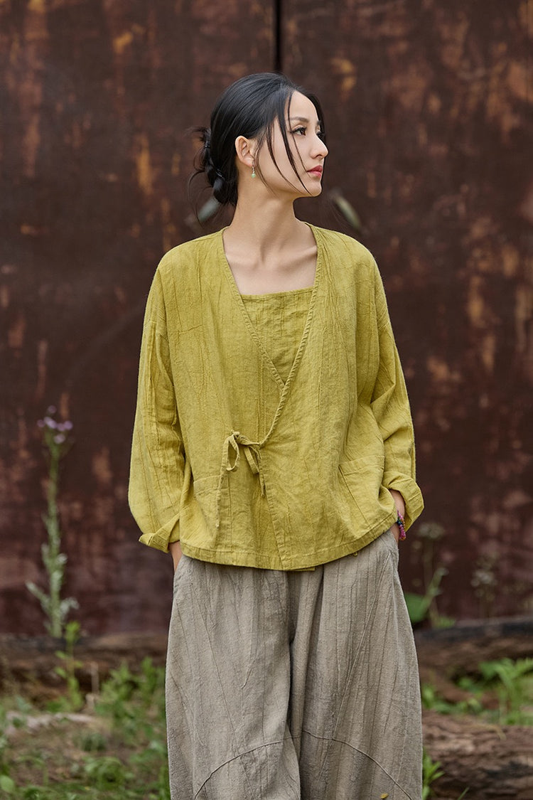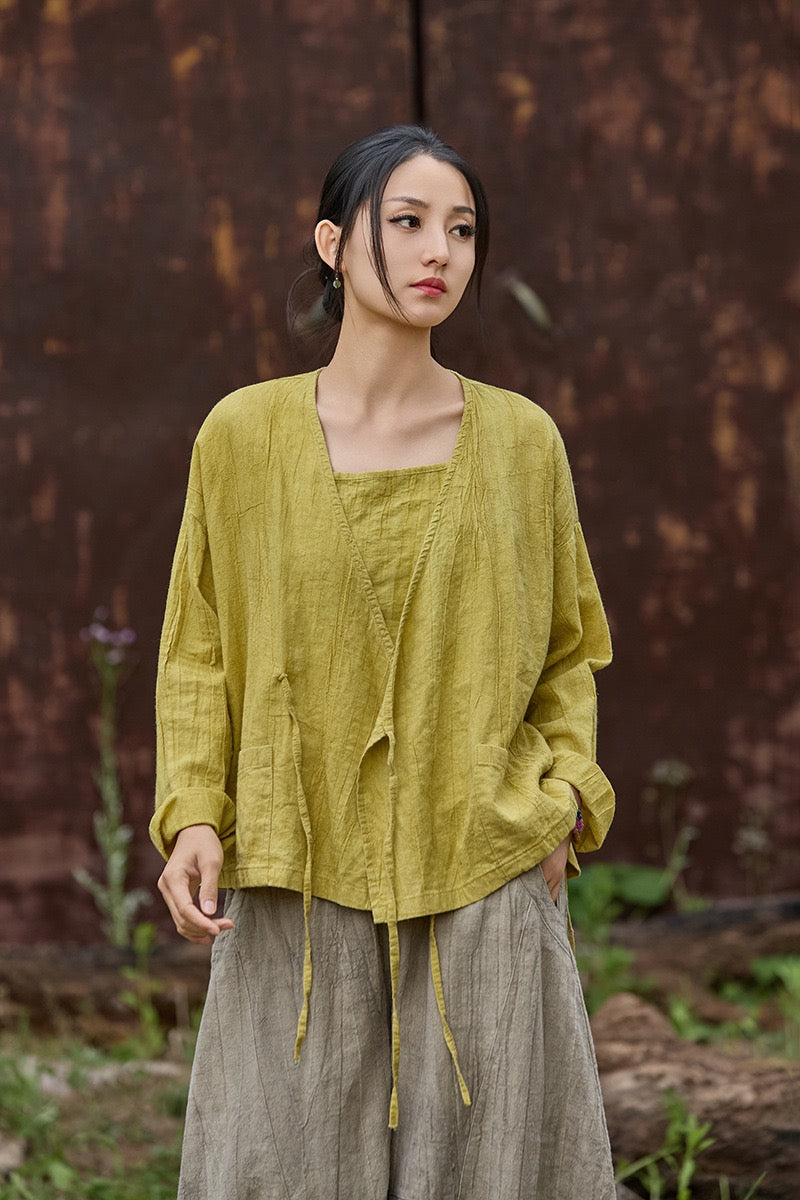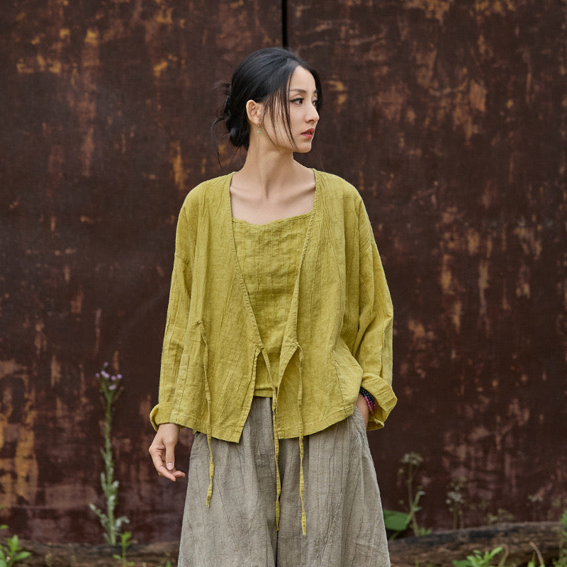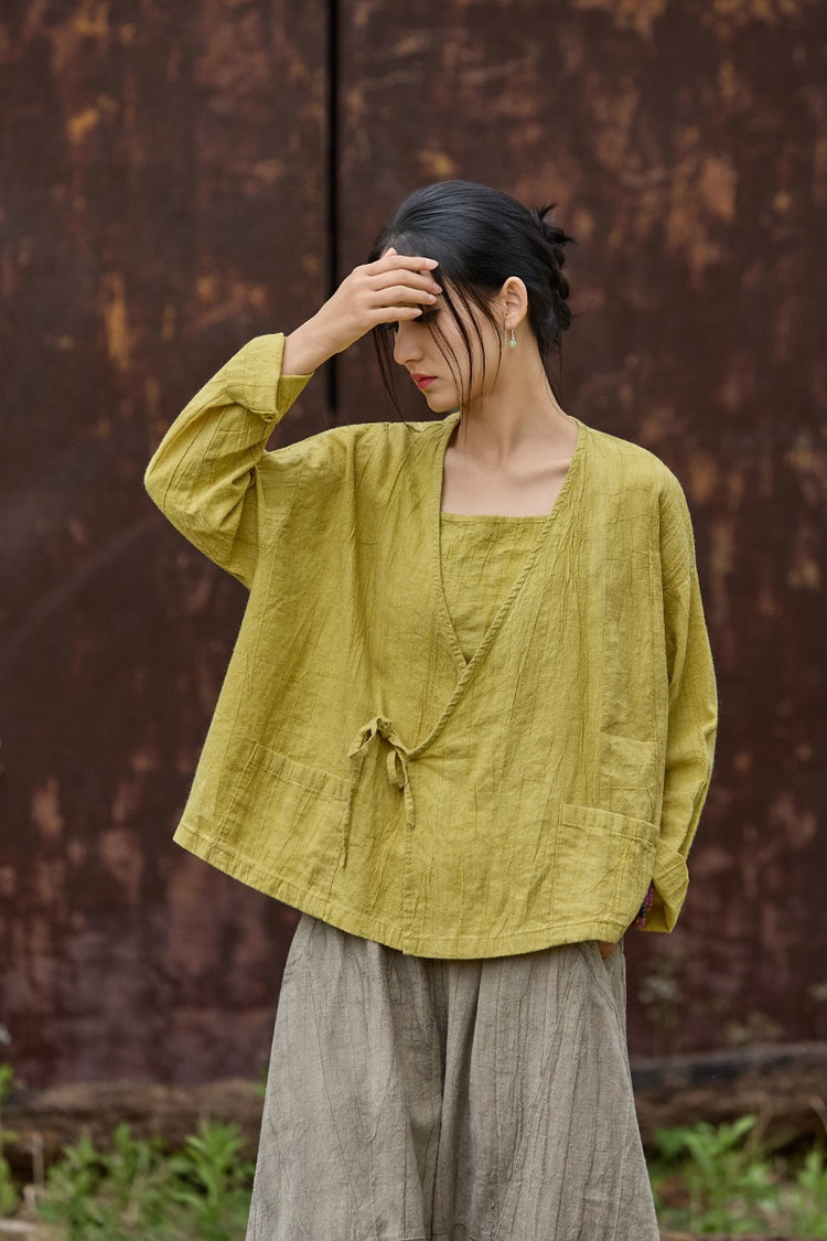 🍋 Tao One Tech™ • Sunveil Lace-Up Kimono Jacket • Ramie Cotton