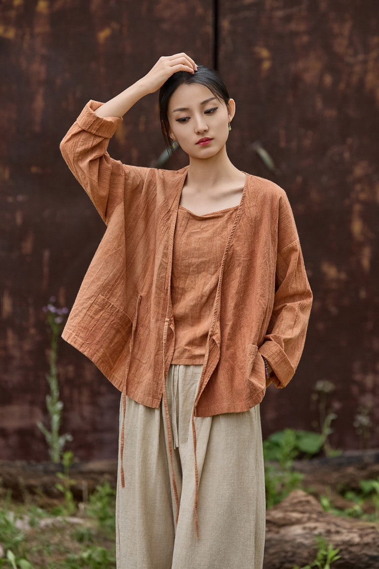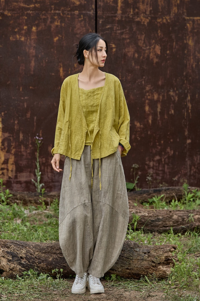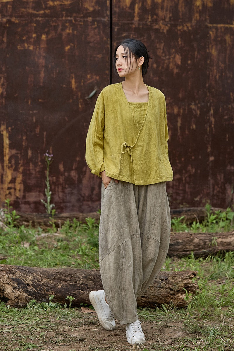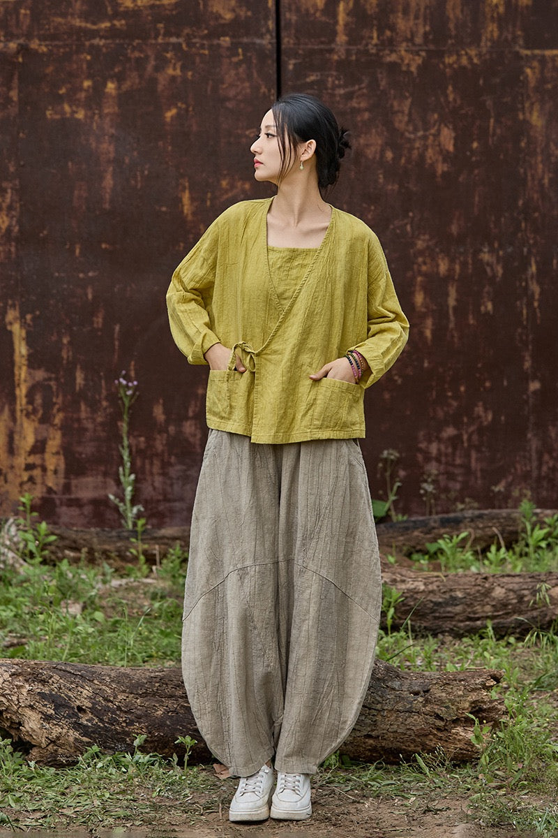 🍋 Tao One Tech™ • Sunveil Lace-Up Kimono Jacket • Ramie Cotton