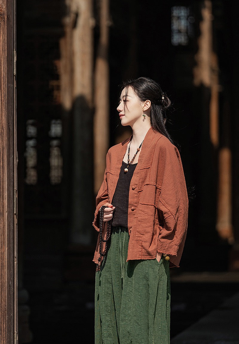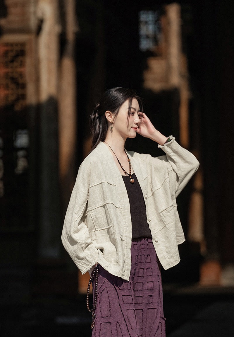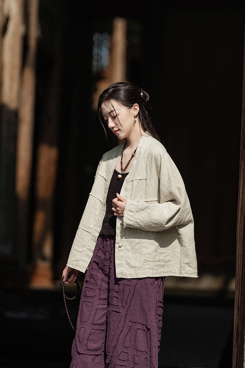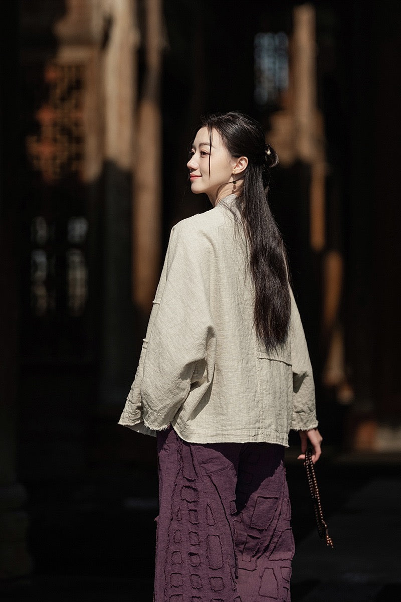 • Brushed Sand-Washed Ramie Cotton – As textured as ancient scrolls, worn by time, soft as whispers of wisdom.