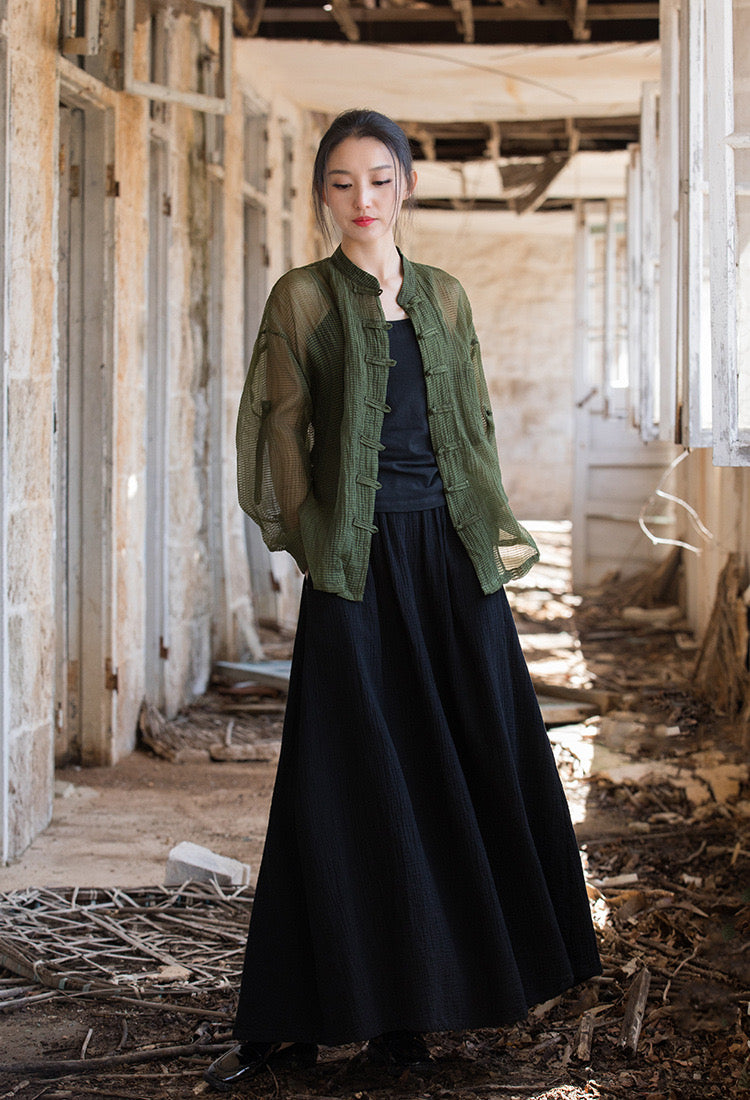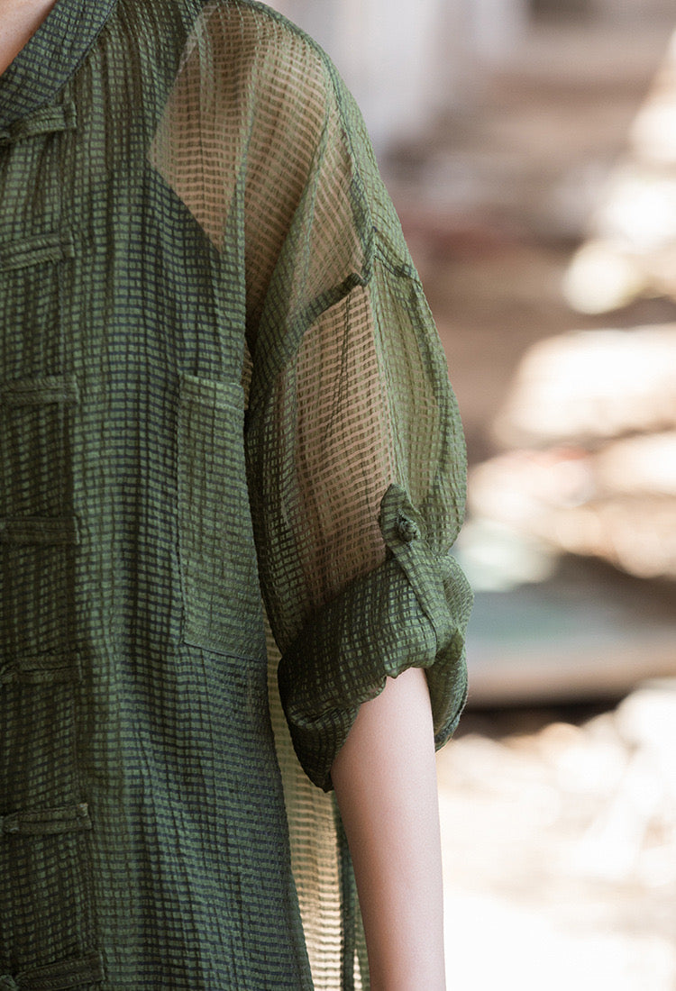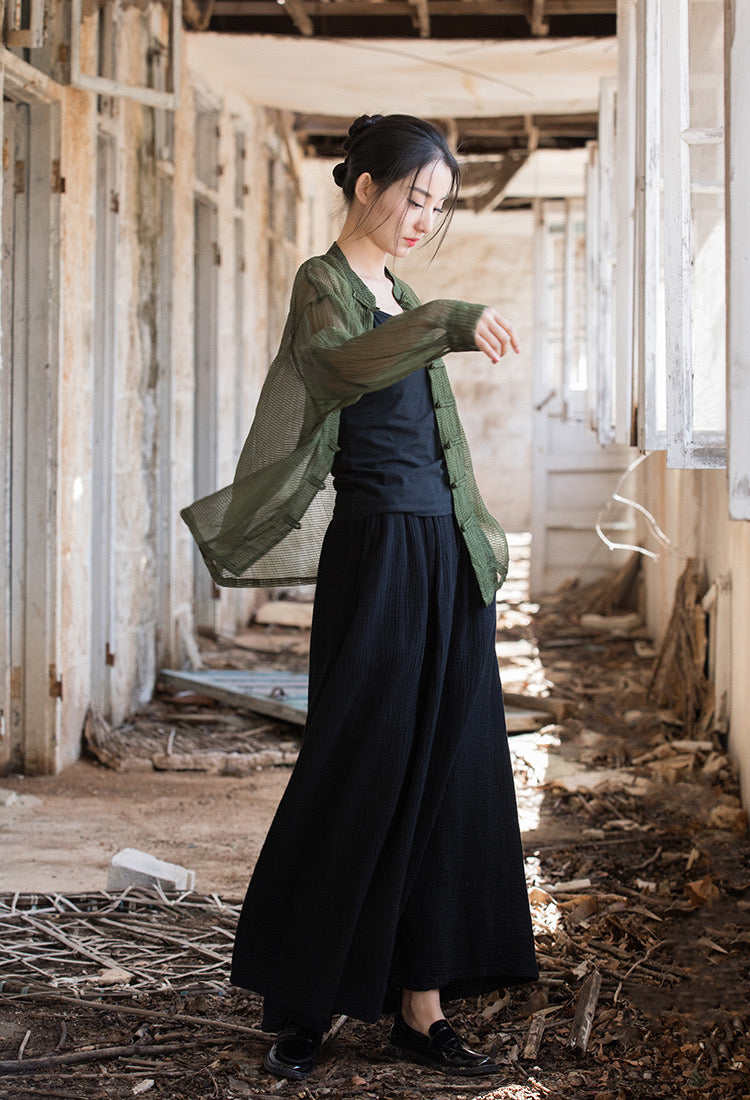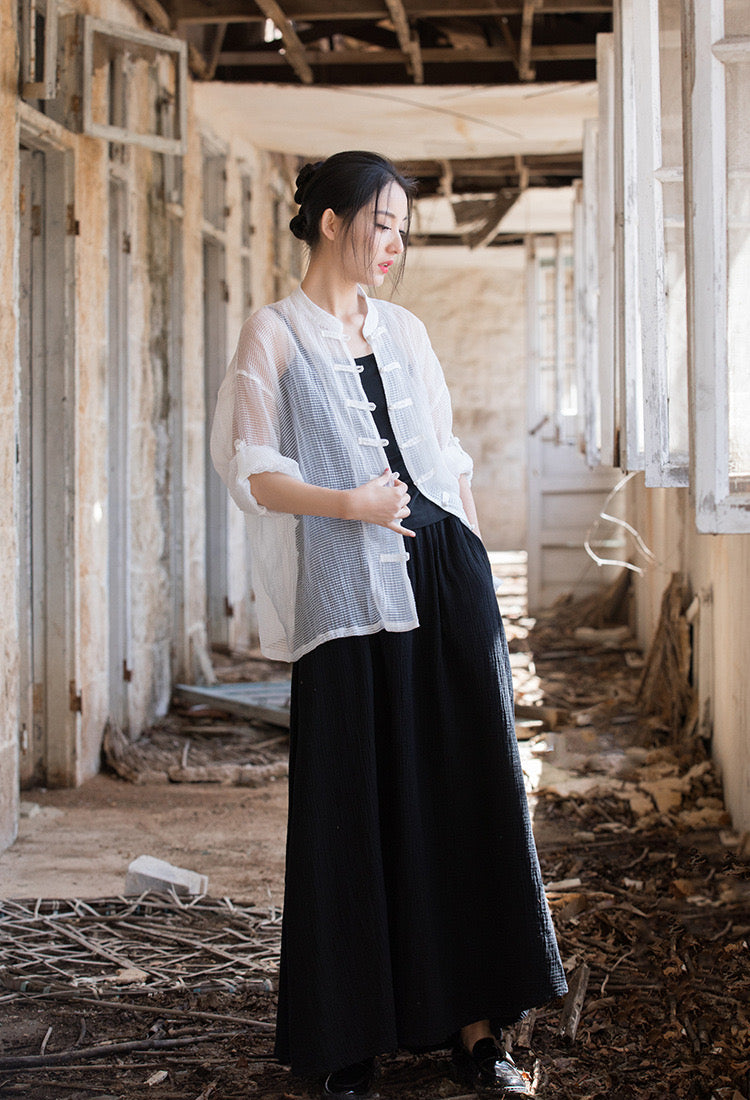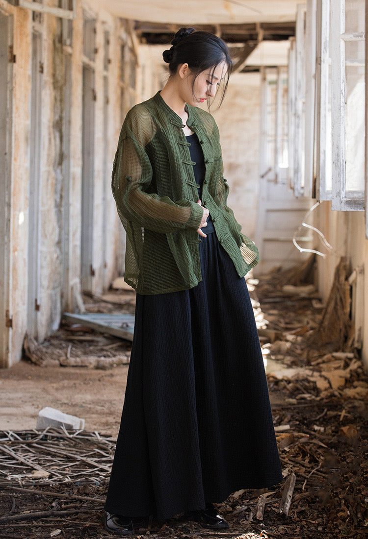 The unique 7 pearl-like gongfu button buckles represents the 7 stars and 5 elements, making this Zen and Dao top a must-have for ultimate energy flow state this summer. Durable, lightweight and stylish — the perfect combination for yin-yang flow and elegance. Available in two colours, jade green and white to uplift your aura and new zen closet.