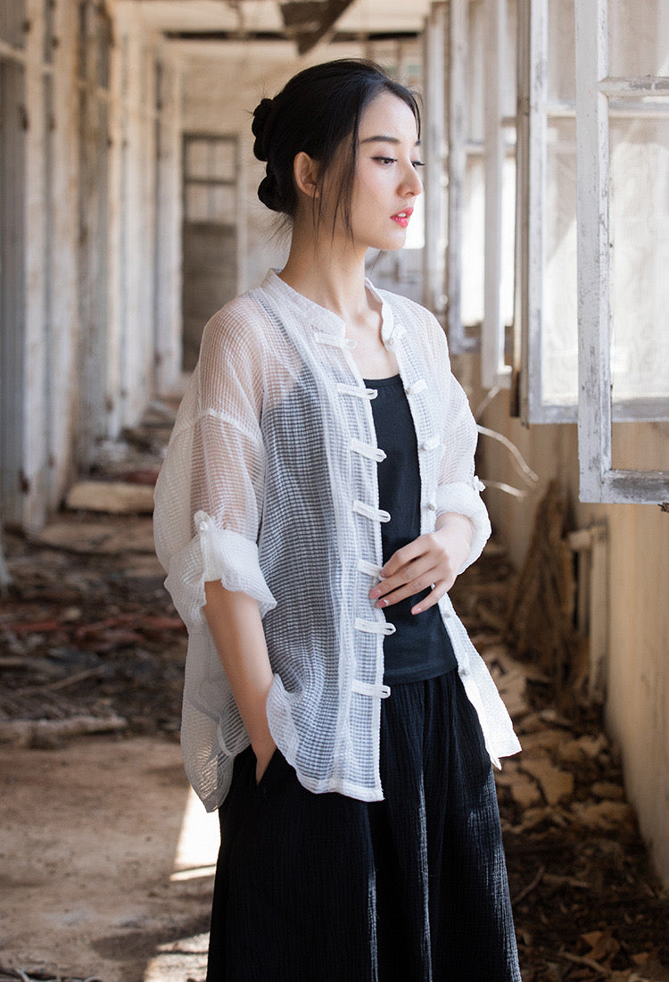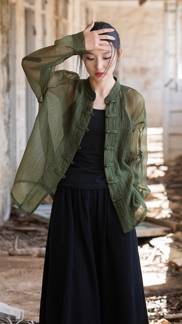 The Dao 道 of Zen Beautification Top and Jacket • Cooling Lyocell Brocade • Translucent • Inner Air Conditioning • Sunscreen Layer • Flowy Qi, Breathable, Durable