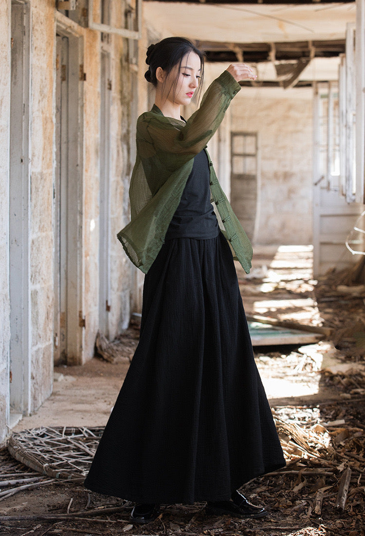 Skirt skirt, move your hips, and dance in the rhythm of heaven and earth. Fluid, flowing, and yielding like water, the Dao 道 of Zen Beautification Top and Jacket is designed to be soft and pliable, yet potent in overcoming rigidity and hardness. The paradox flows in the potency of softness - a strength to be reckoned with. Embrace the effortlessness and surrender to the universe.