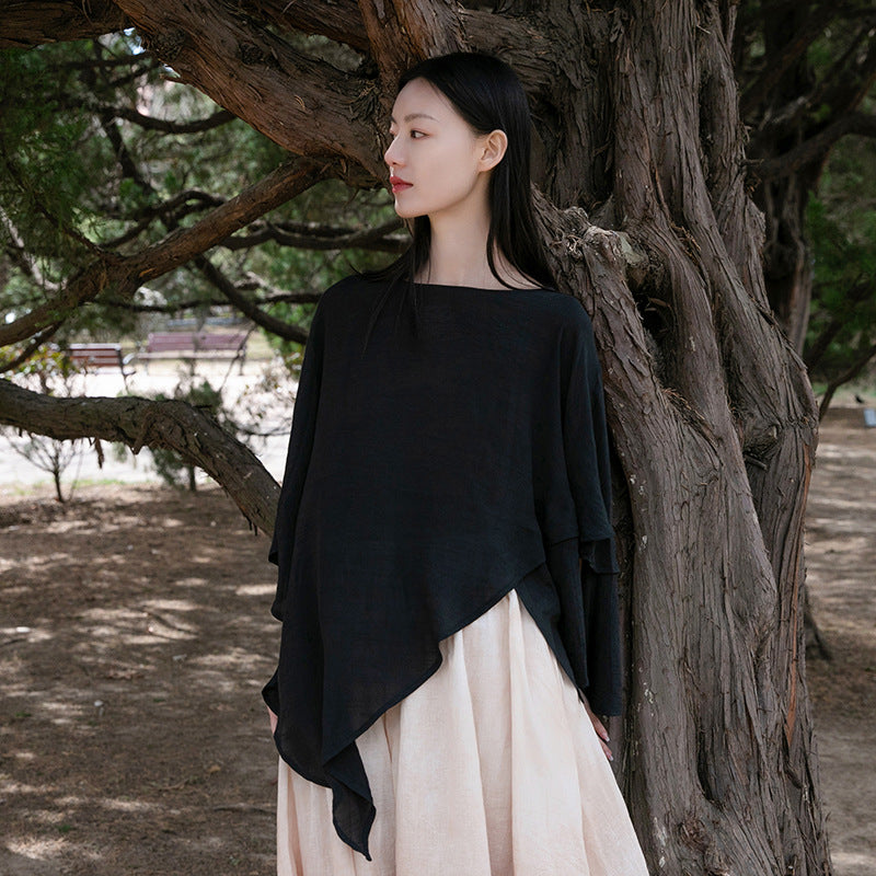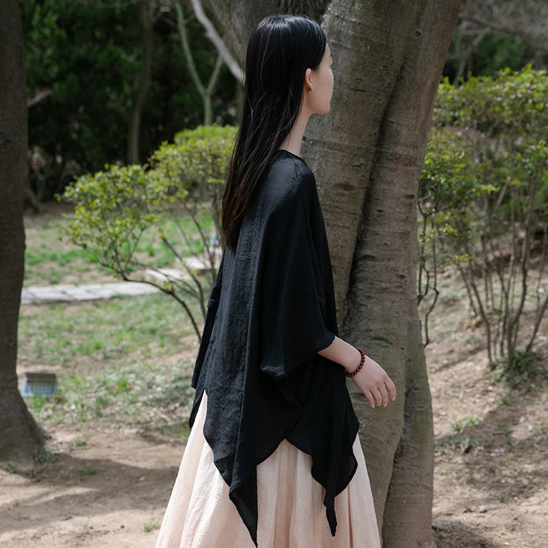The Dao 道 of Zen Flow Cloak • Cooling Tencel Lyocell Slub Blend • Butterfly Sleeves