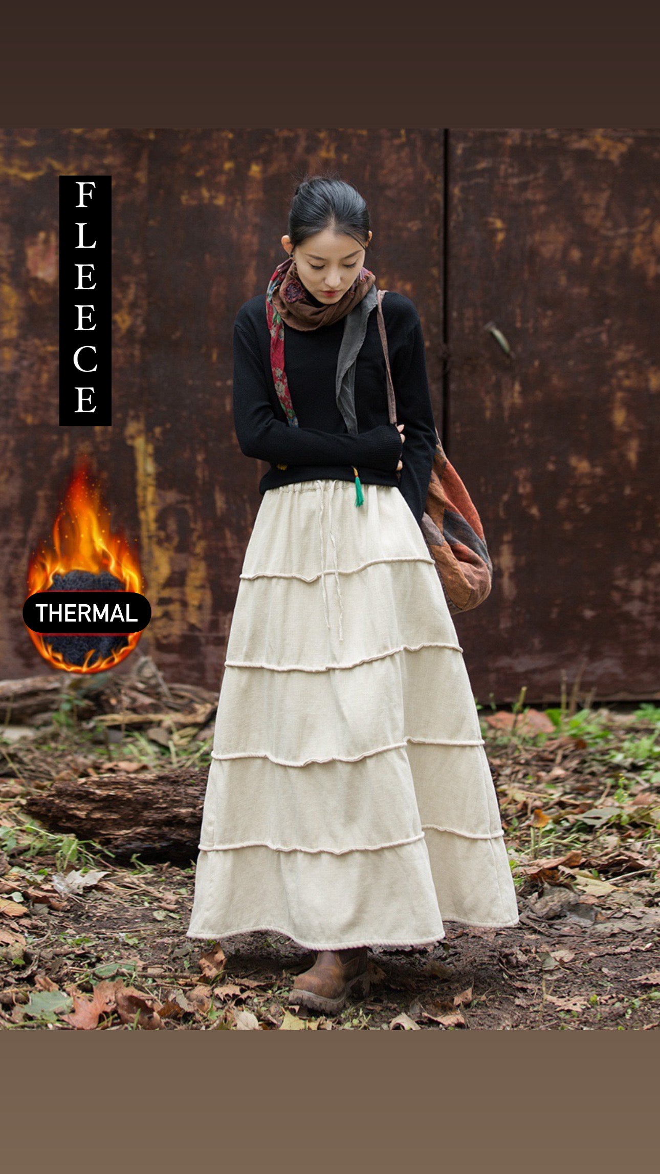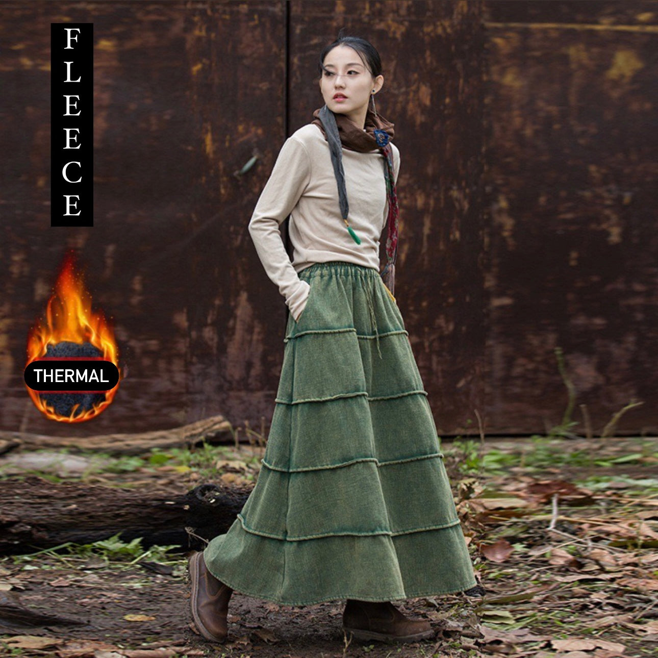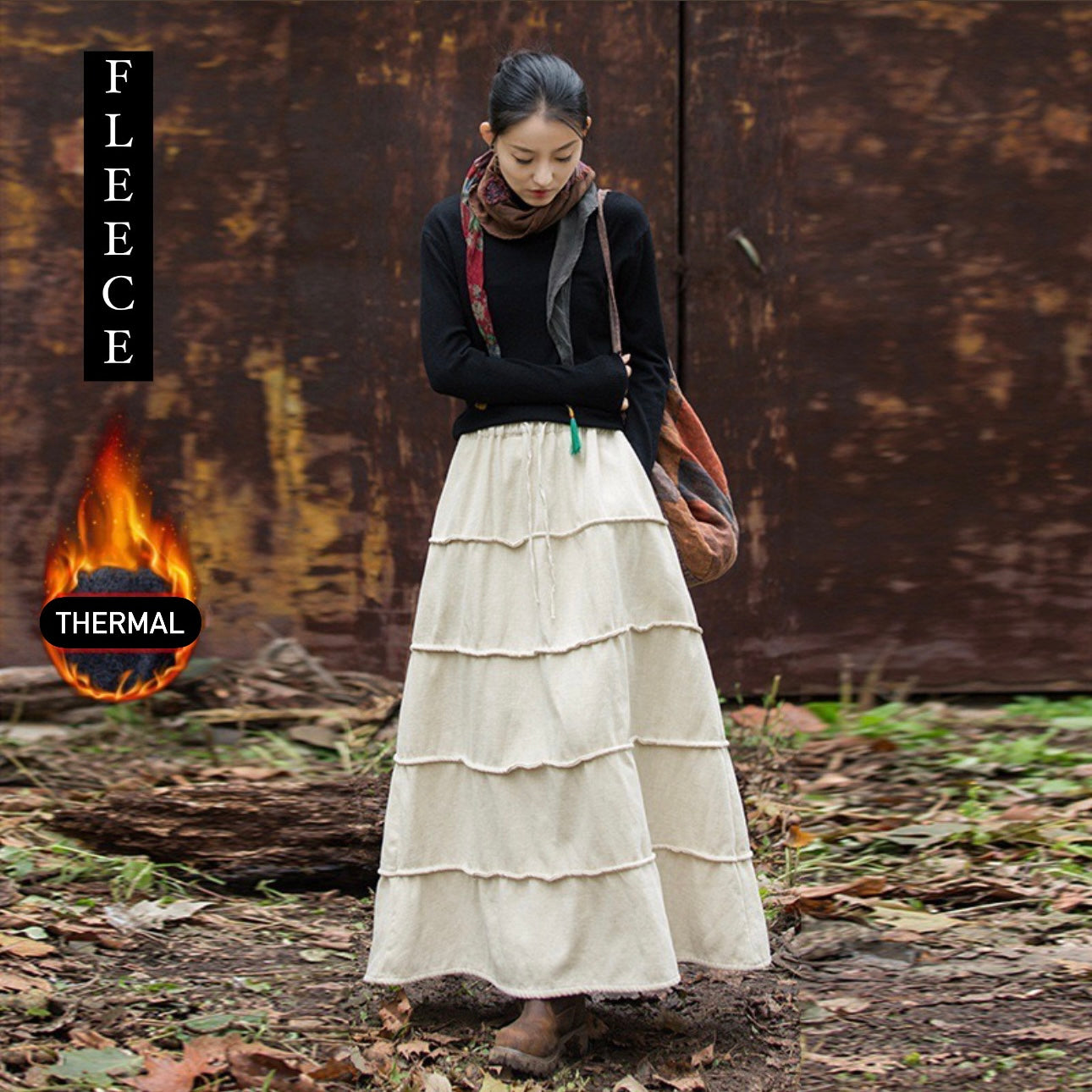 Tao Double Tech™ • Zen A-Line Lotus Skirt • Long Cozy Coverage • Thermal Fleece Velvet Lining • Double-Layers • Tech Pockets • Ramie Cotton