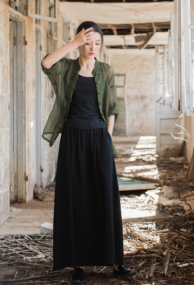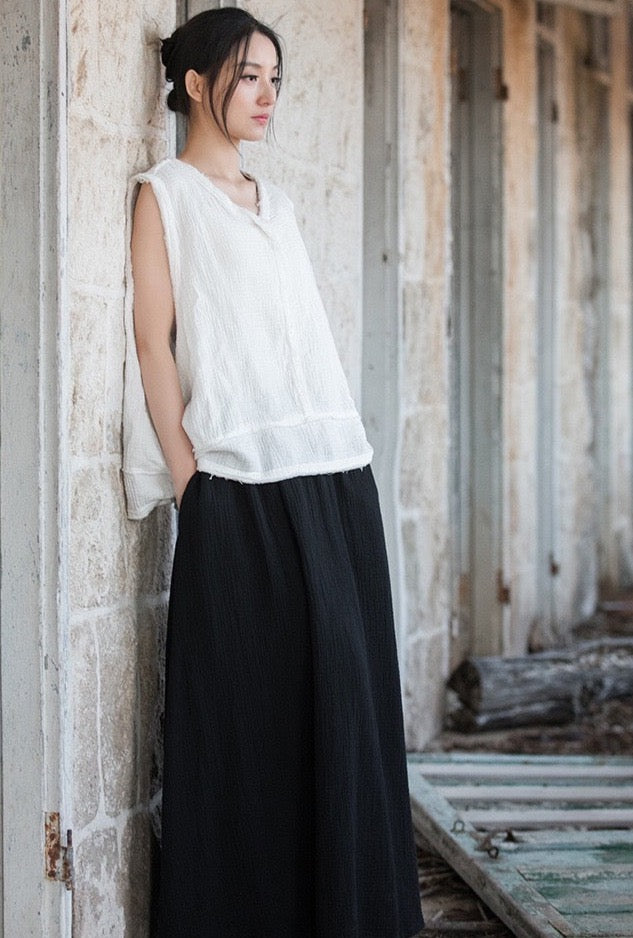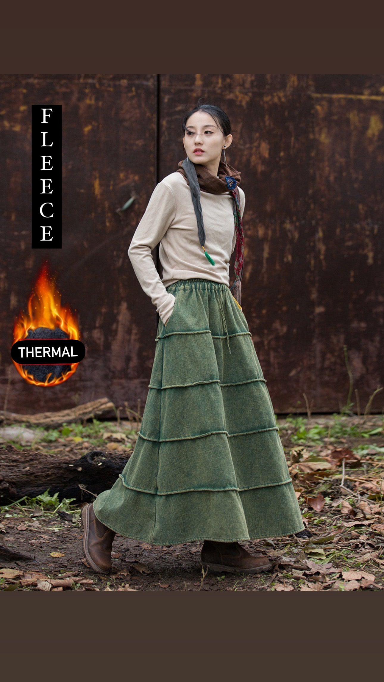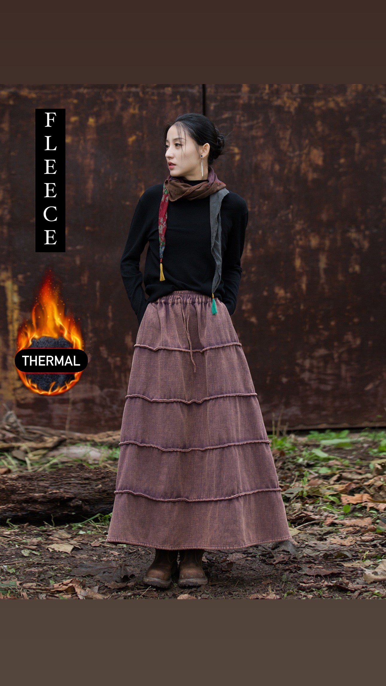 Tao Double Tech™ • Zen A-Line Lotus Skirt • Long Cozy Coverage • Thermal Fleece Velvet Lining • Double-Layers • Tech Pockets • Ramie Cotton