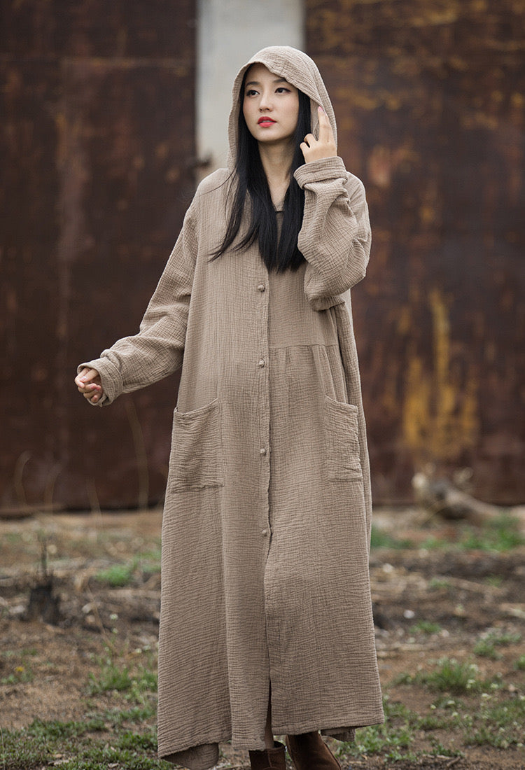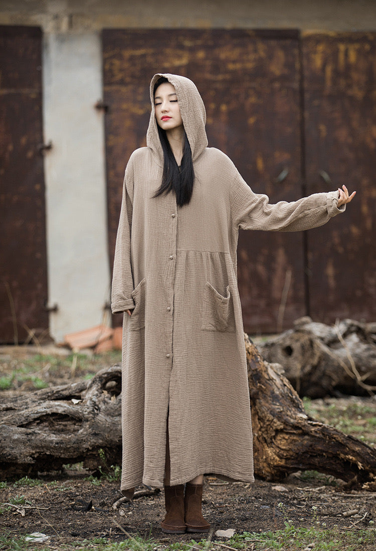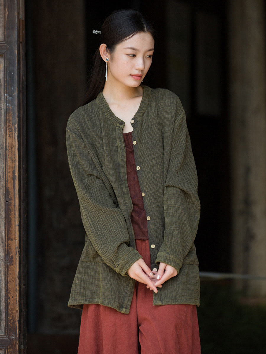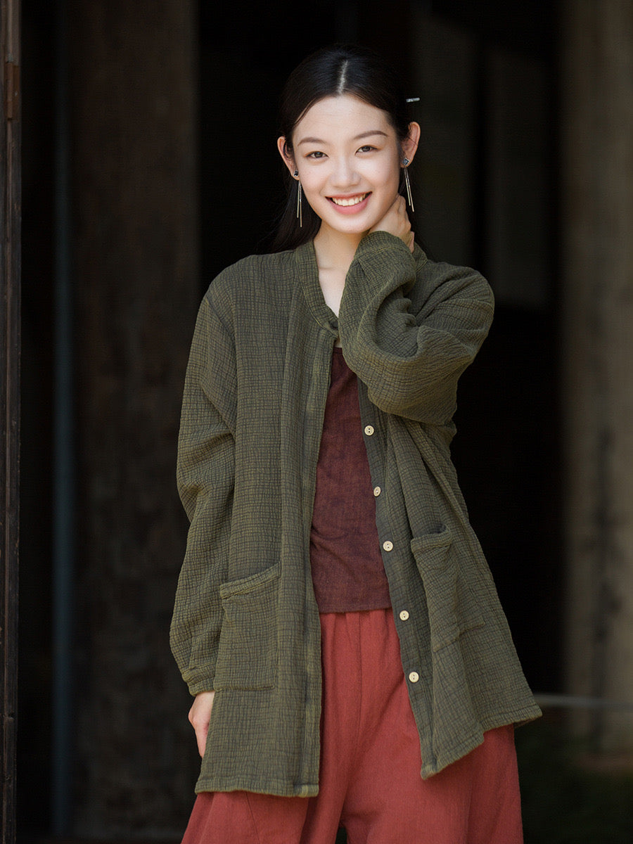 The Dao 道 of Zen Cardigan Jacket • With Hood • Flowy Qi • Double-Layer Cotton • Sand Wash Texture • Breathable yet Warm • Thermal and Wind Qi Sealing • Perfect Temperature