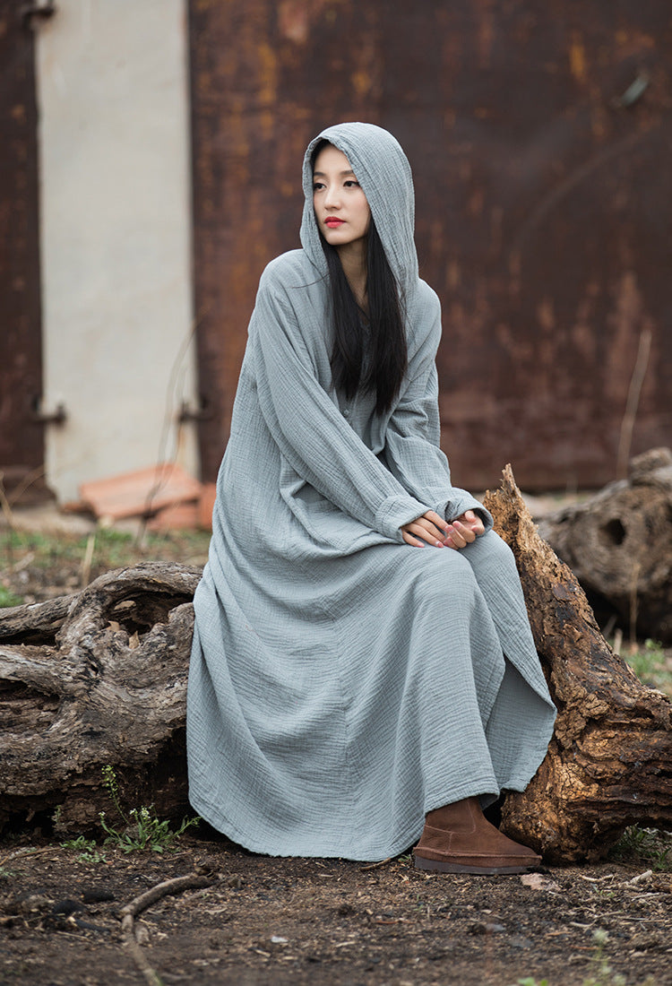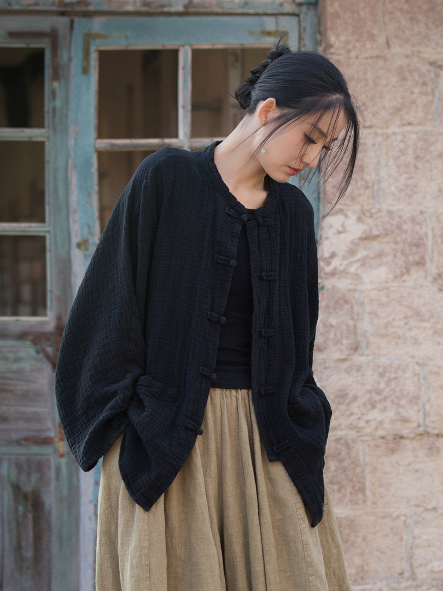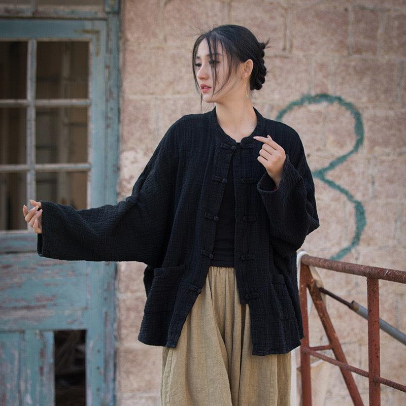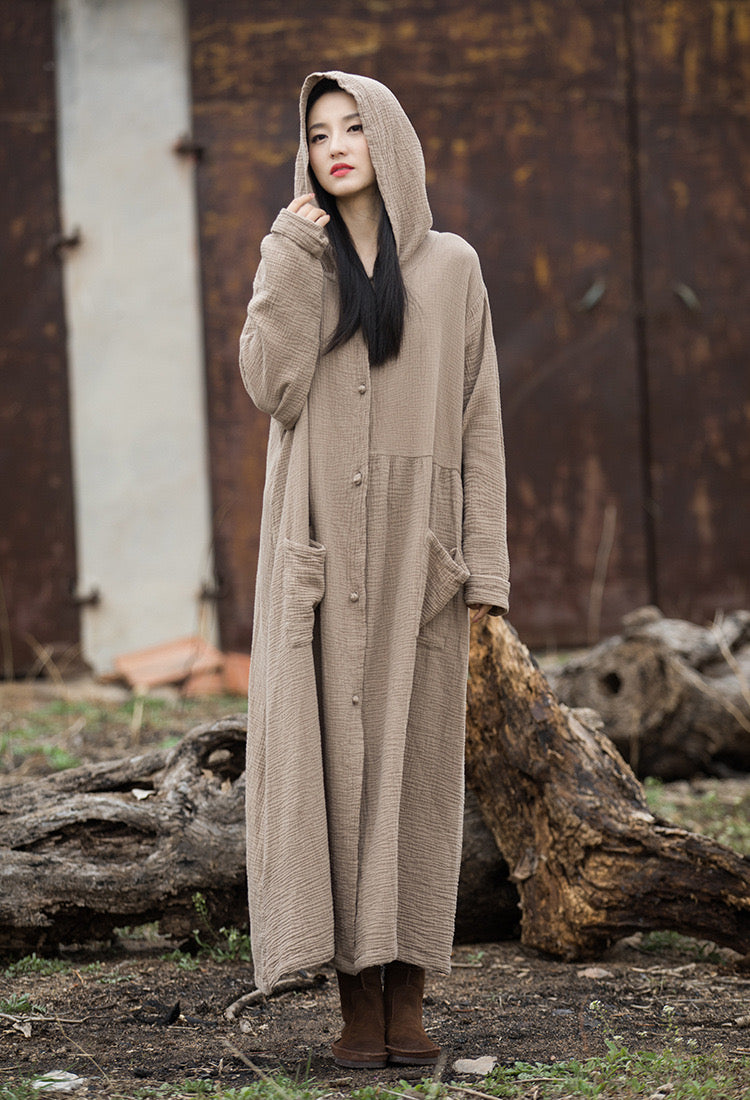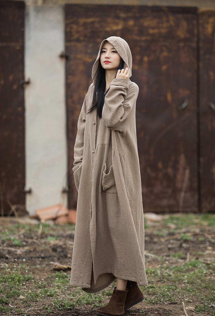 The Dao 道 of Zen Cardigan Jacket • With Hood • Flowy Qi • Double-Layer Cotton • Sand Wash Texture • Breathable yet Warm • Thermal and Wind Qi Sealing • Perfect Temperature
