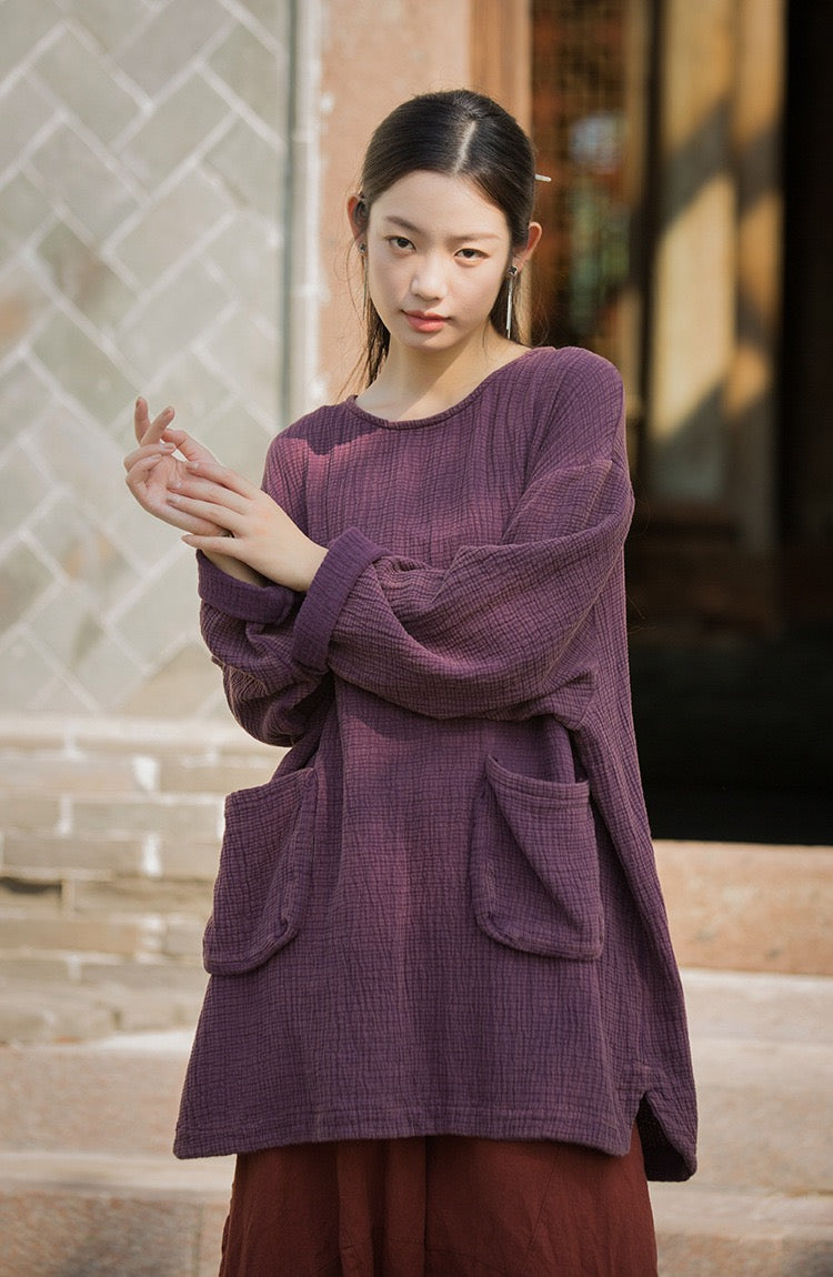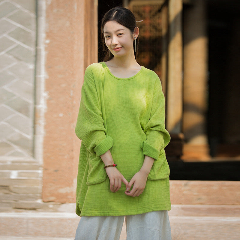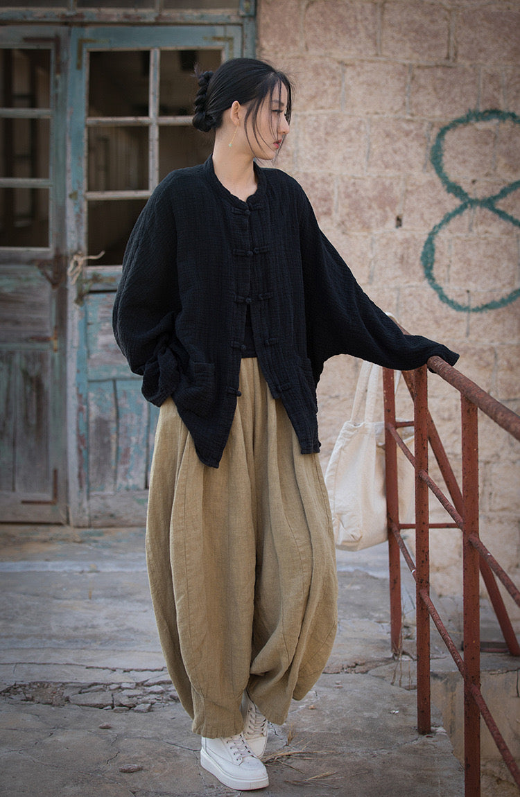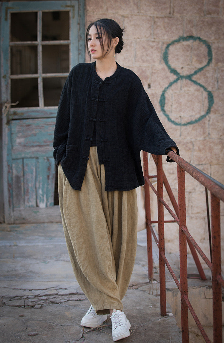 Tao One Tech™ • Flowing Butterfly Sleeve Top • Double-Layer Cotton Linen • Bamboo Texture