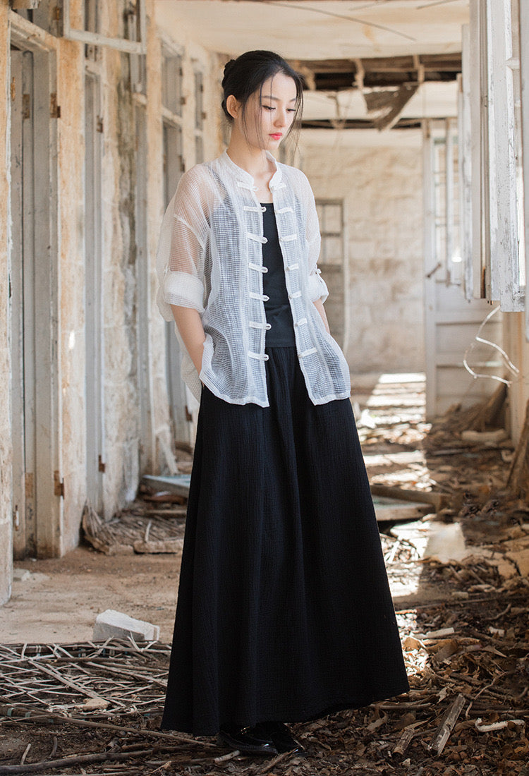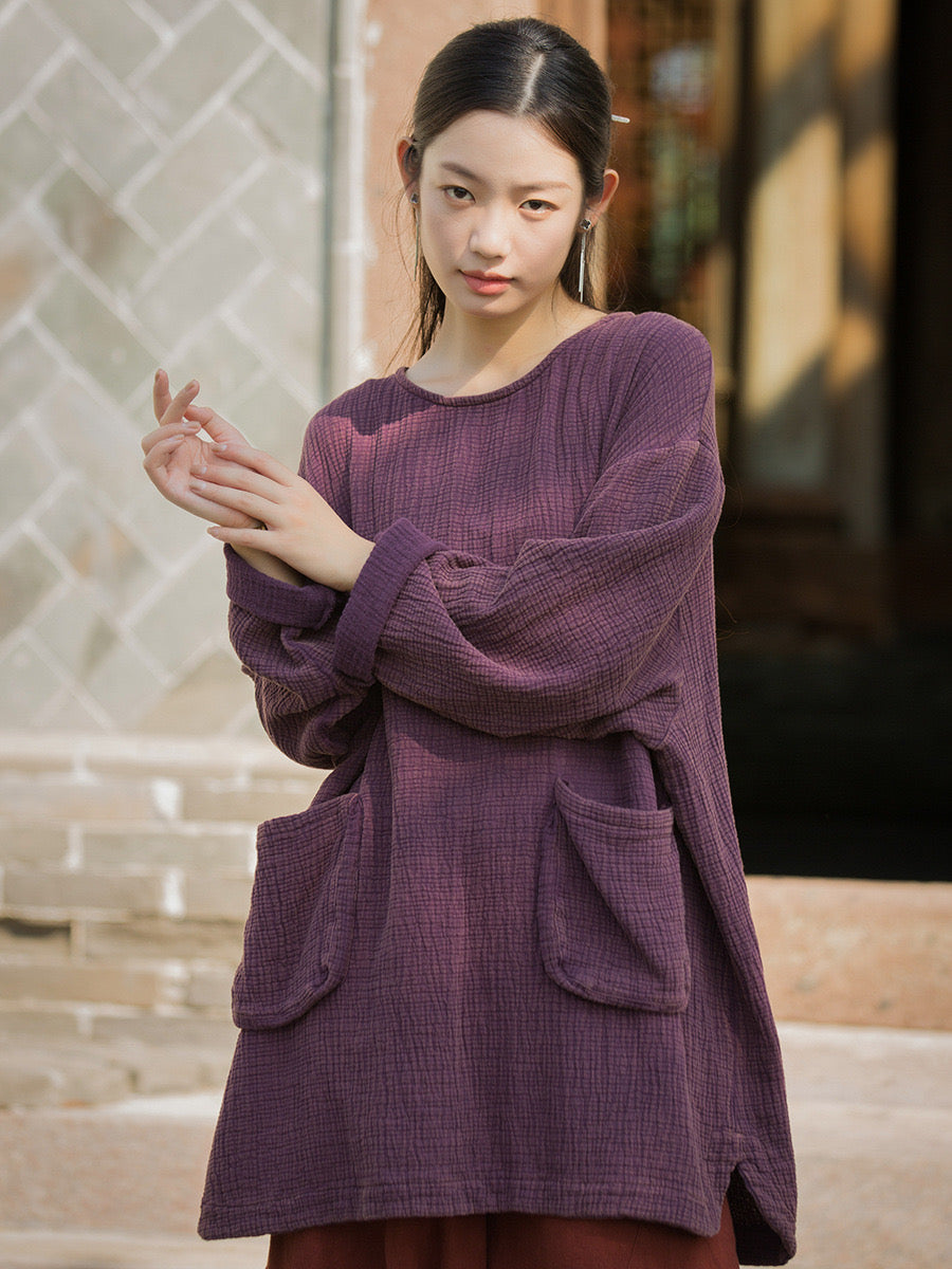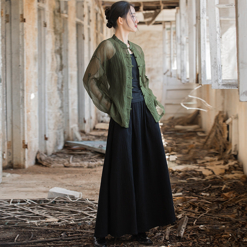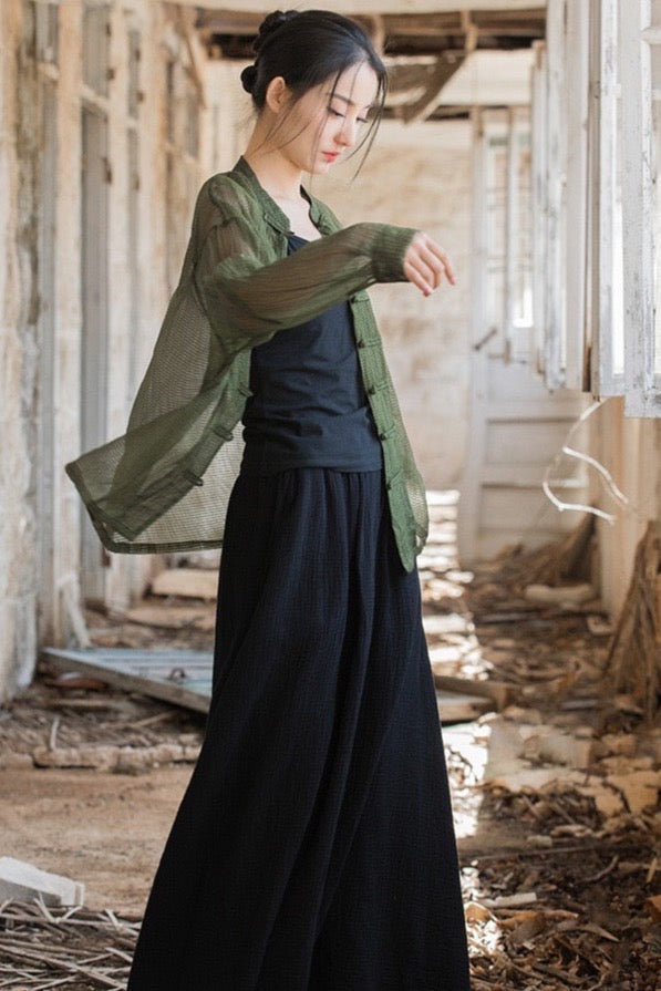 Tao One Tech™ • Flowing Butterfly Sleeve Top • Double-Layer Cotton Linen • Bamboo Texture