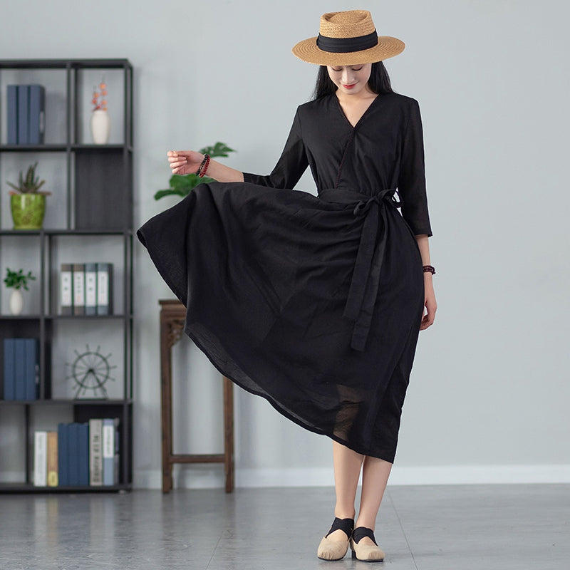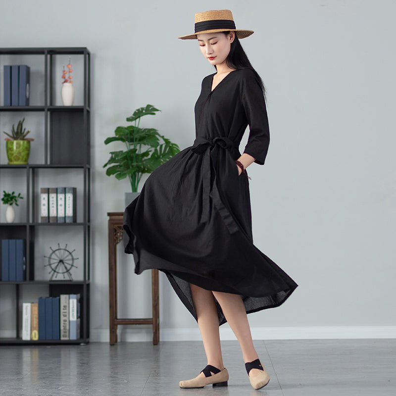 The Dao 道 of Zen Heaven & Earth Dress • Linen Dress • Double-Lining • Pockets