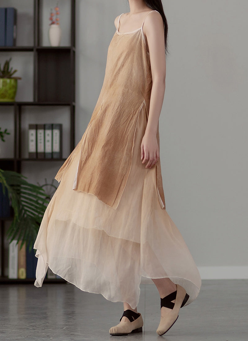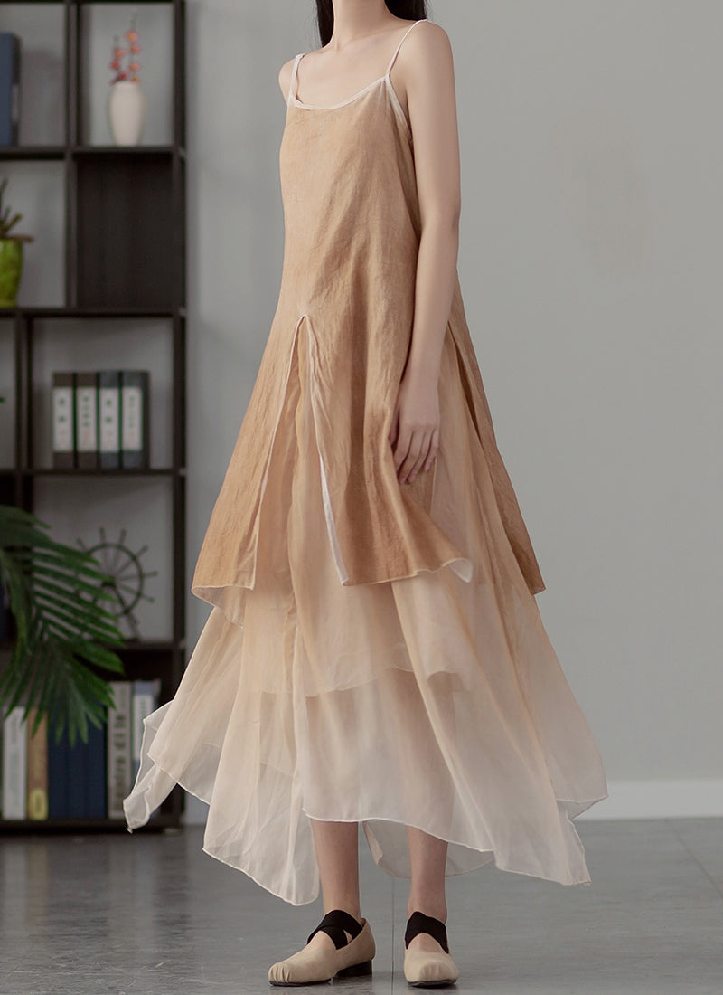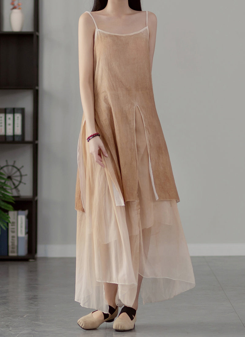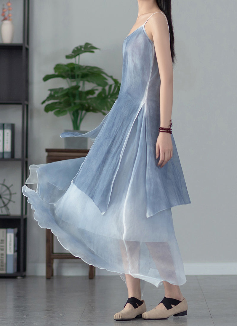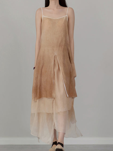 The Dao 道 of Zen Water & Earth Gradient Dress • Flowy Movement • Double-Lining • Linen Cotton